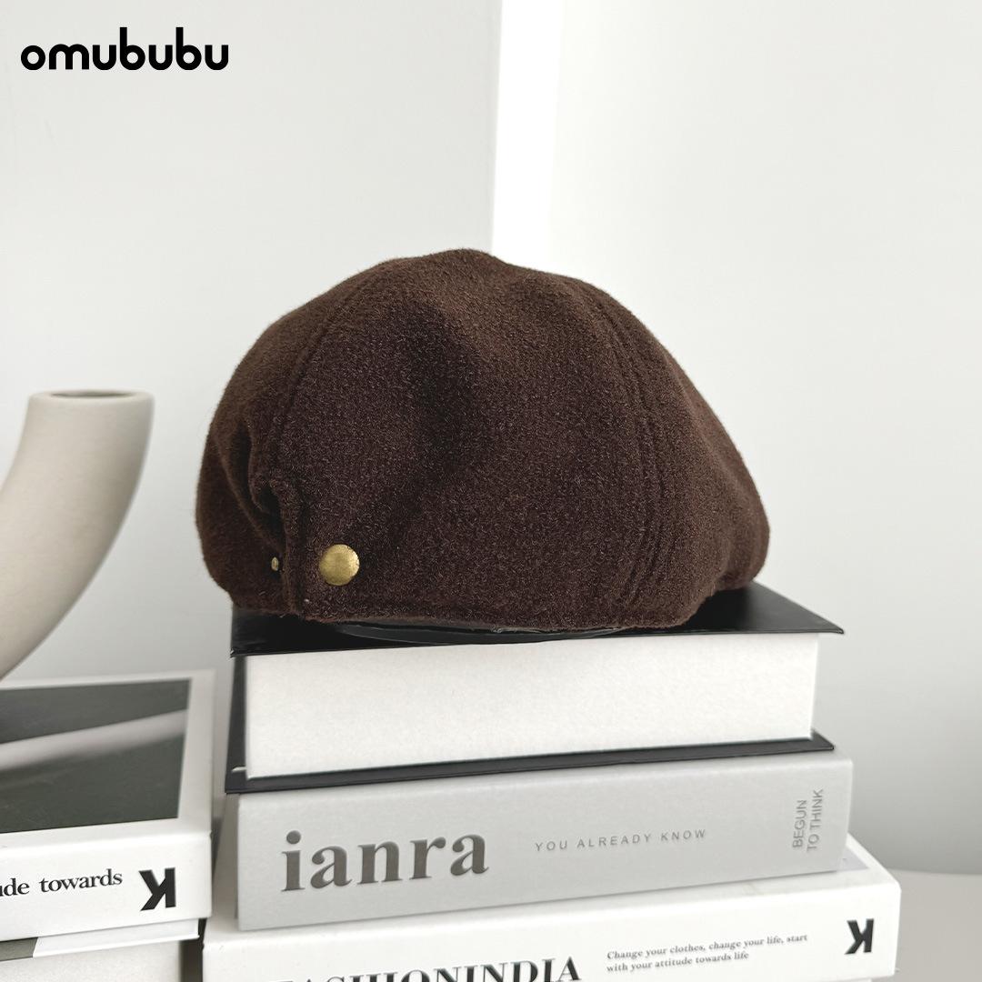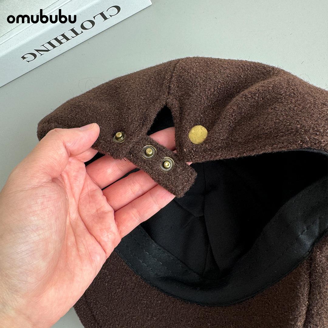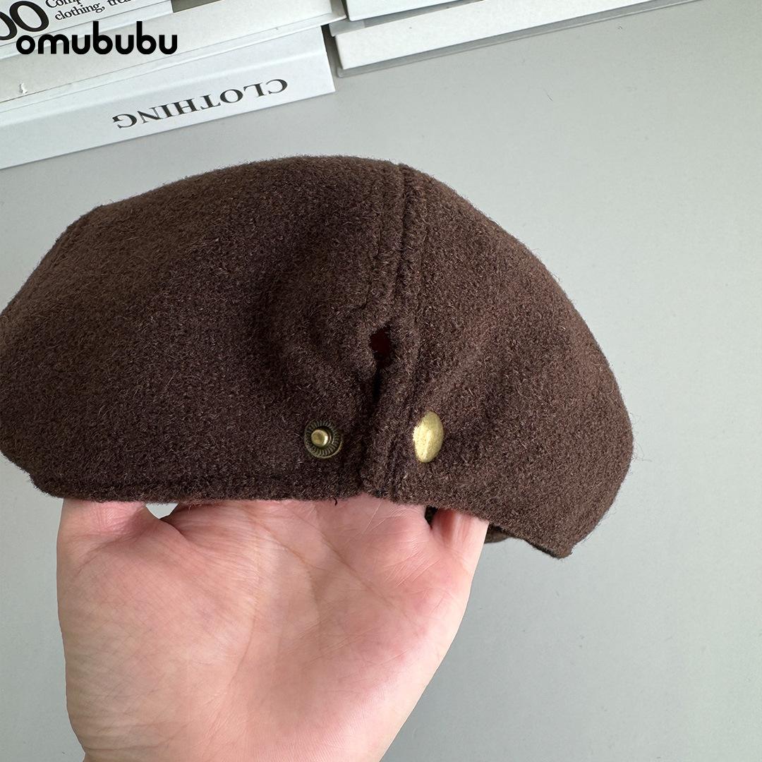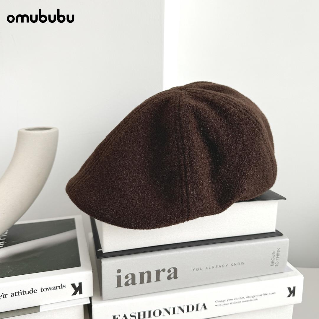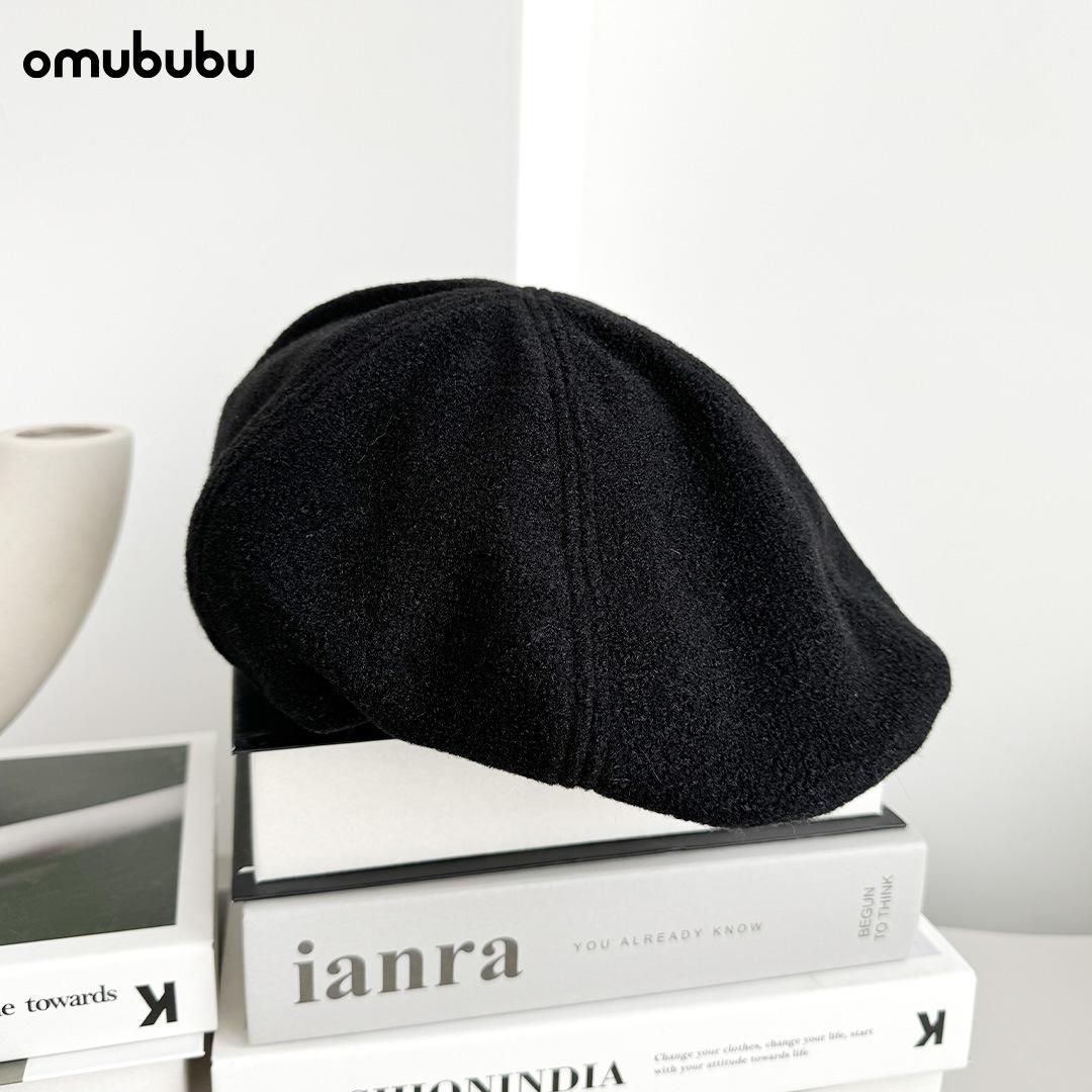 Boina de lana cálida de otoño e invierno para mujer, gorra retro británica, gorra tridimensional, gorra de pintor, gorra octogonal pequeña