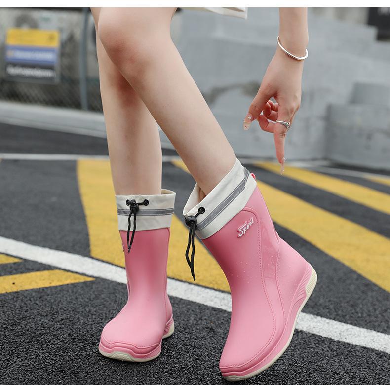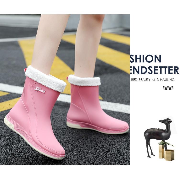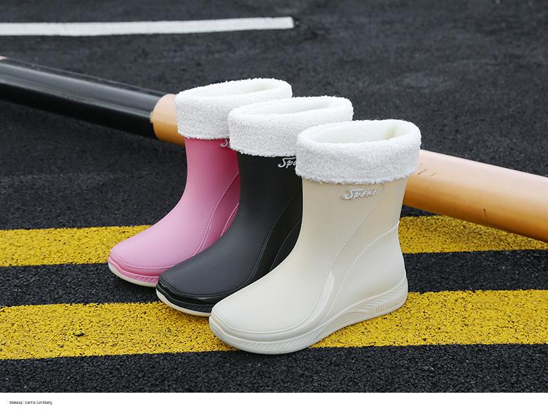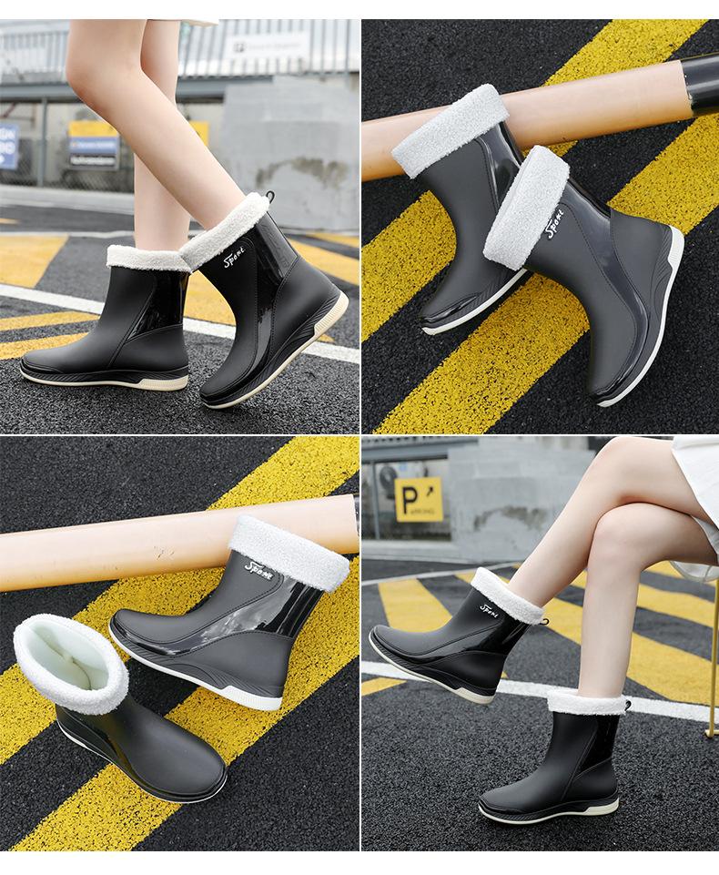 Zapatos de agua antideslizantes botas de lluvia de media pantorrilla para mujer botas de lluvia cortas para adulto botas de lluvia de moda para estudiante zapatos de goma cálidos botas de agua con forro polar