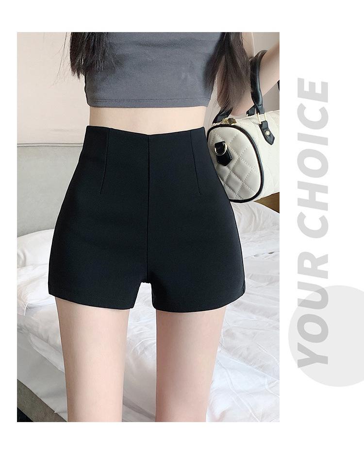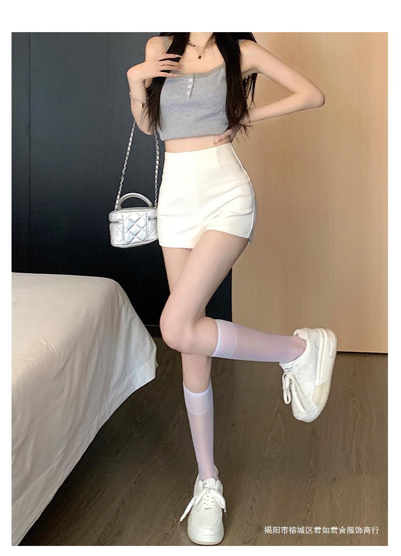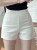 Pantalones cortos de traje blanco para mujer, ajustados, de verano, de cintura alta, ajustados, con leggings, antiluz, en forma de A, para uso exterior, pantalones cortos