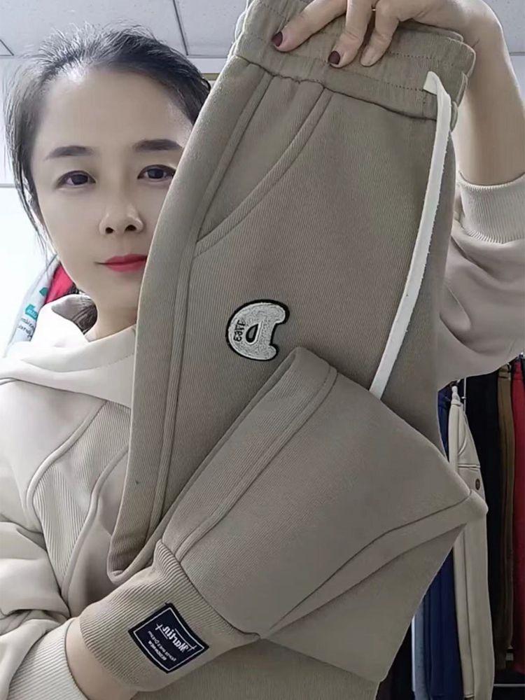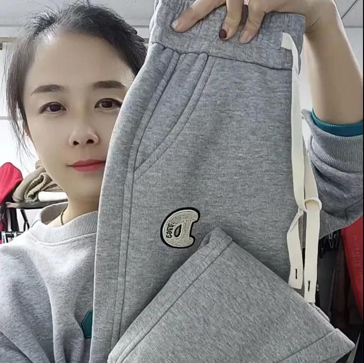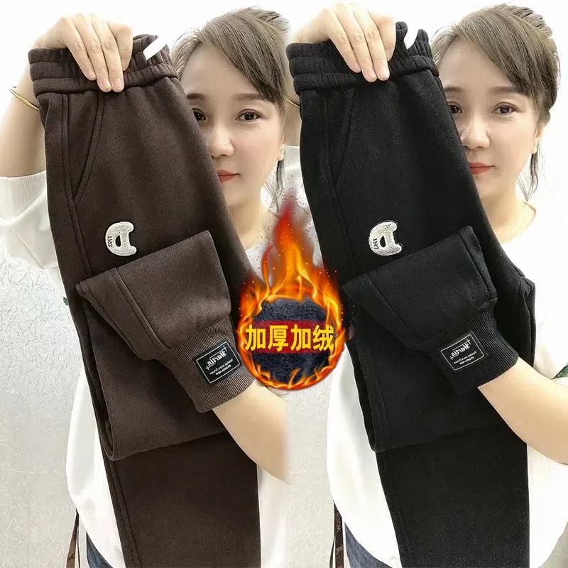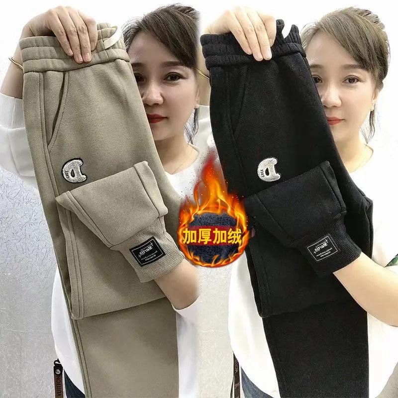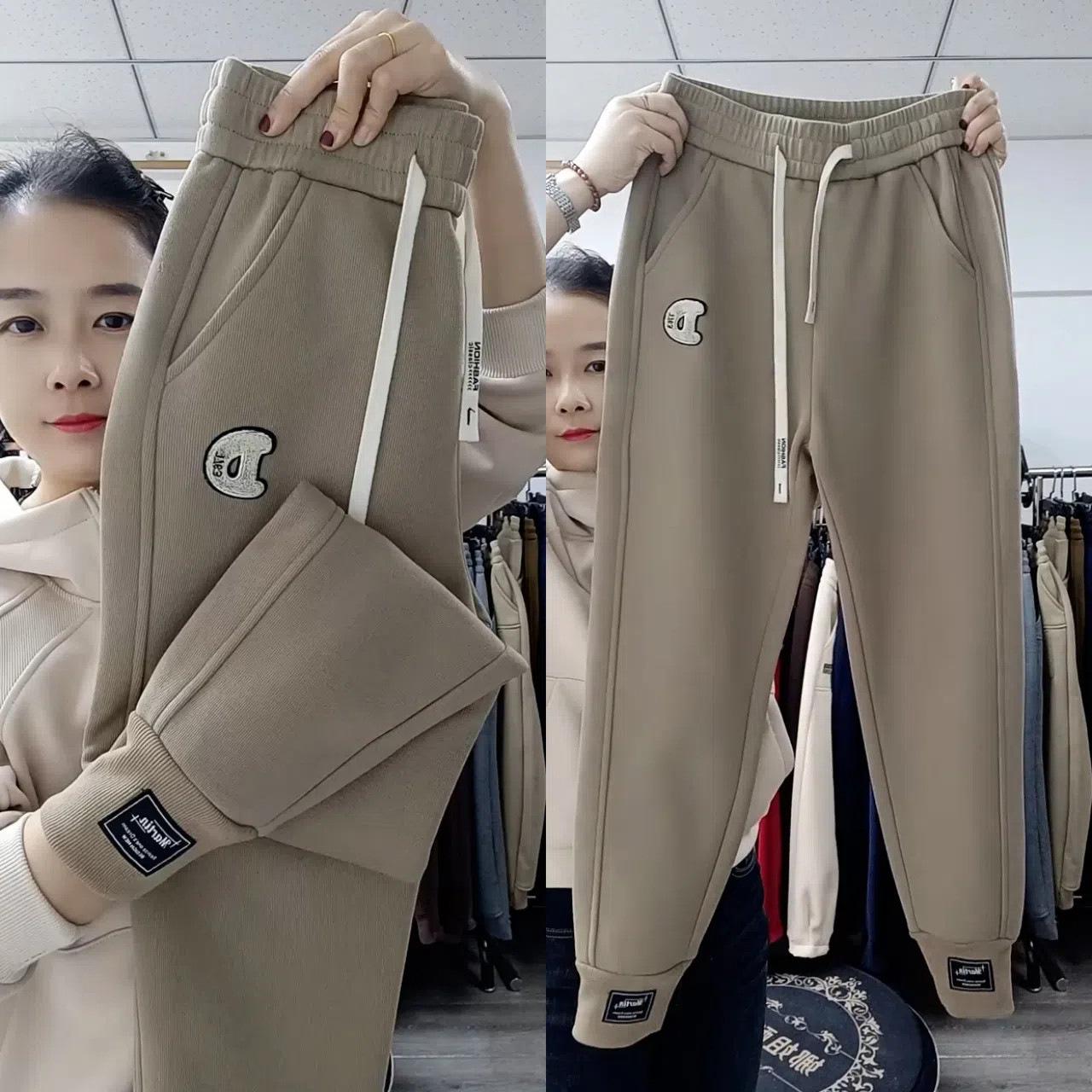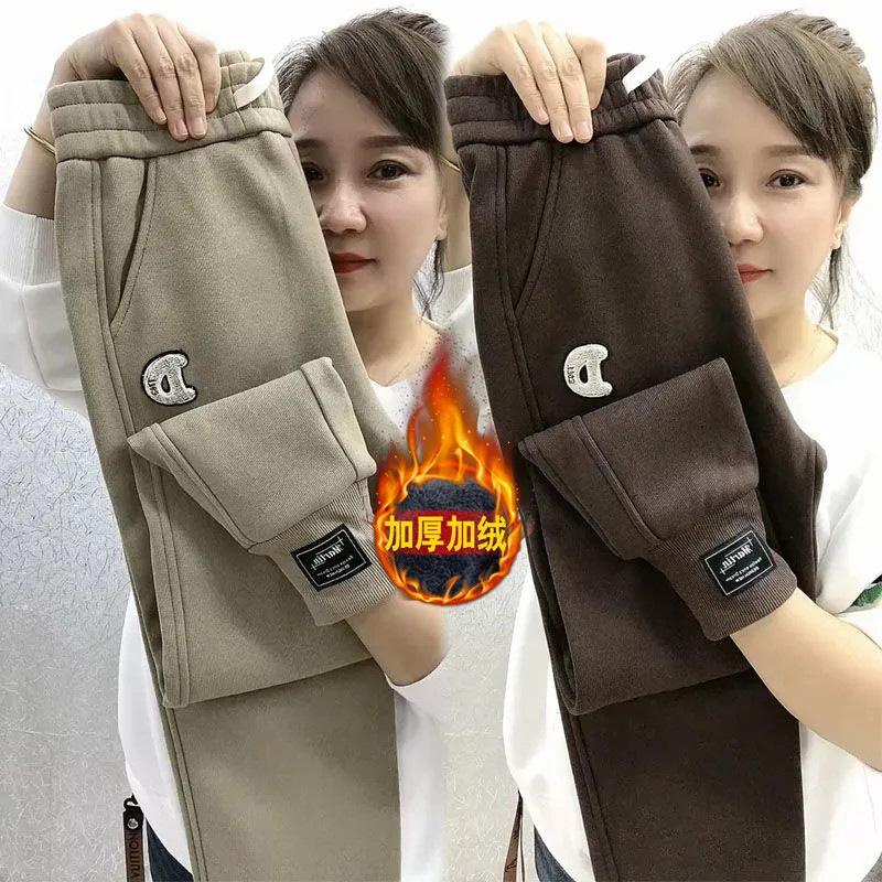 Productos europeos otoño e invierno 2023 talla grande más terciopelo pantalones deportivos gruesos para mujer de cintura alta pantalones casuales adelgazantes pantalones deportivos pantalones harén