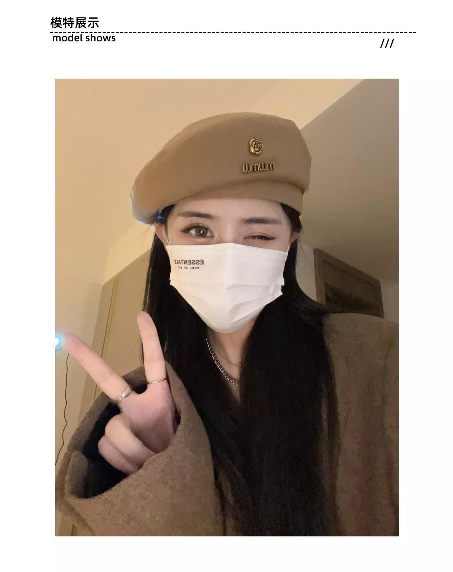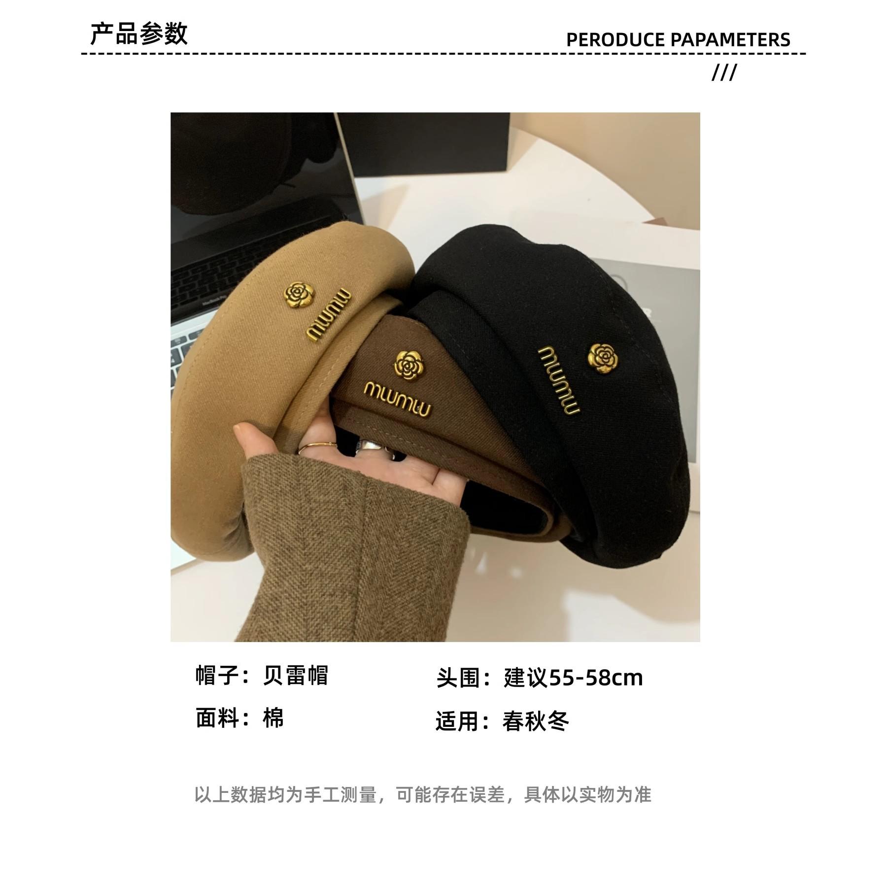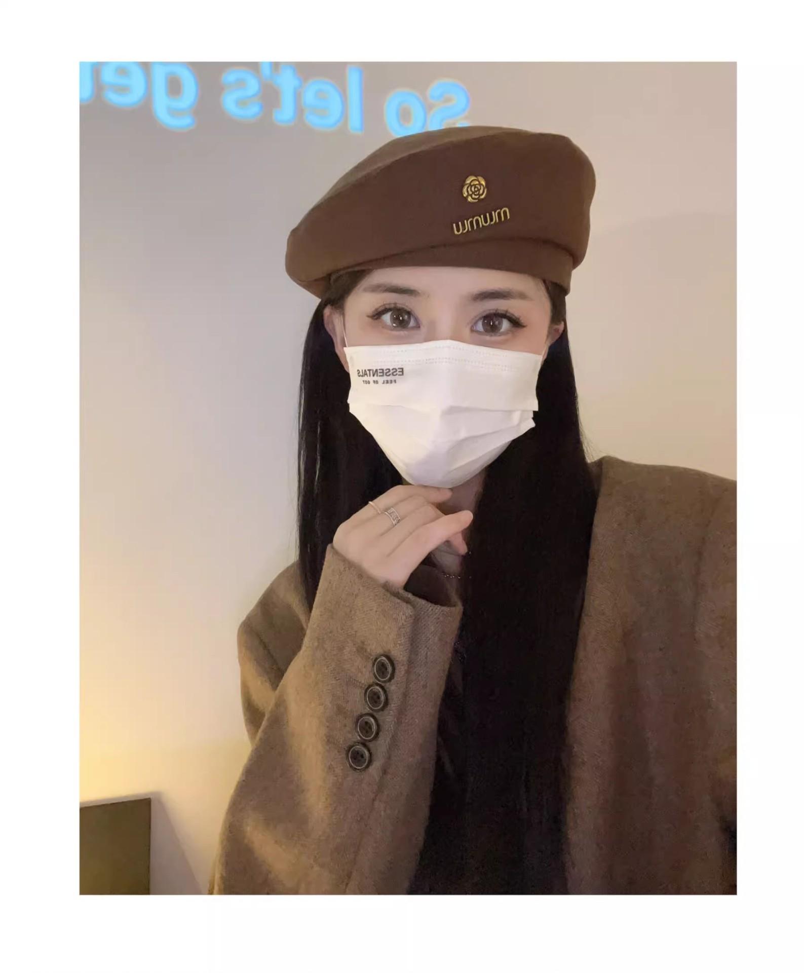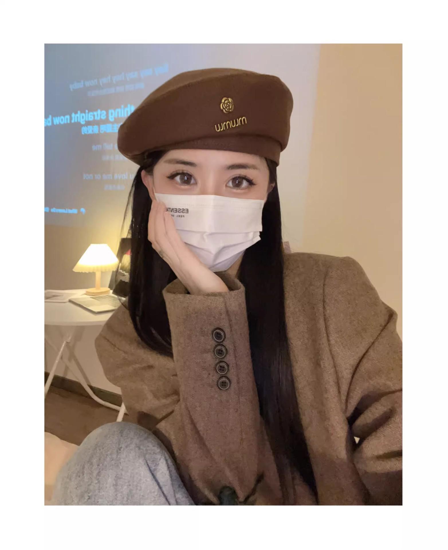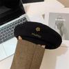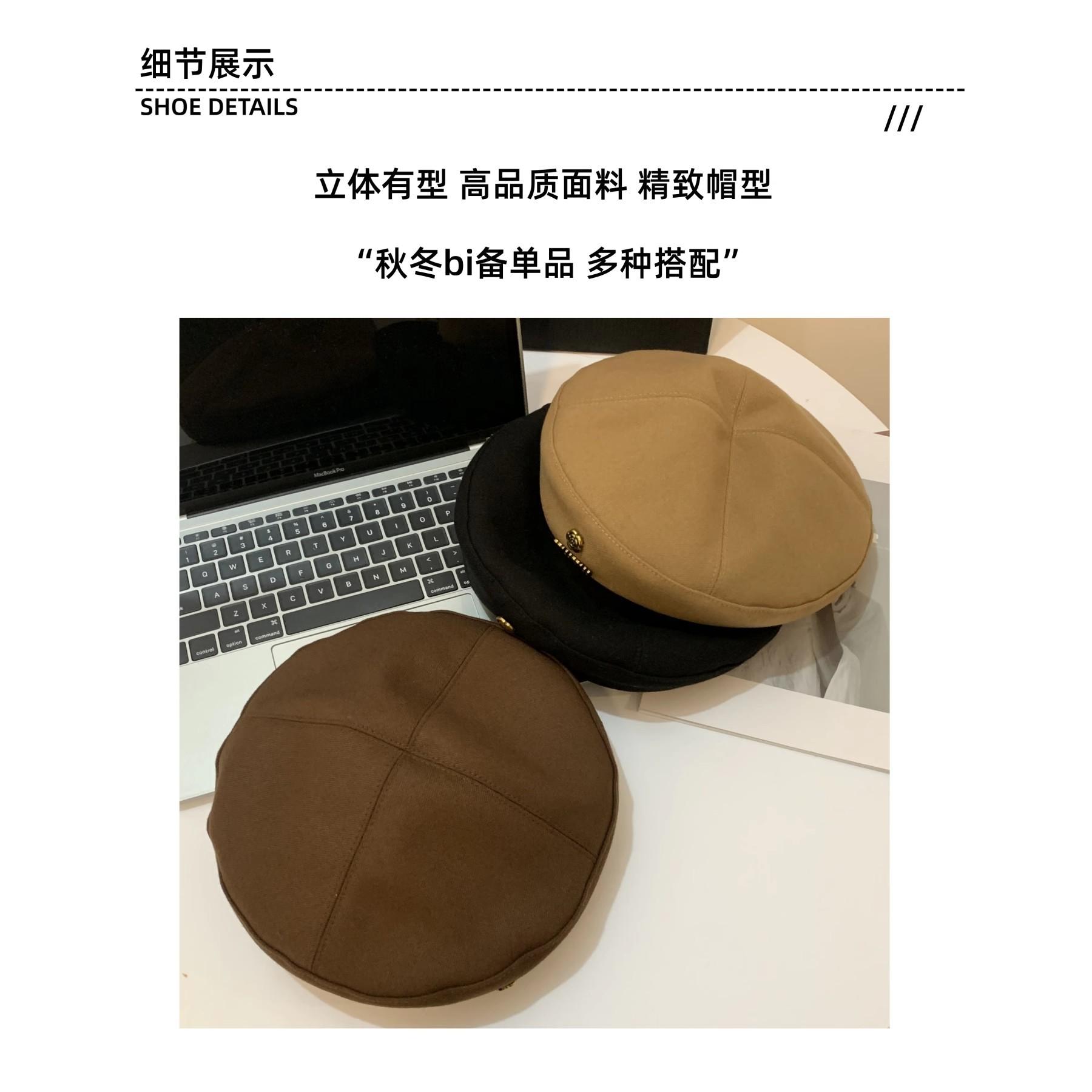Boina marrón retro de estilo coreano para mujer 2023, nueva boina negra para primavera, otoño e invierno, con cara de pintor de temperamento pequeño