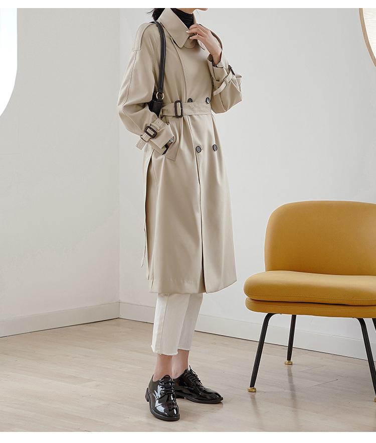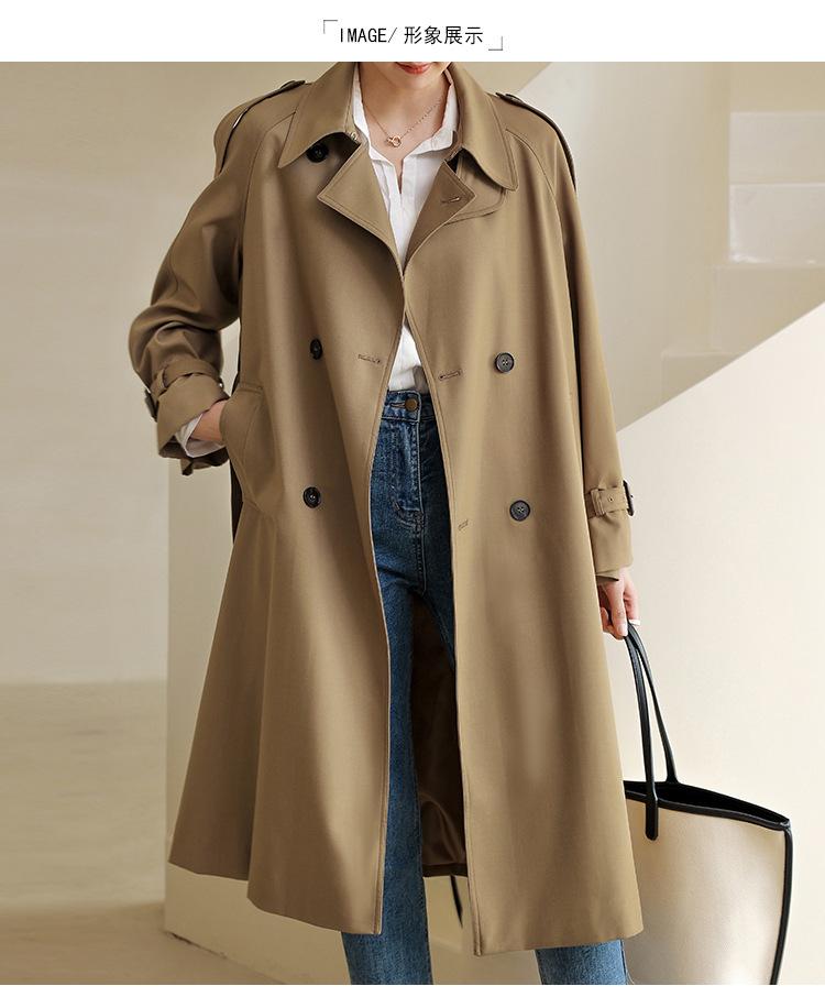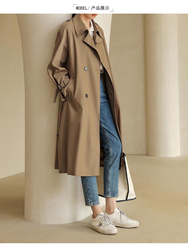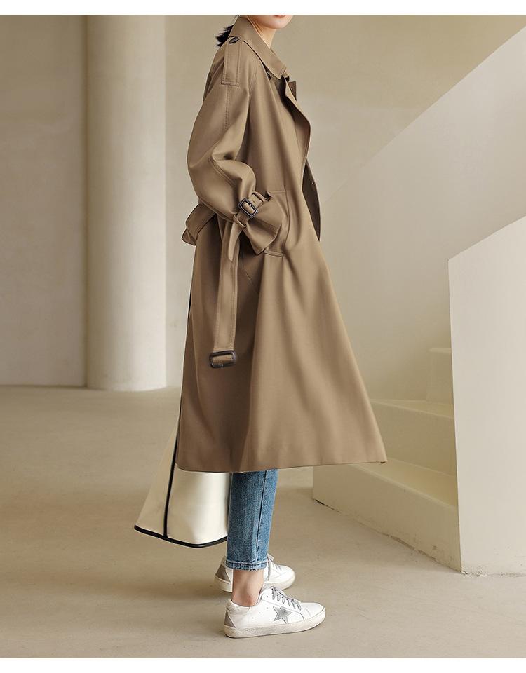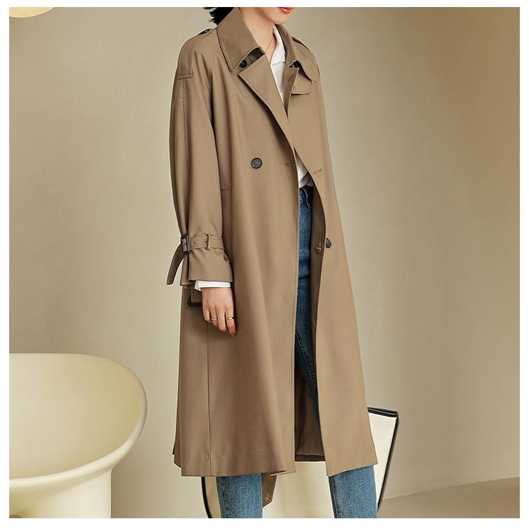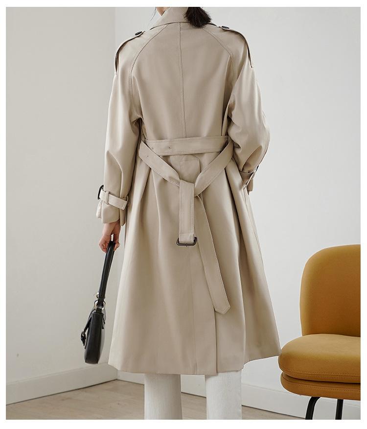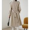 Gabardina de Punto para Mujer Largo Medio Estilo Británico Primavera y Otoño Nuevo Estilo Coreano Suelto Popular Elegante Estilo Diosa Abrigo de Cintura