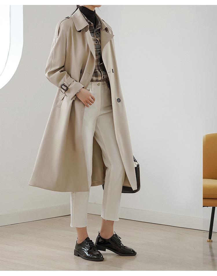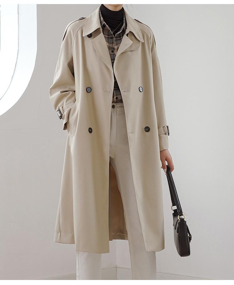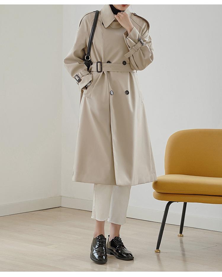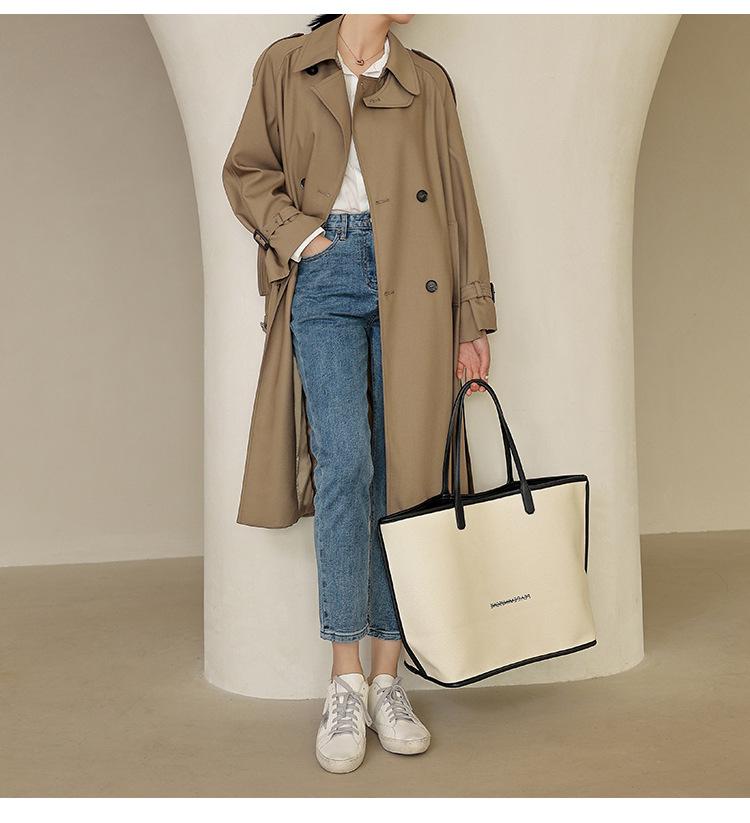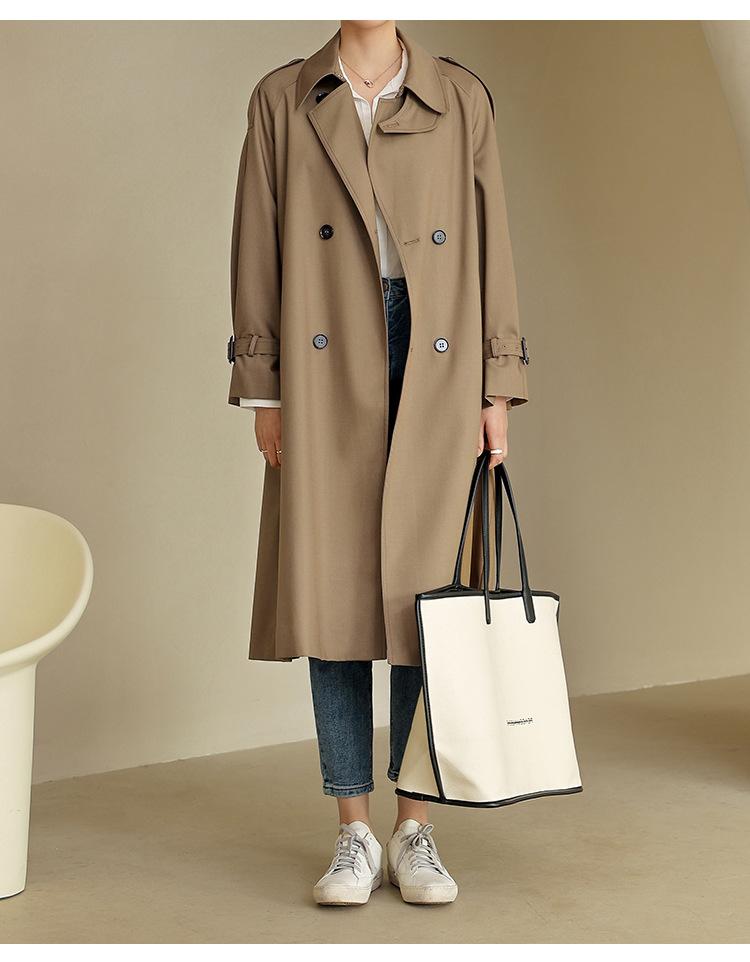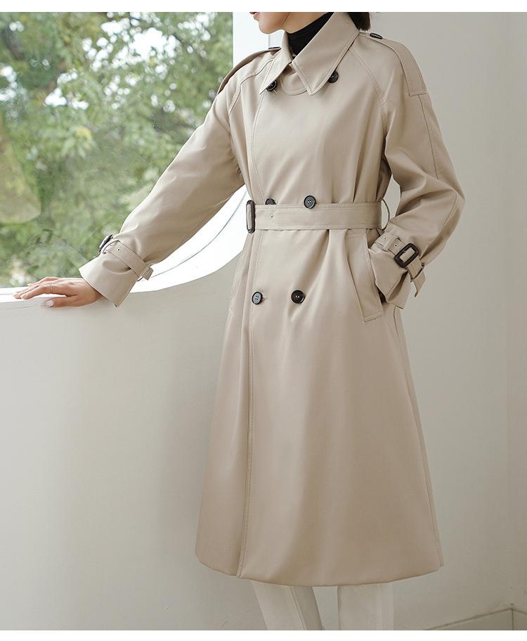 Gabardina de Punto para Mujer Largo Medio Estilo Británico Primavera y Otoño Nuevo Estilo Coreano Suelto Popular Elegante Estilo Diosa Abrigo de Cintura