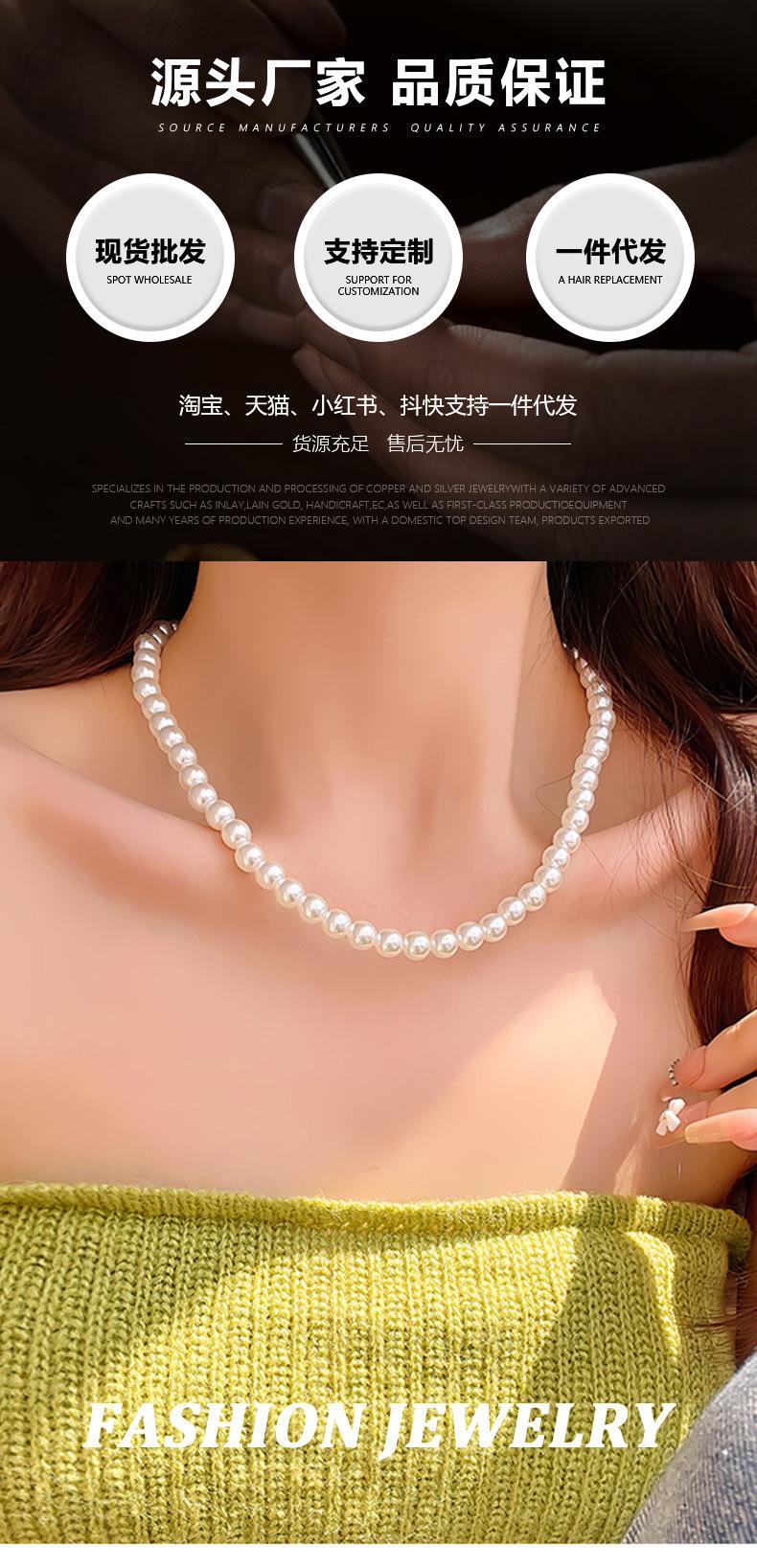 Collar de perlas retro francés, cadena de clavícula de nicho de lujo ligero de otoño e invierno, nueva cadena de clavícula explosiva de alta gama para mujer