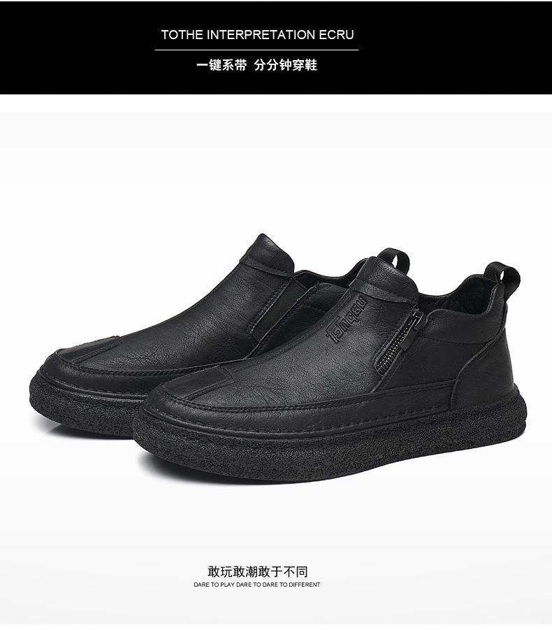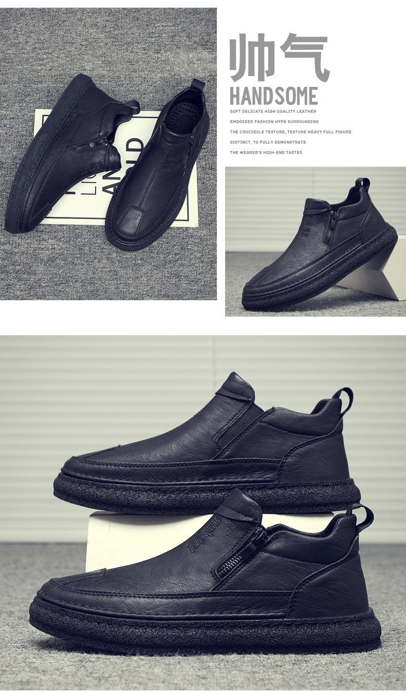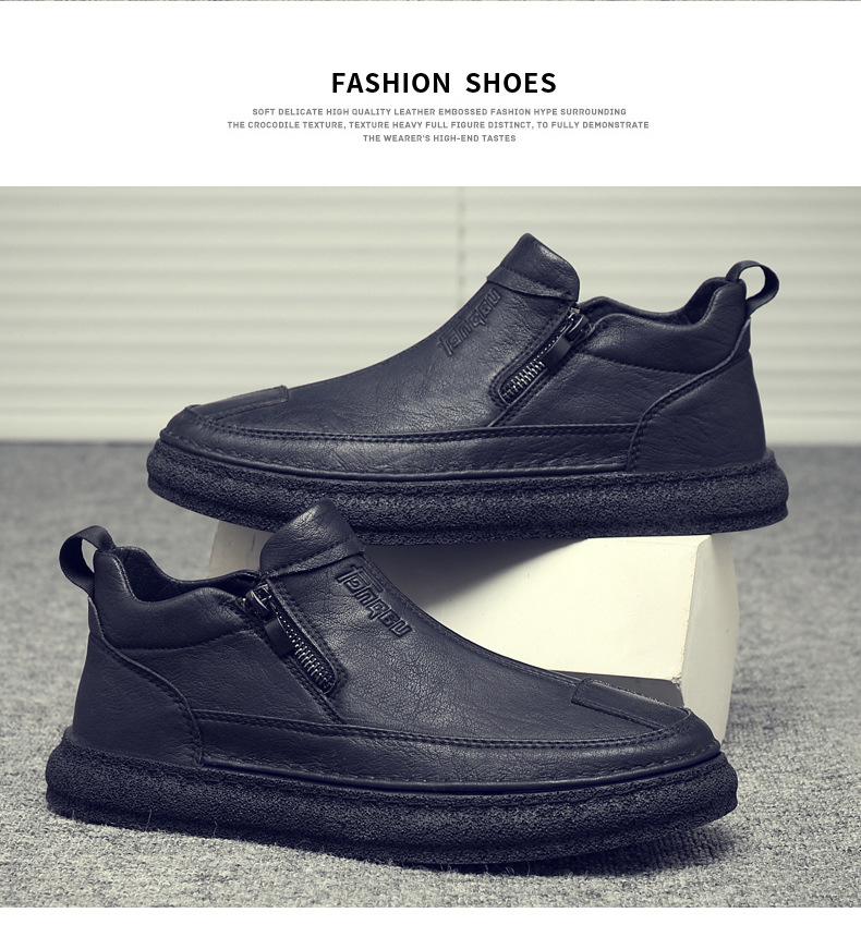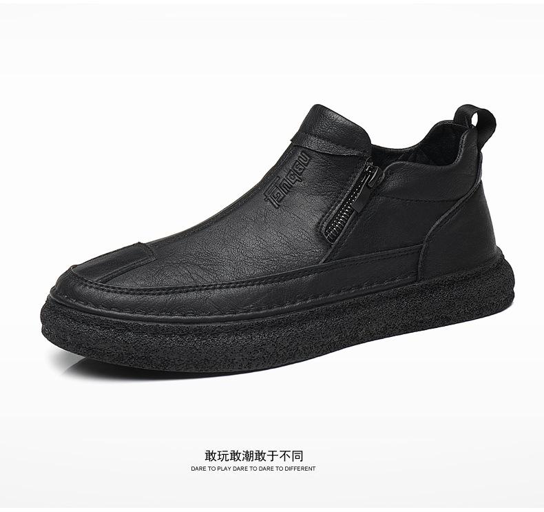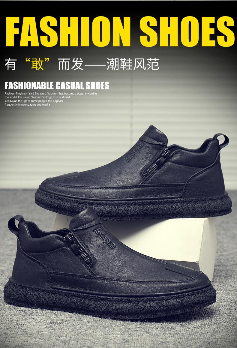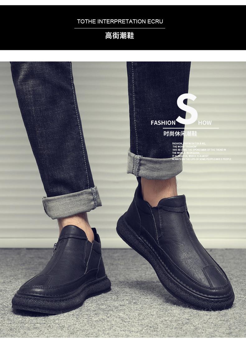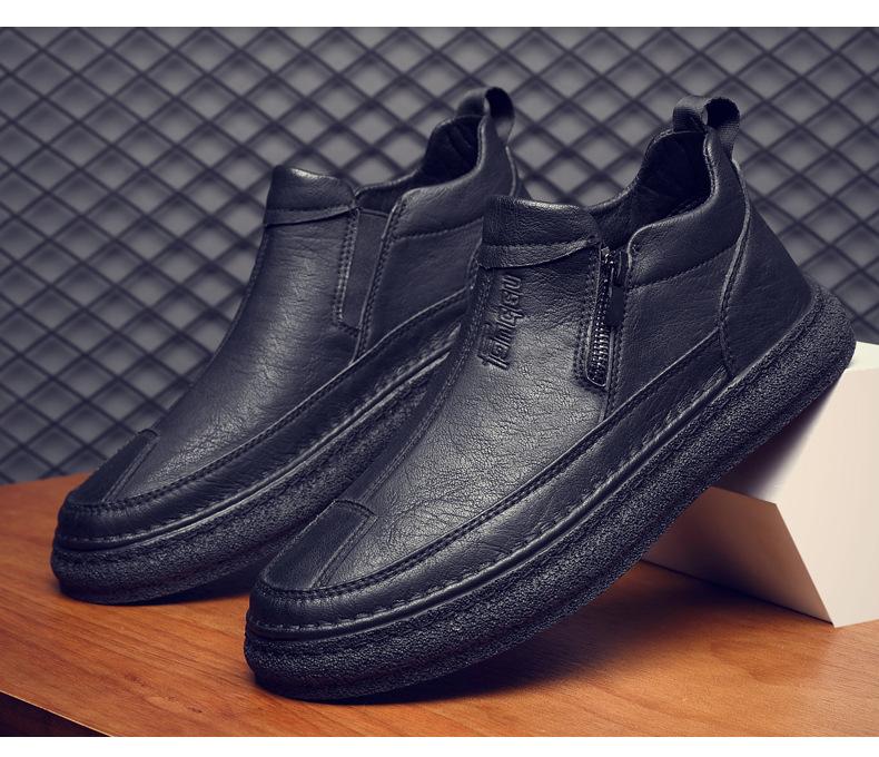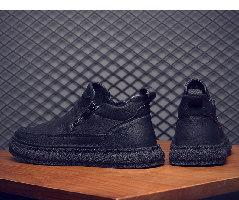 Zapatos de Hombre Estilo Europeo Tendencia Un Pedal Cremallera Media Zapatos Casuales Negros Cuero Motociclista Tendencia Zapatos de Tablero al Por Mayor