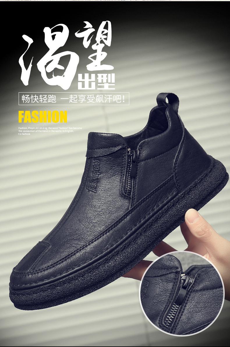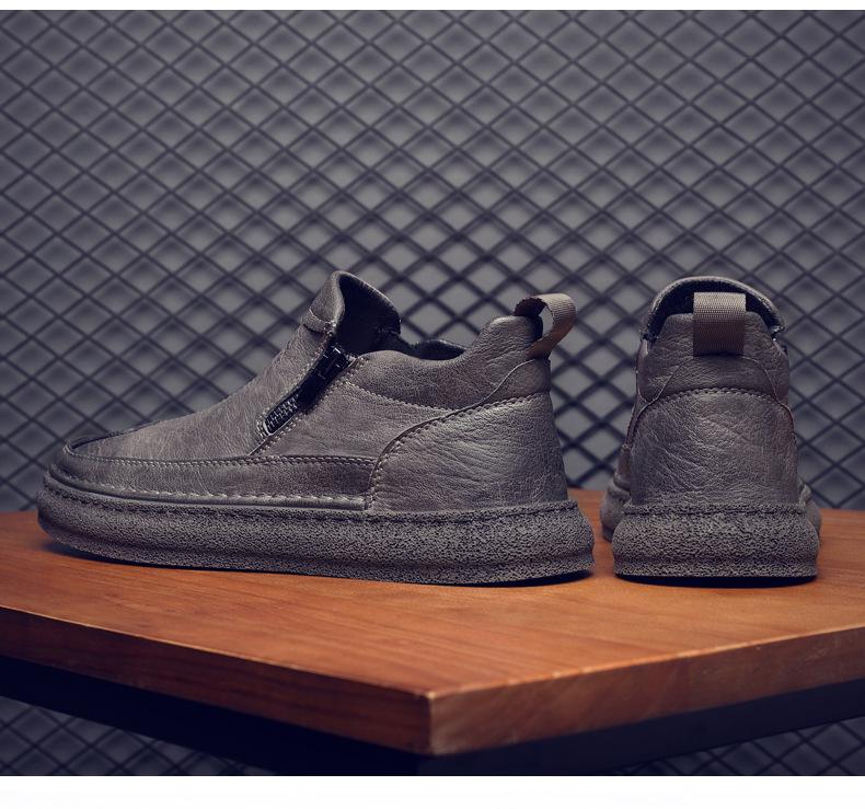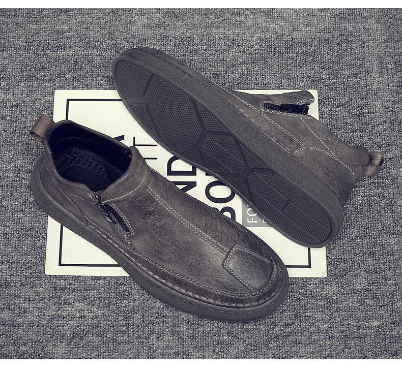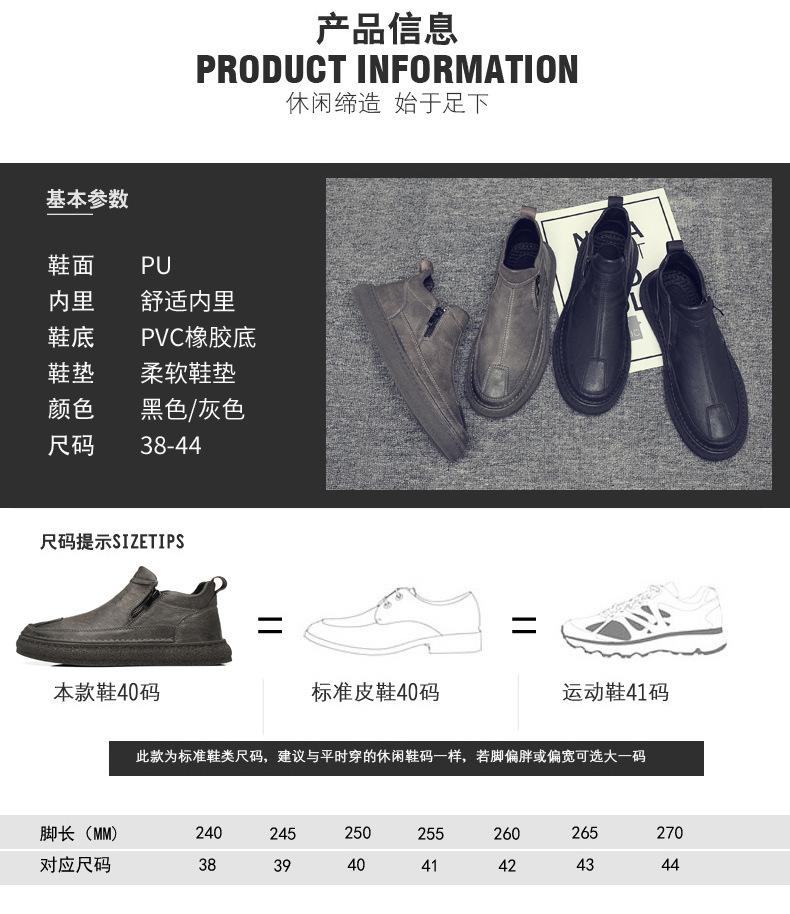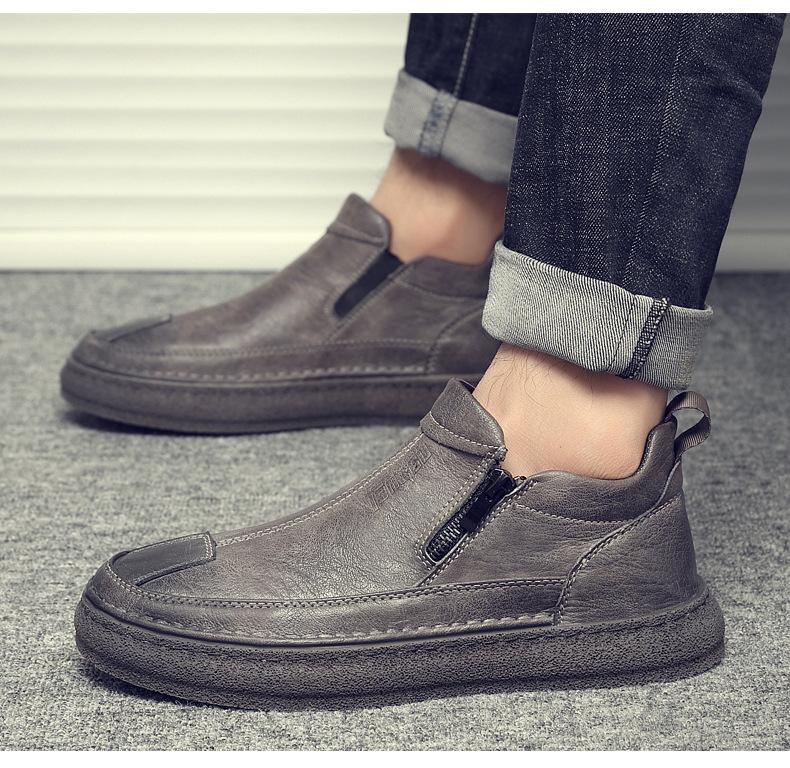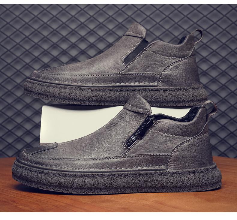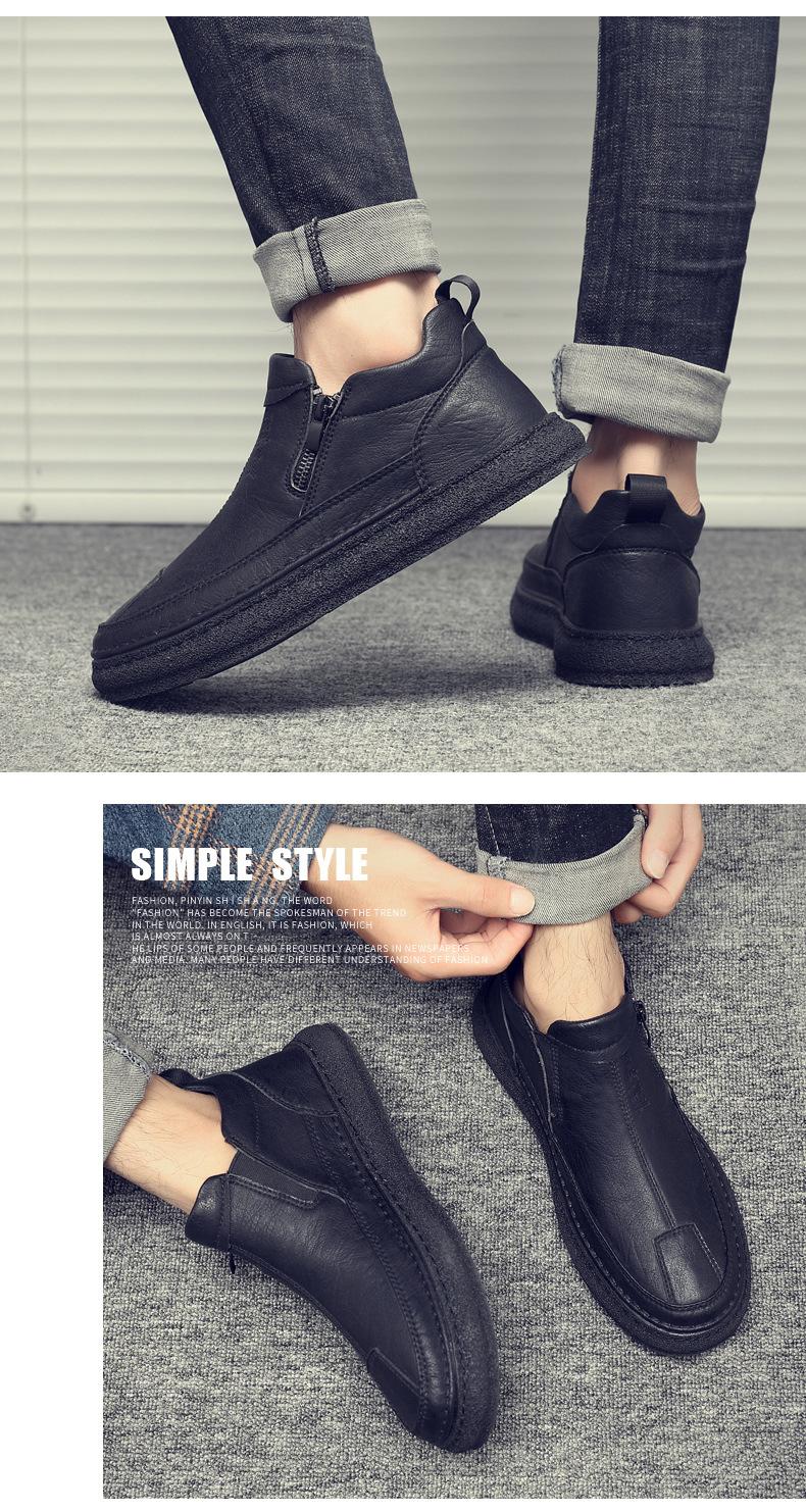 Zapatos de Hombre Estilo Europeo Tendencia Un Pedal Cremallera Media Zapatos Casuales Negros Cuero Motociclista Tendencia Zapatos de Tablero al Por Mayor