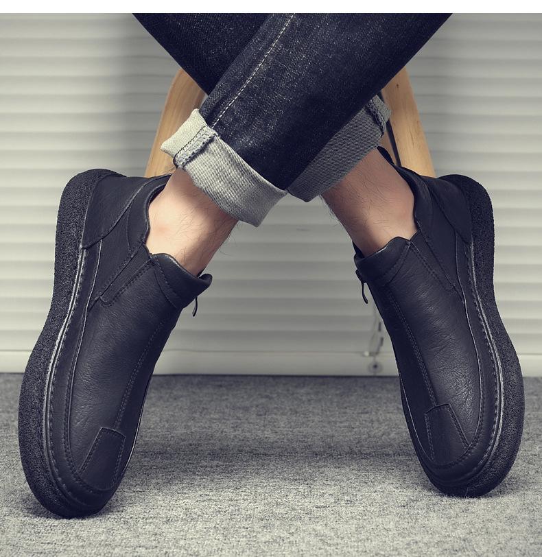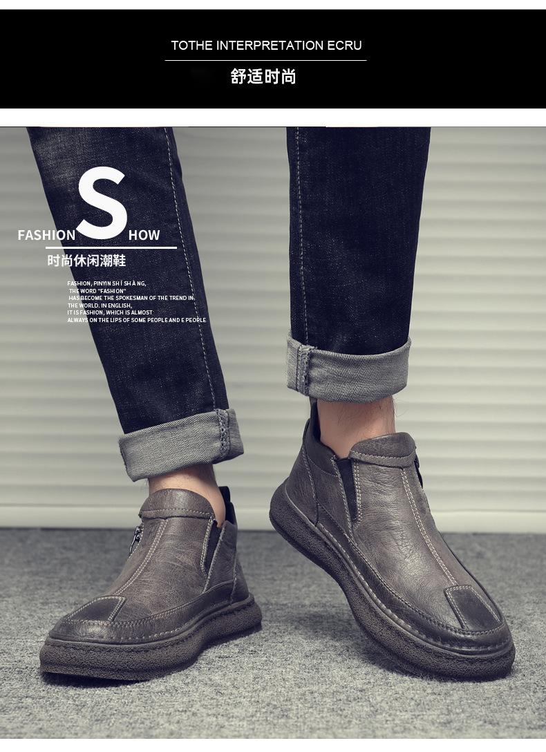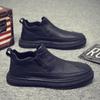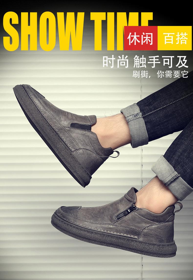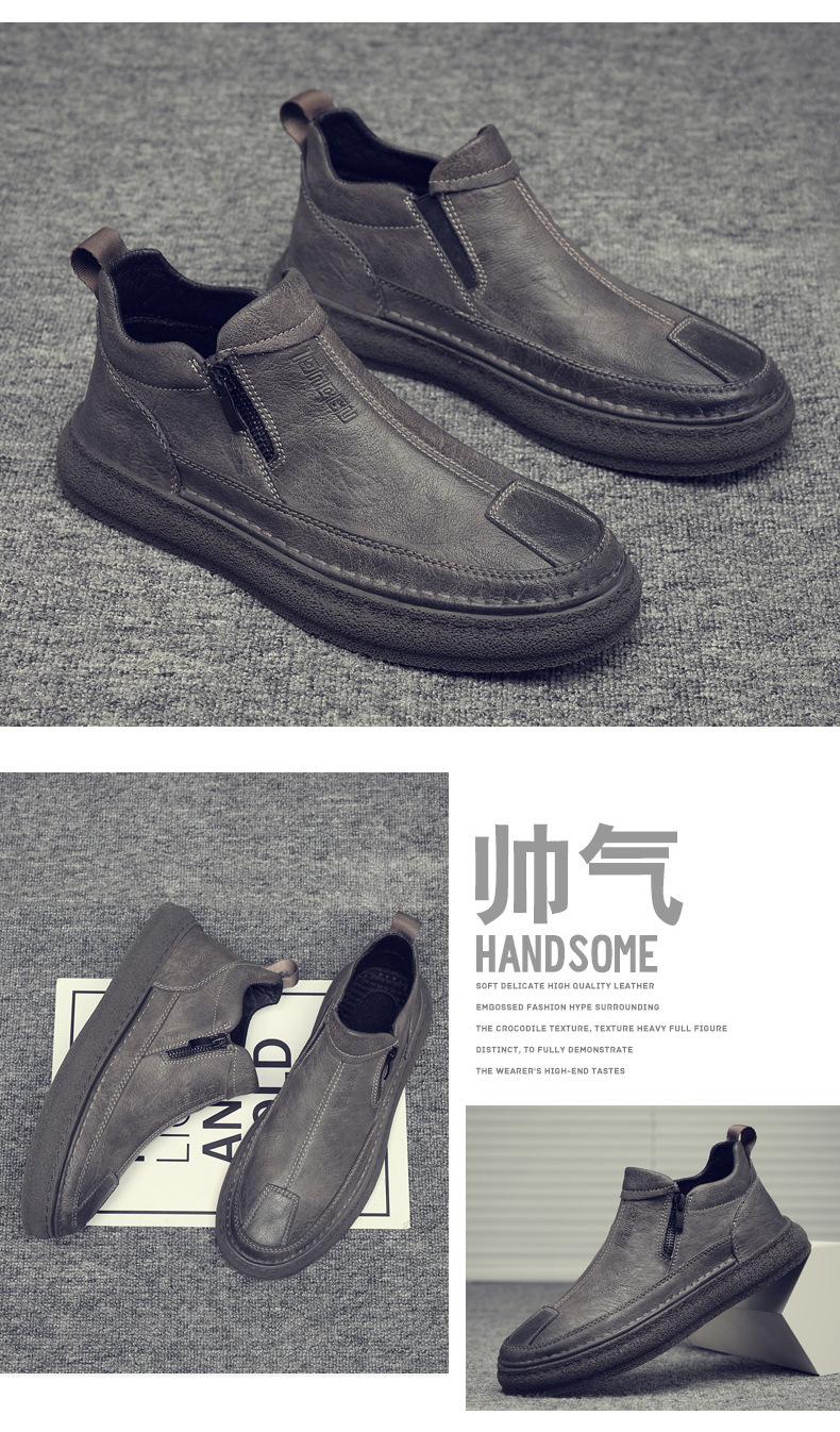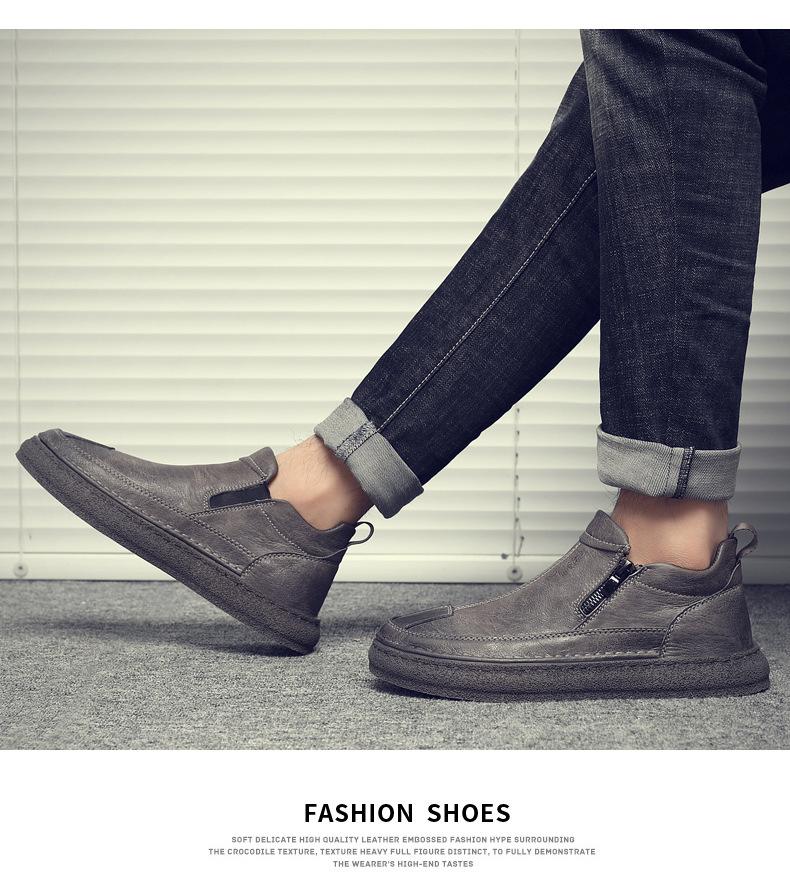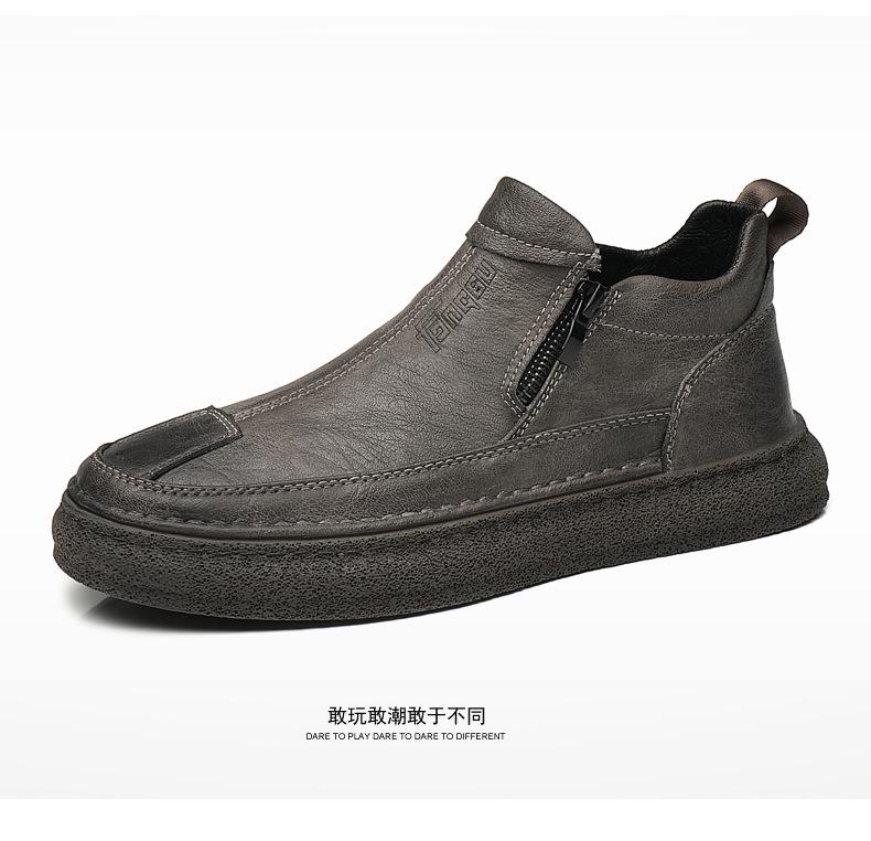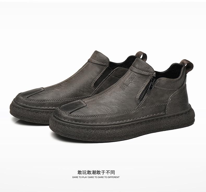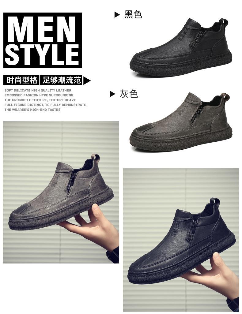 Zapatos de Hombre Estilo Europeo Tendencia Un Pedal Cremallera Media Zapatos Casuales Negros Cuero Motociclista Tendencia Zapatos de Tablero al Por Mayor