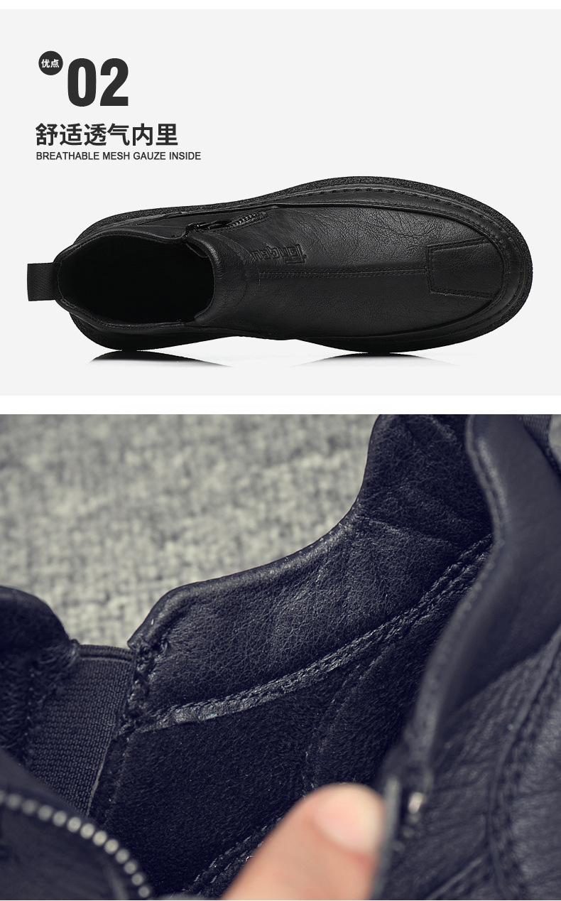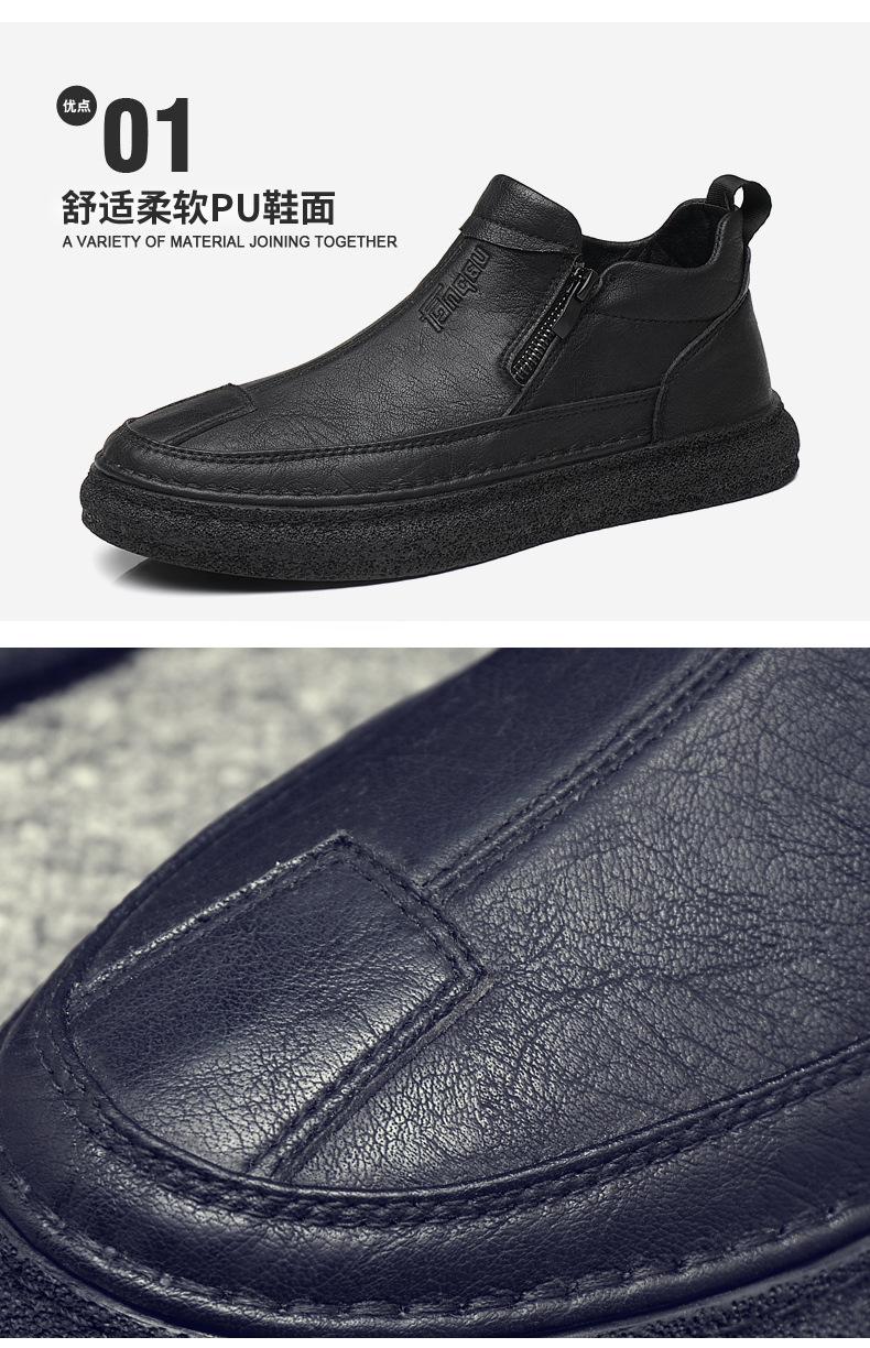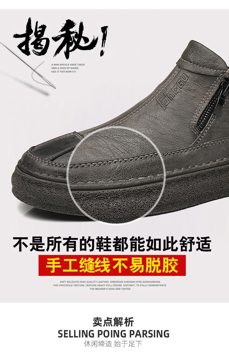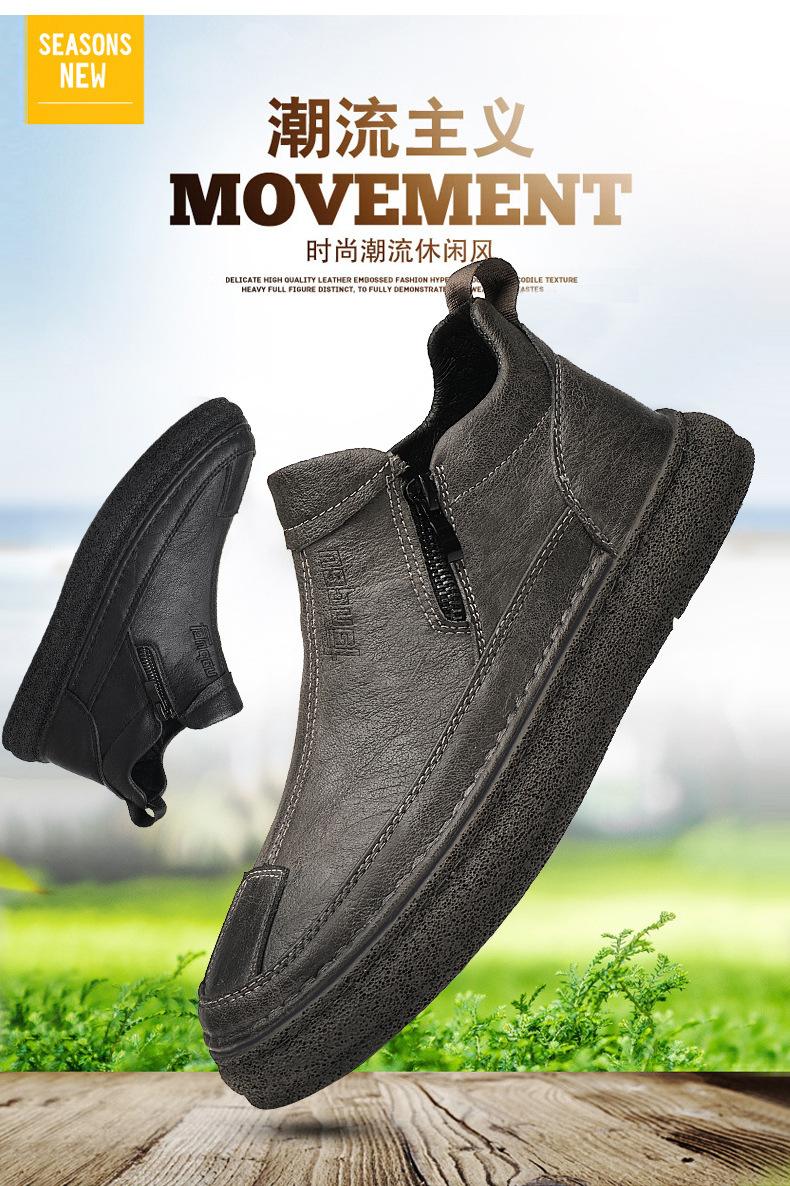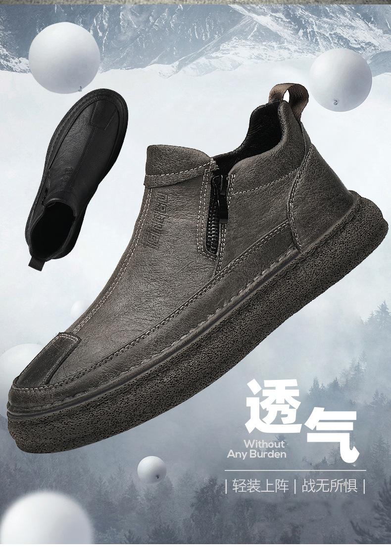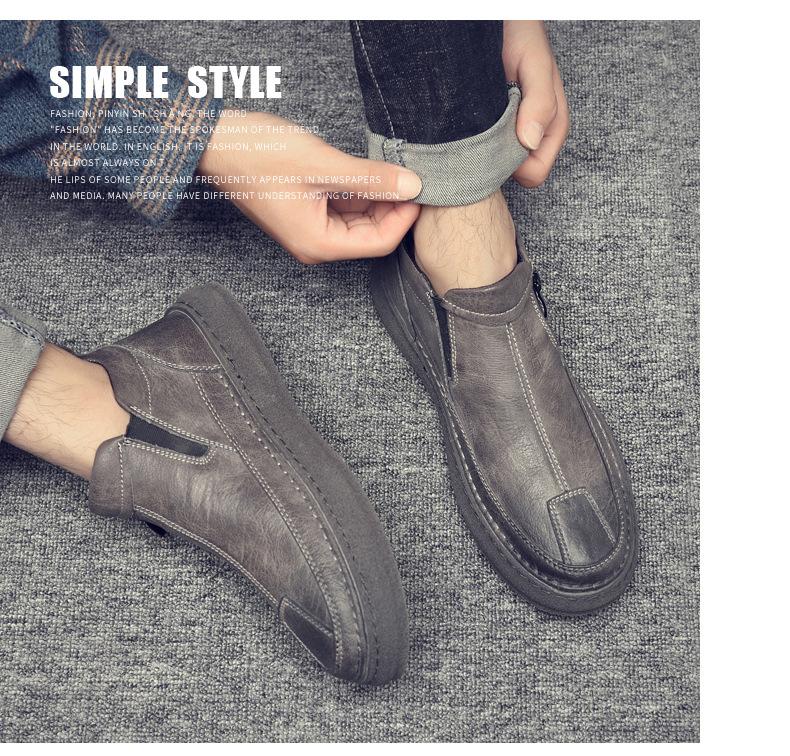 Zapatos de Hombre Estilo Europeo Tendencia Un Pedal Cremallera Media Zapatos Casuales Negros Cuero Motociclista Tendencia Zapatos de Tablero al Por Mayor