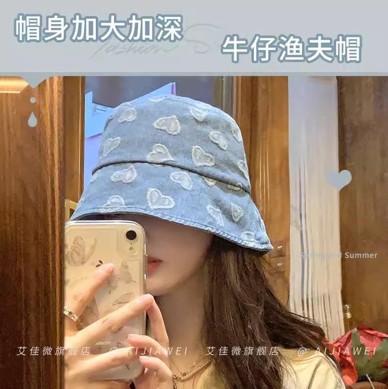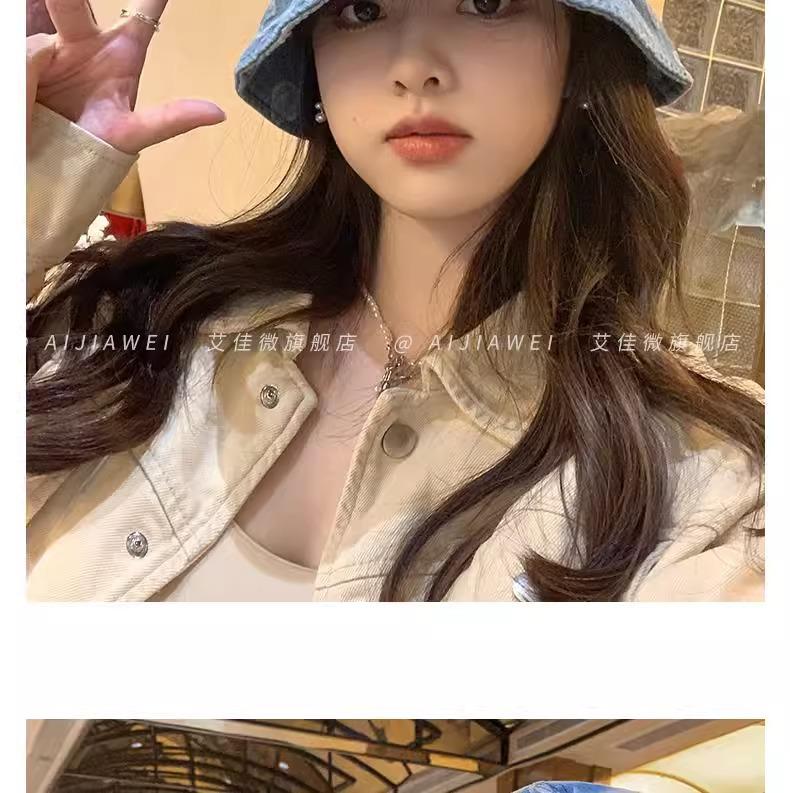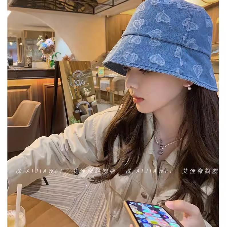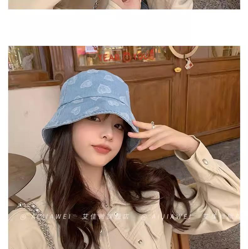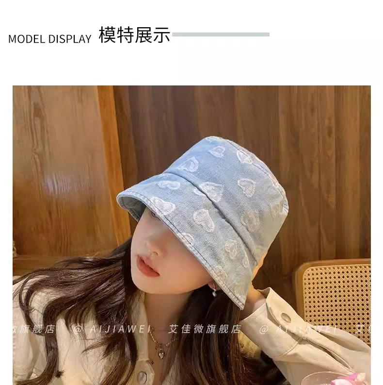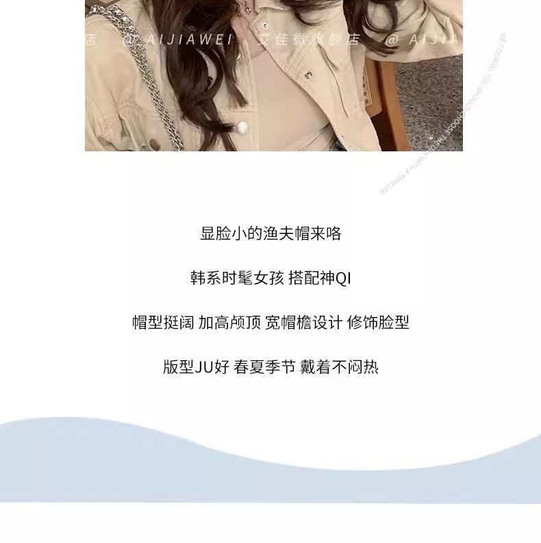 Sombrero de pescador vaquero estilo japonés para mujer, estilo coreano, moderno, con aspecto de cara pequeña, resistente al sol, combinable con todo, sombrero de lavabo fresco de verano