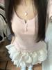 Camiseta de verano para mujer, de manga corta, ajustada, con cuello en U y orejas de madera falsas, con cordones en los hombros, color rosa, dulce y picante, Top corto Pure Desire