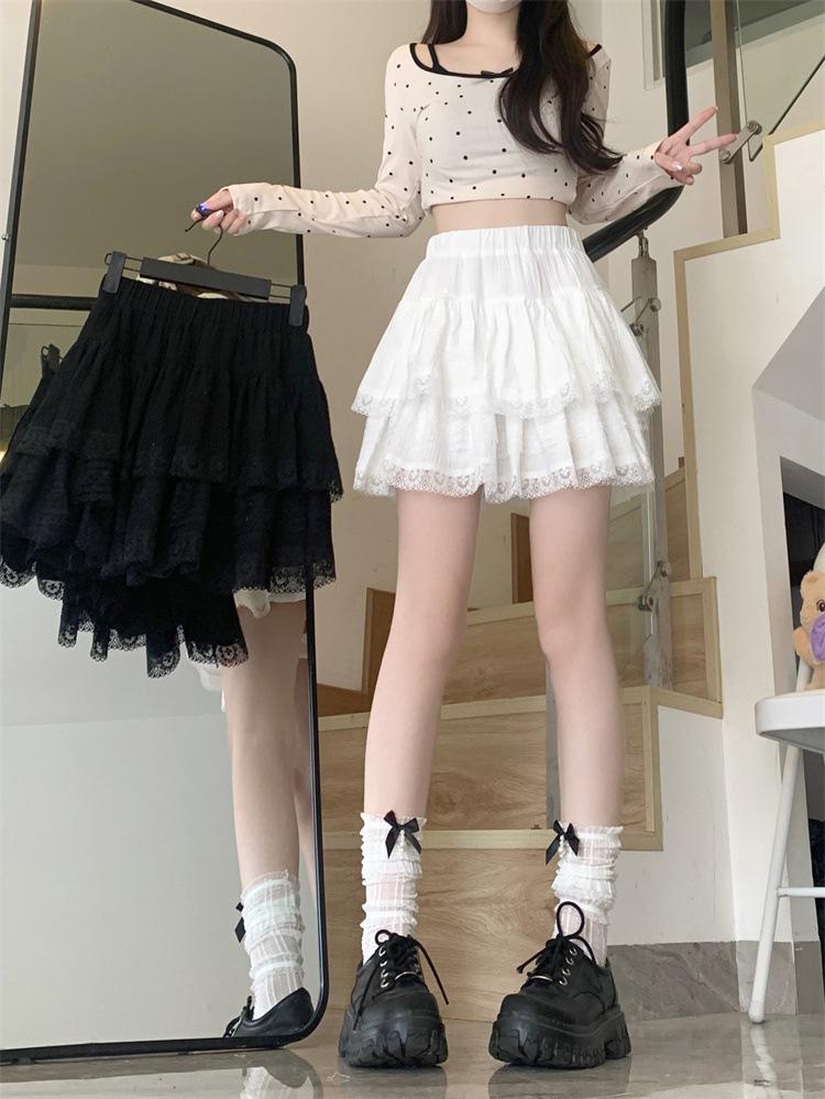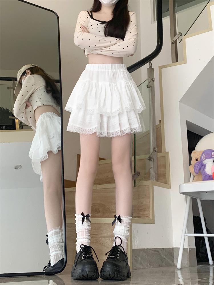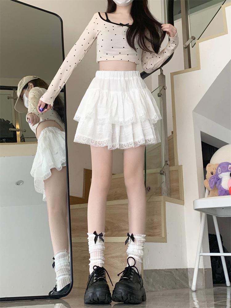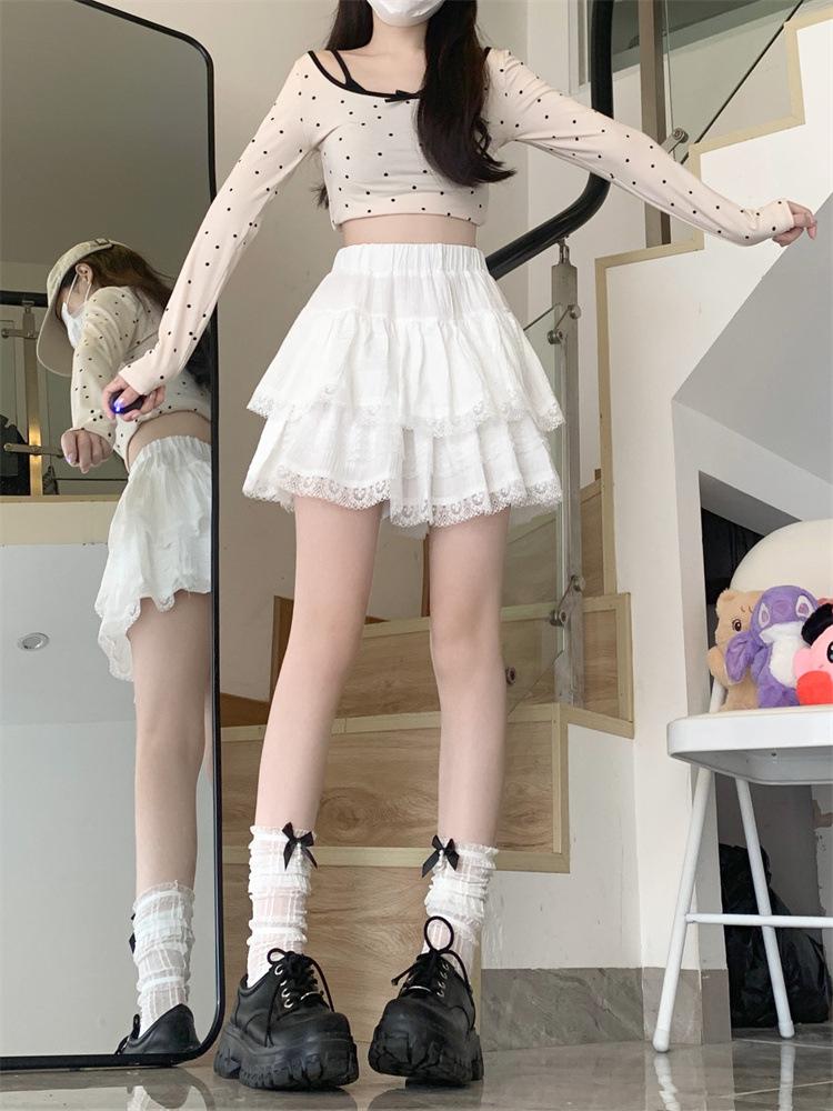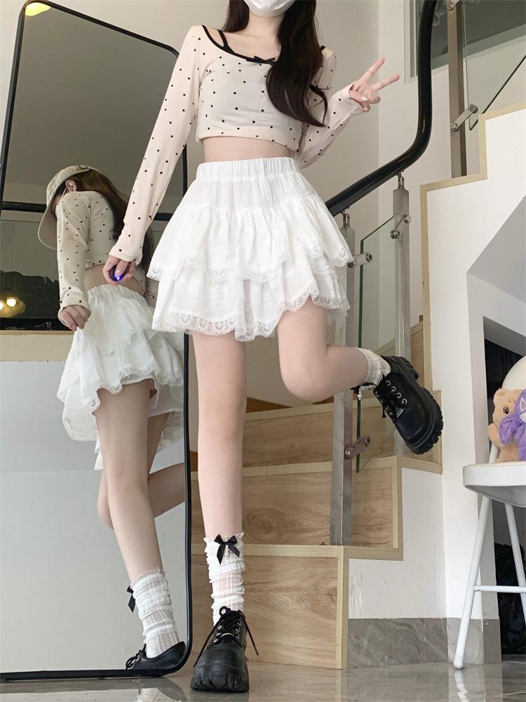 Falda Dulce de Deseo Puro para Mujer Verano 2024 Nueva Falda Corta Versátil Línea A de Cintura Alta con Diseño de Volantes
