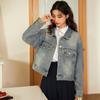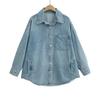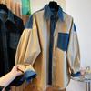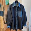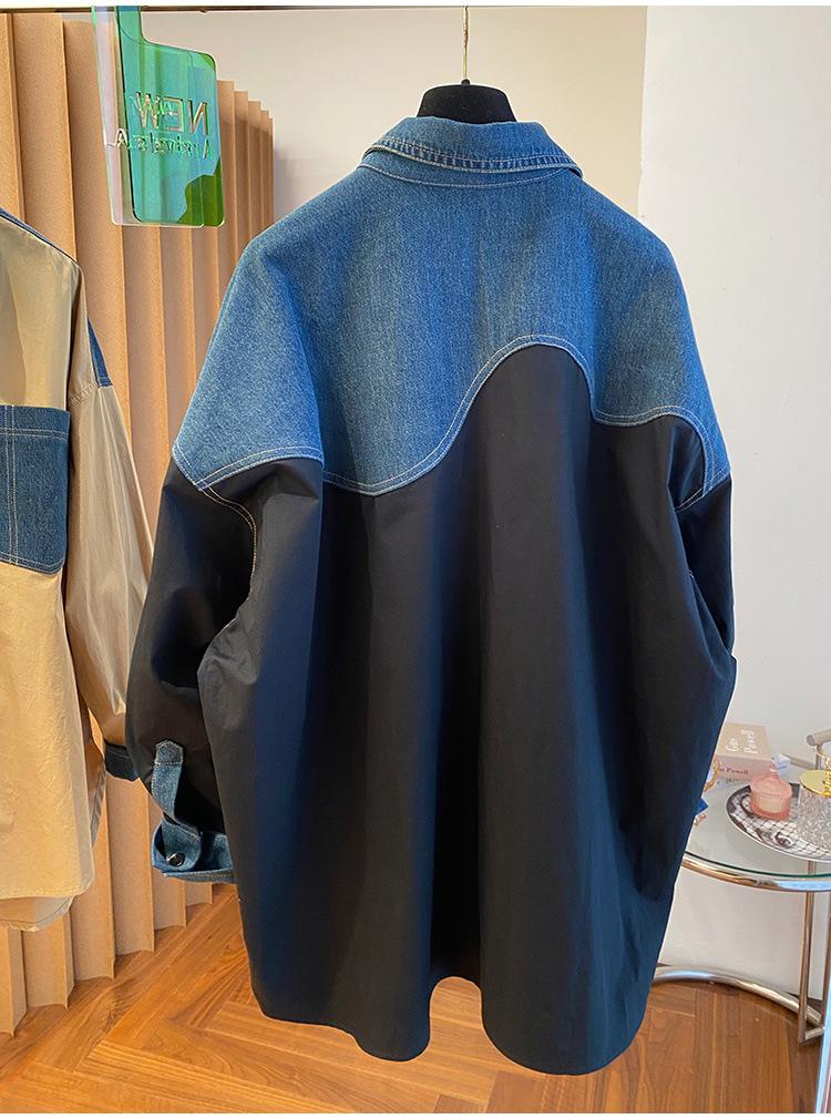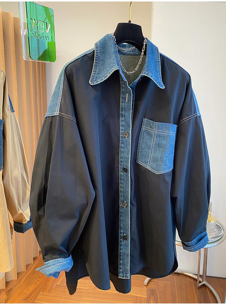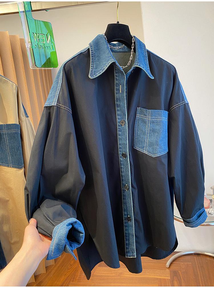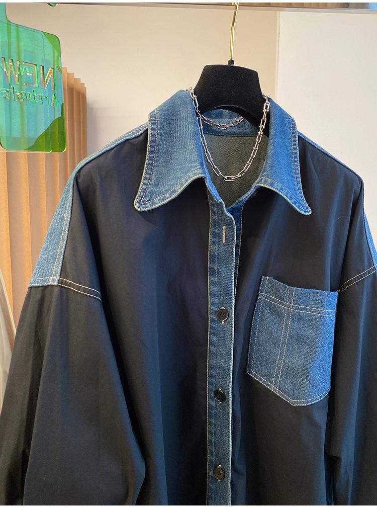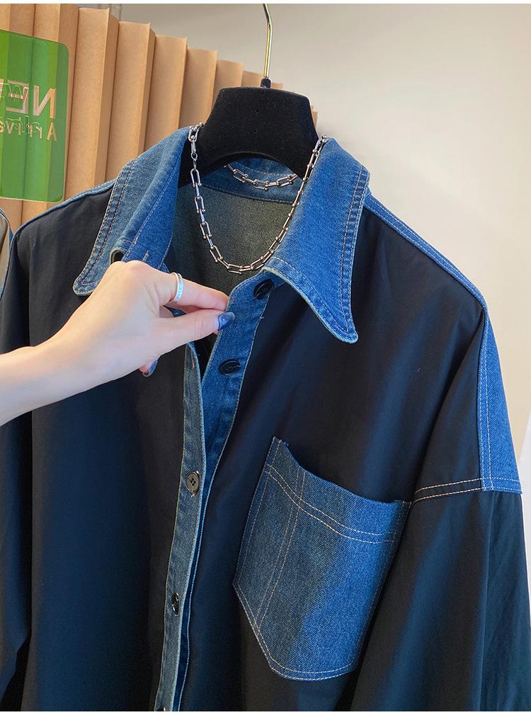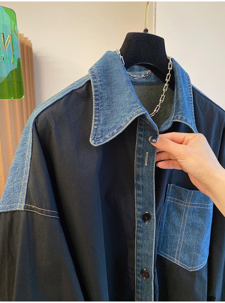 Camisa larga vaquera retro americana con costuras de diseño de nicho coreano de principios de otoño de 2024 para mujer