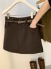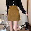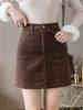 Falda nueva de pana marrón 2024 para mujer, otoño e invierno, delgada, de cintura alta, falda en A, falda para caderas pequeñas 145
