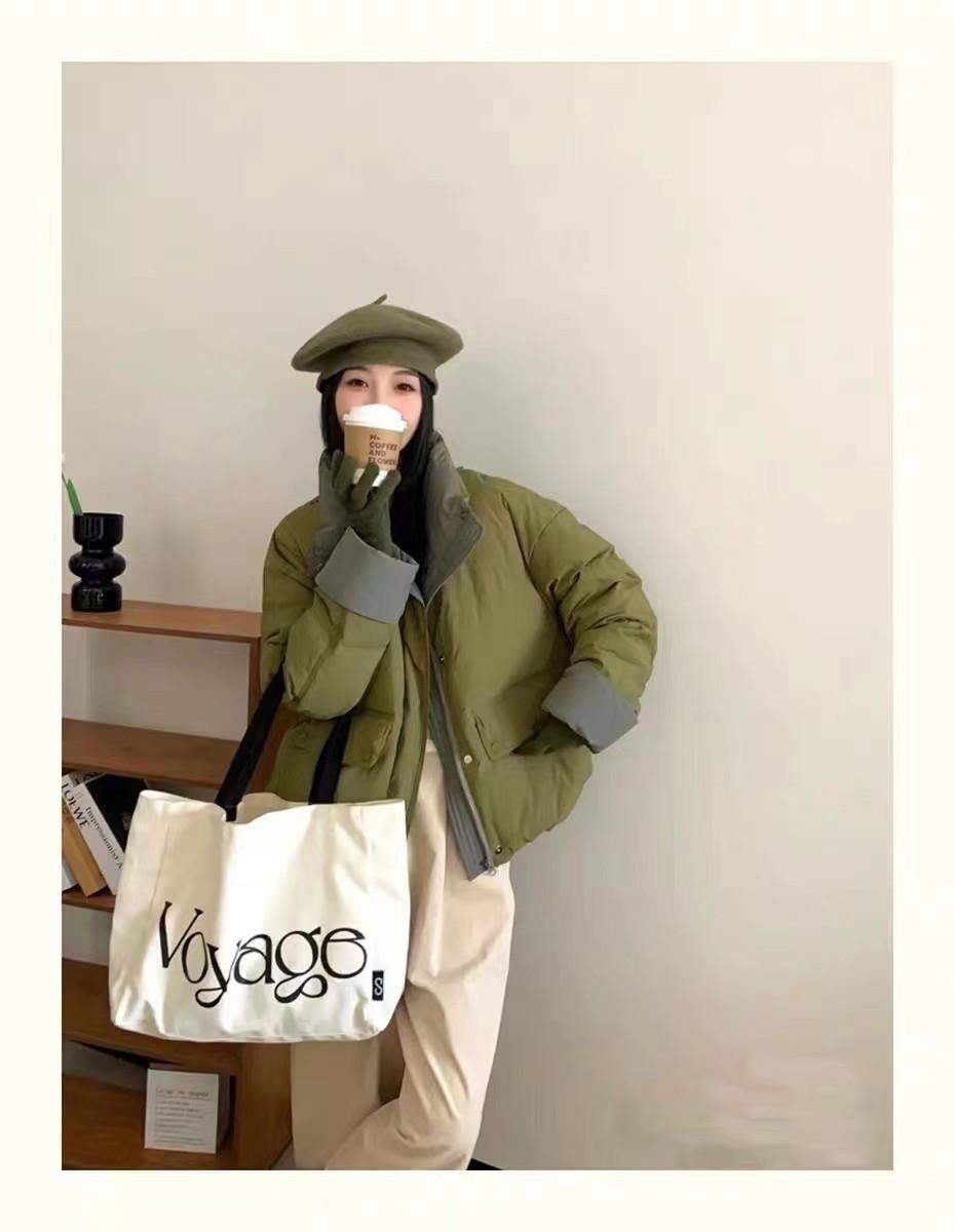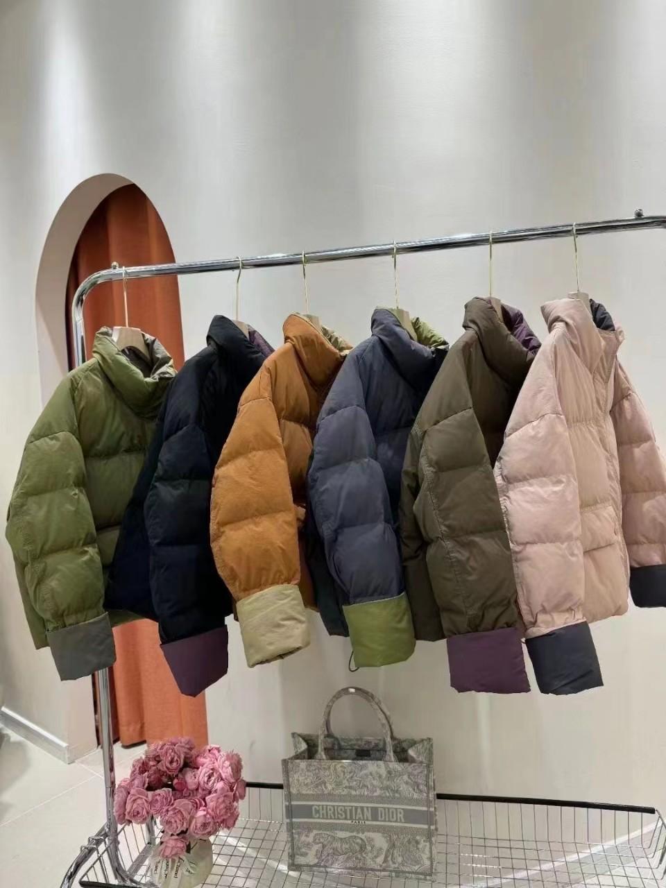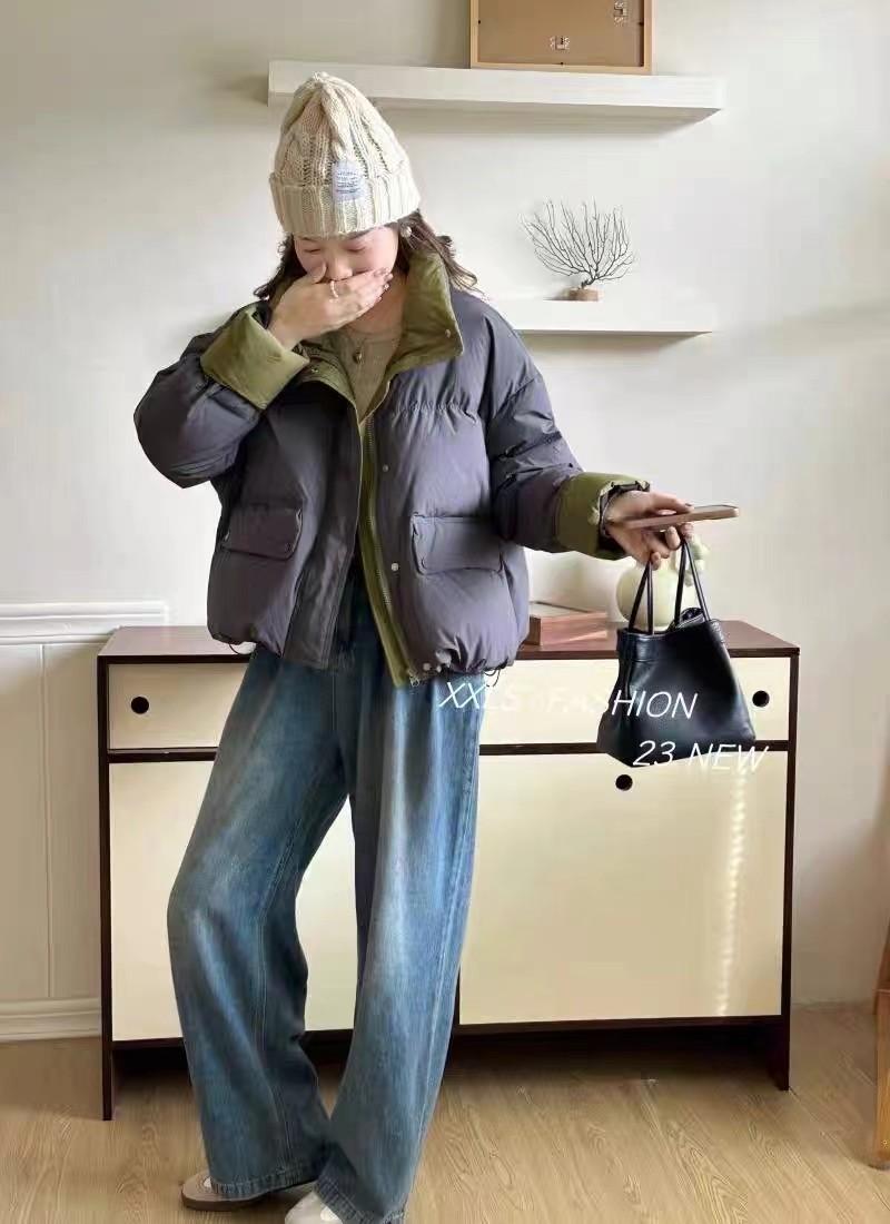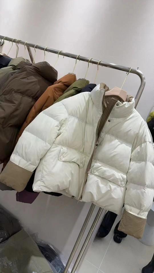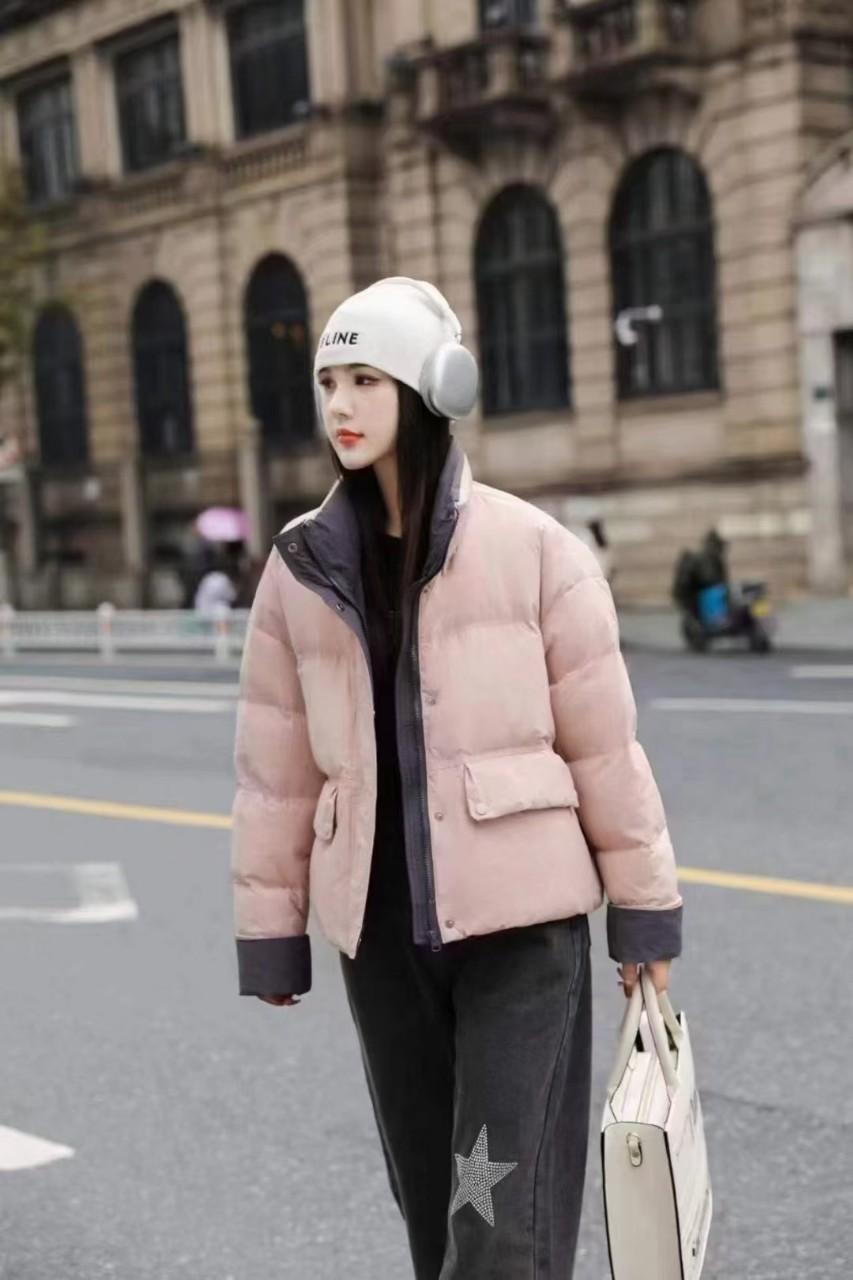 Chamarra de plumón de estilo coreano con color contrastante 2024 Invierno Nuevo Suelta y a la moda Color dopamina Gruesa Cálida Cuello alto Chaqueta tipo pan