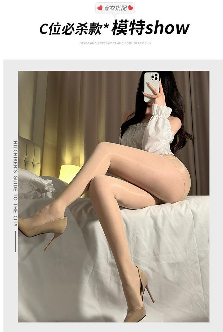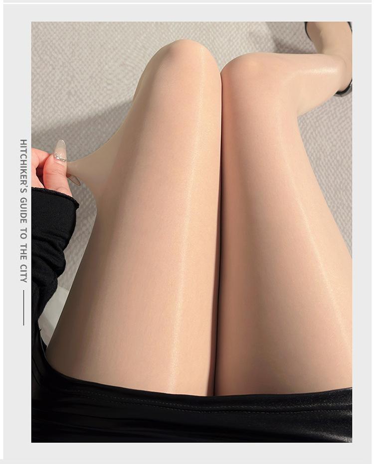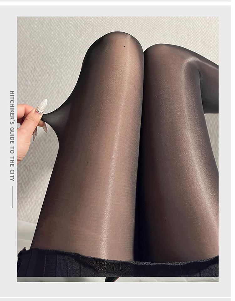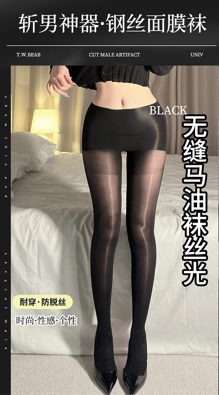Medias 360 Sin Costuras Aceite de Caballo Seda Aceite Medias Brillantes Cintura Alta Vientre Sin Costuras Sin Costuras Ultrafinas Pantimedias Cadera Manzana