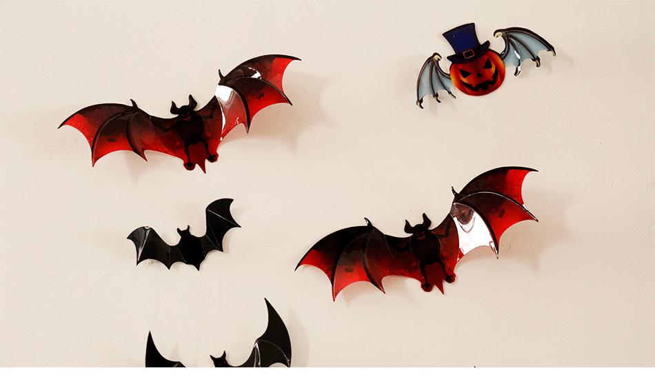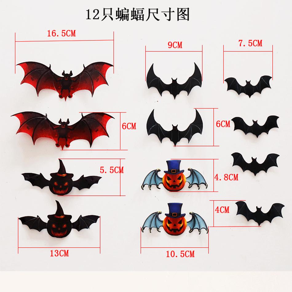 Pegatinas de pared de calabaza para Halloween, diseño de escena, decoración de murciélago 3D, fiesta de festival fantasma, paquete de 12