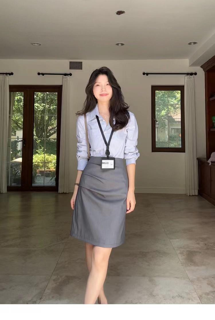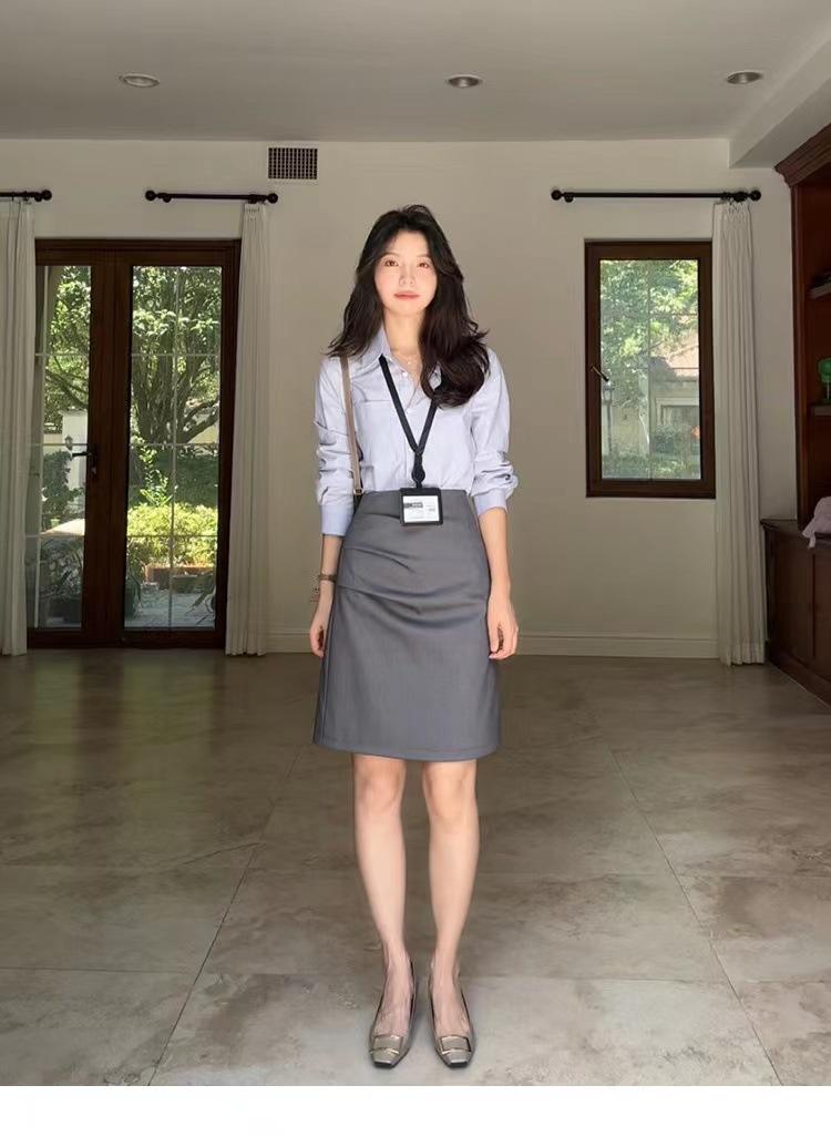 2025 Nuevo Estilo de Verano Ropa de Trabajo Elegante de Alta Gama Camisa Casual Versátil + Falda de Traje Traje Holgado
