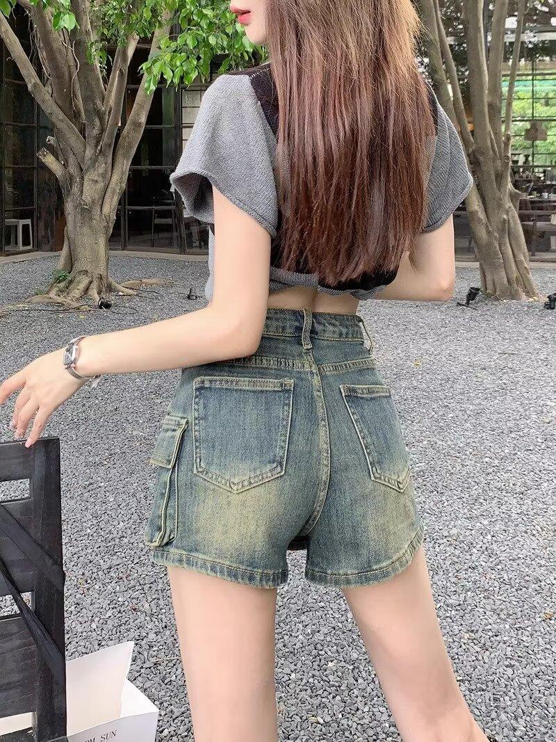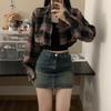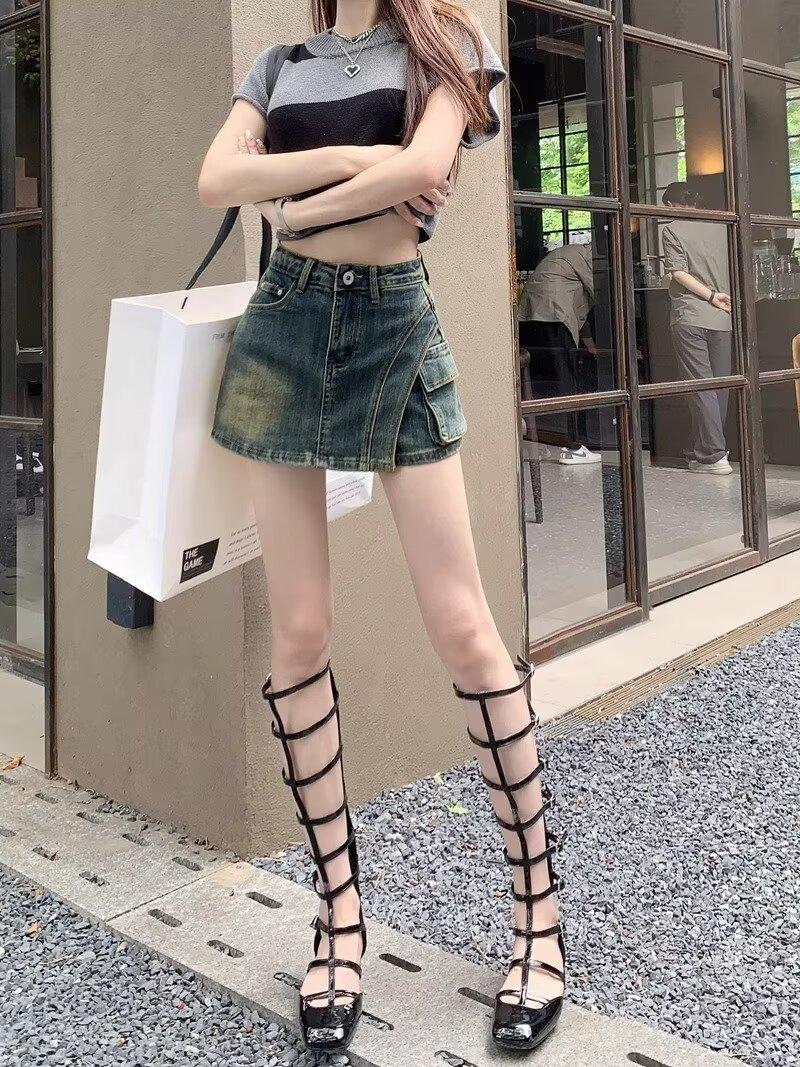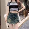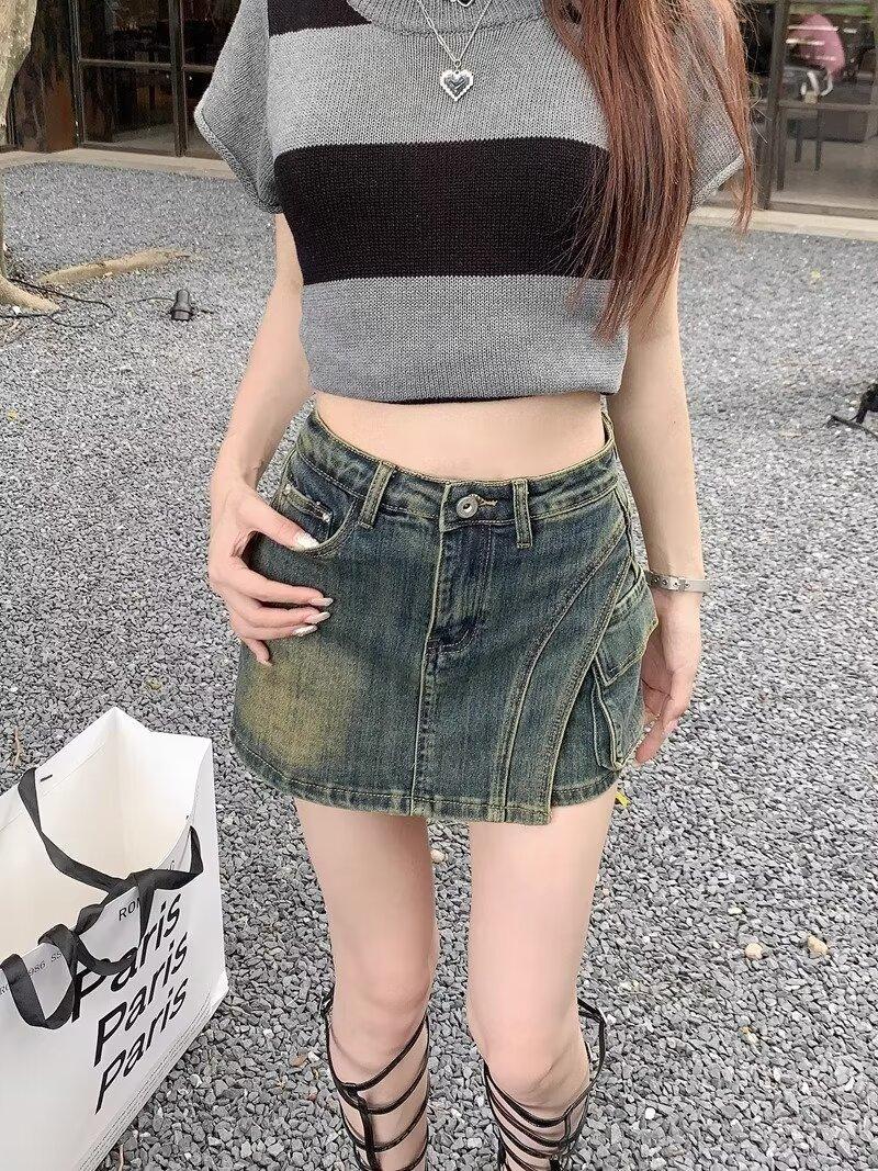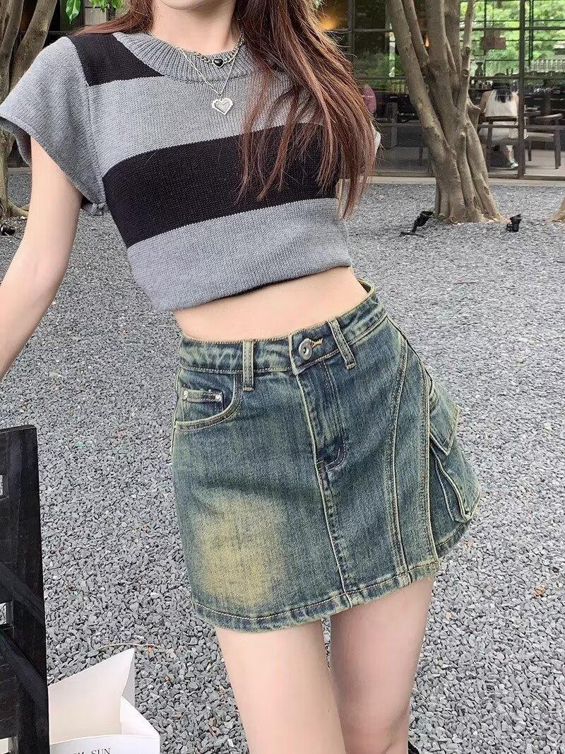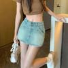 Falda corta de mezclilla para mujer, verano 2024, nueva, cintura alta, adelgazante, pequeña, línea A, falda de cadera, falda de media longitud, hakama