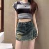 Falda de mezclilla irregular para mujer 2025 verano nueva sexy versátil falda de cadera look adelgazante falda corta línea A Ins