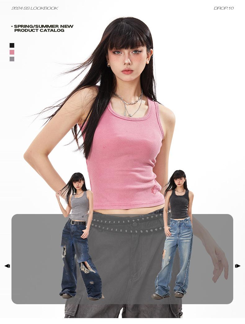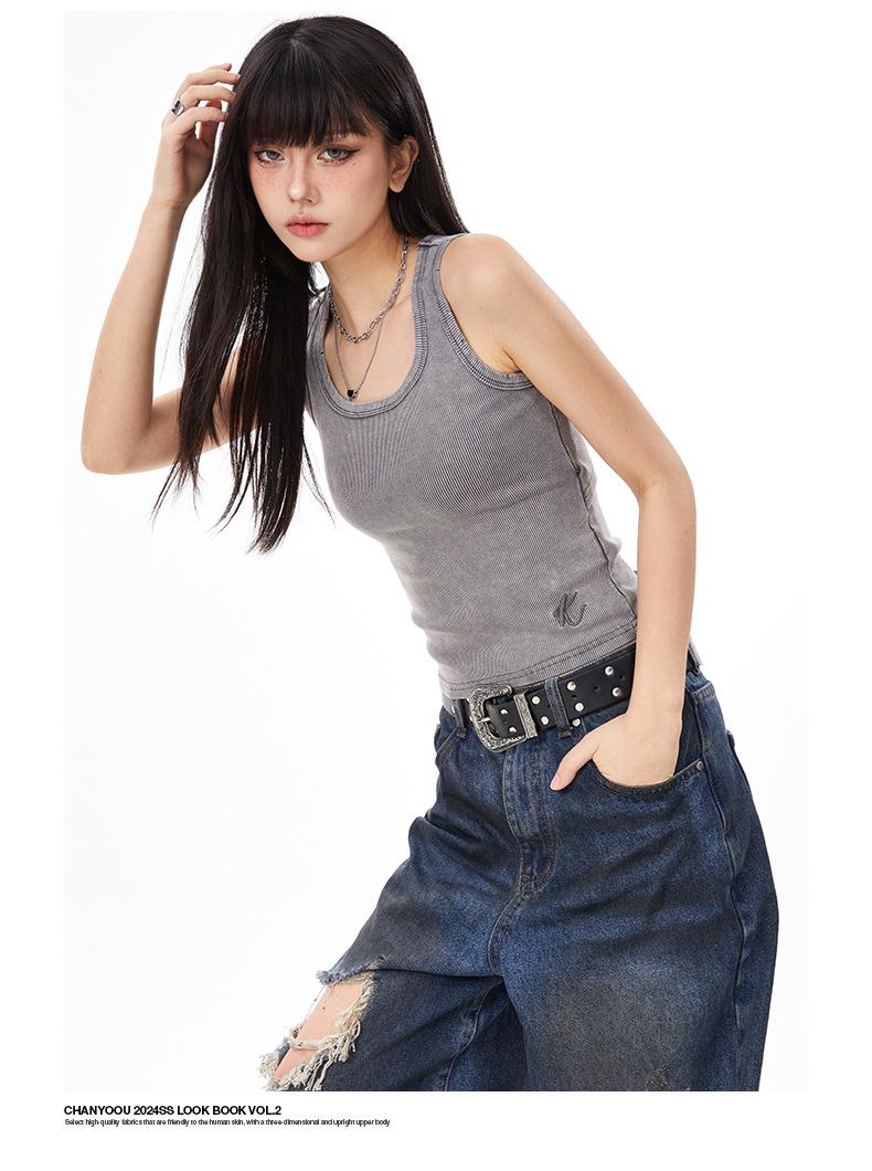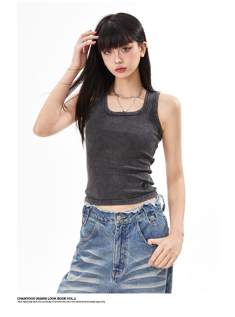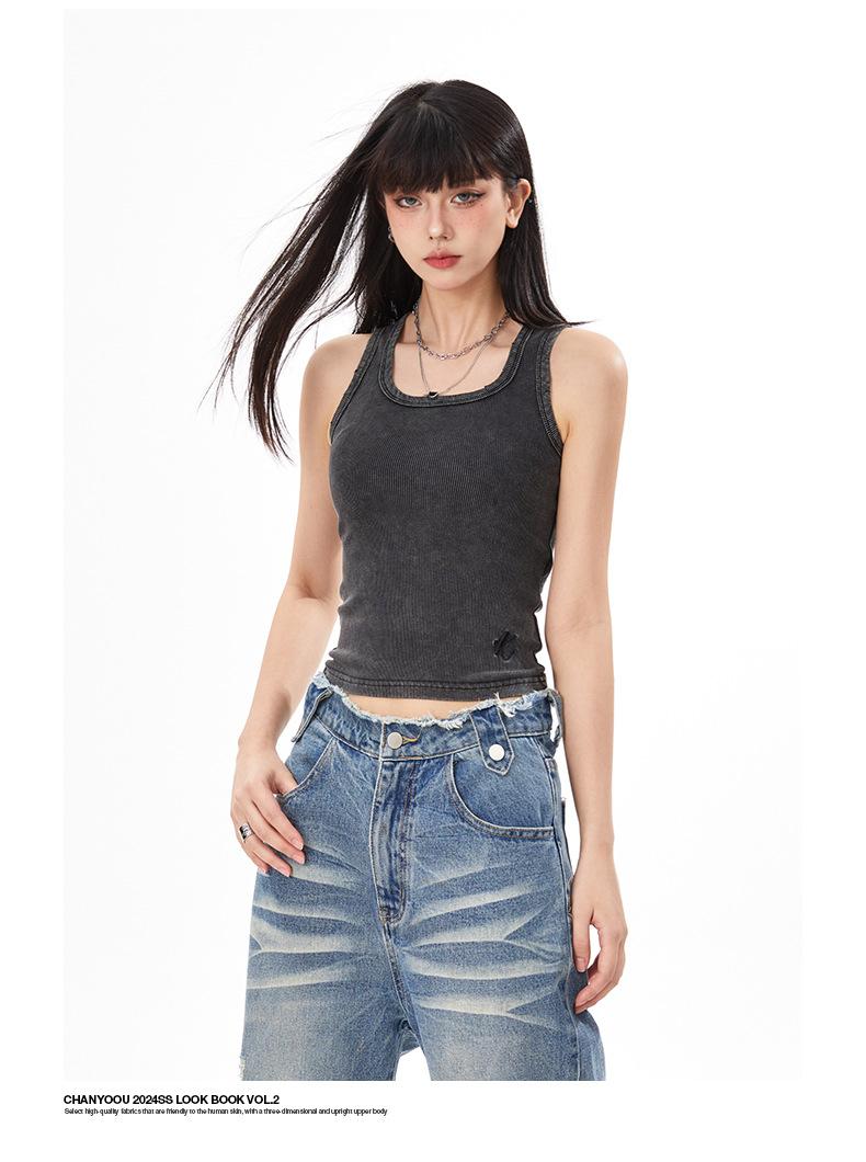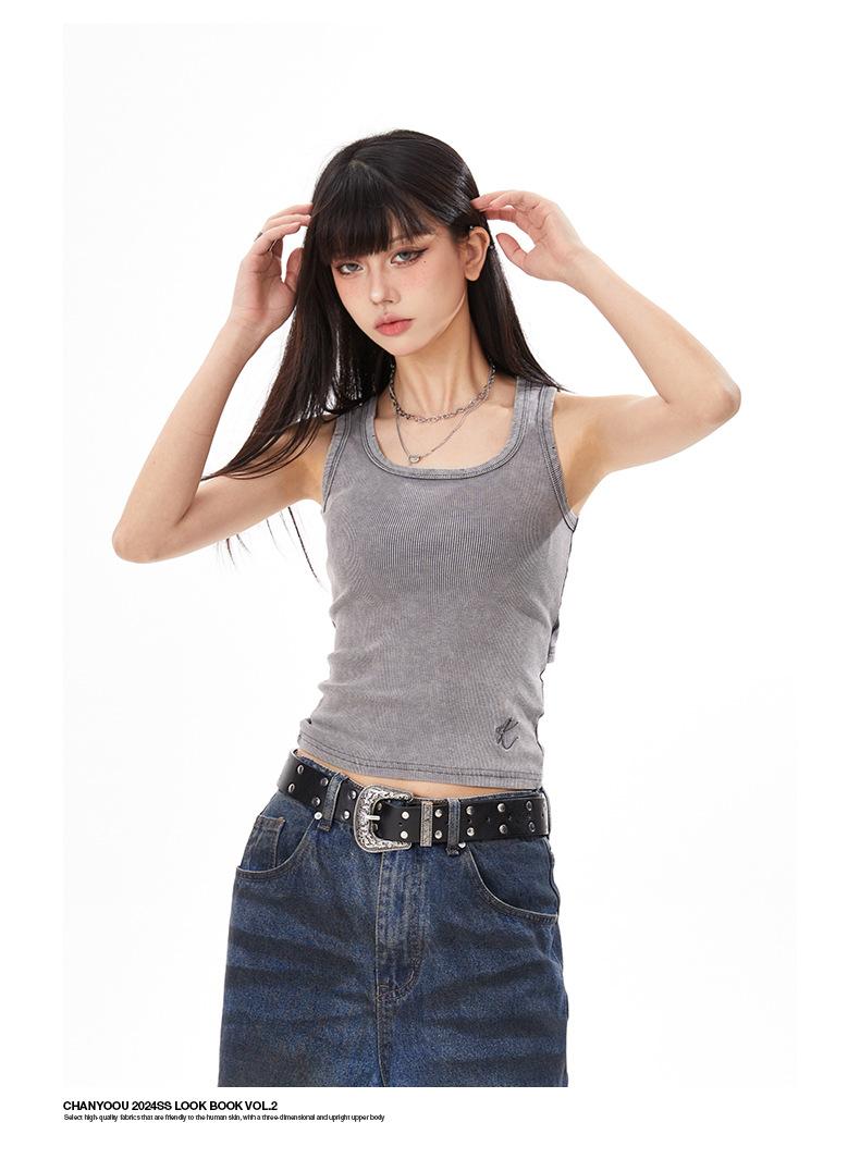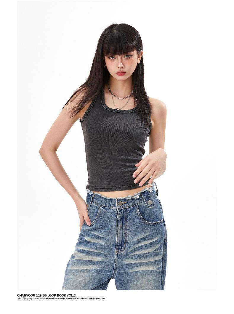 Ropa de mujer de corte bajo | Camisola chic única de American Niche, estilo retro de verano, corte ajustado, corta, cintura alta