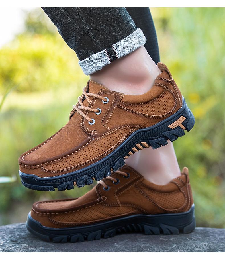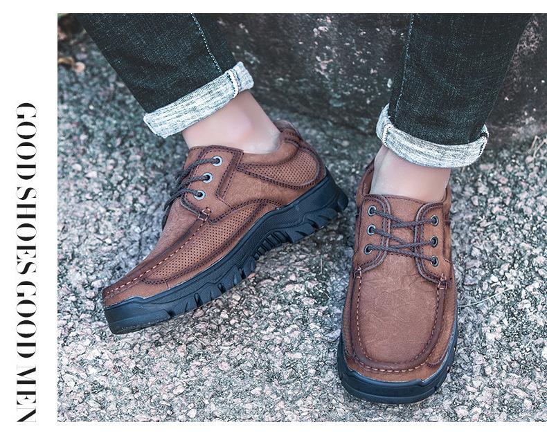 Zapatos Casuales de Exterior para Hombre Otoño e Invierno Capa Superior Piel de Vaca Puntera Grande Zapatos de Cuero para Hombre con Cordones Transfronterizos Talla Grande Huecos Zapatos de Hombre