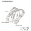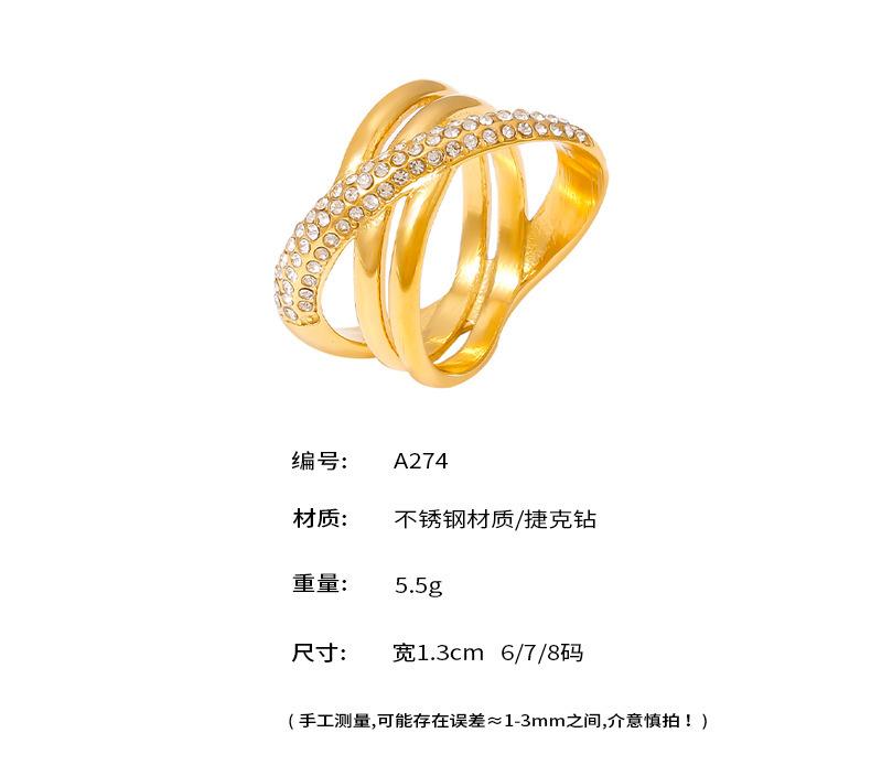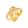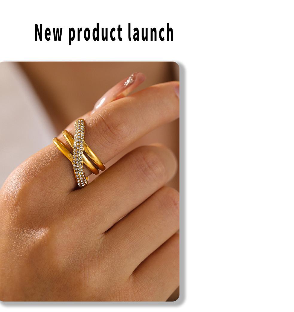 Anillo europeo y americano chic de viento cruzado con diamantes enrollados chapado en oro real de 18k que no se desvanece retro nicho anillo de acero inoxidable
