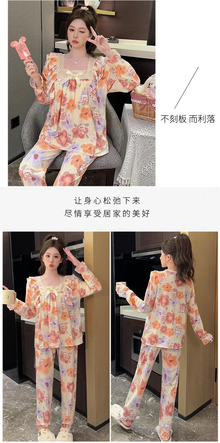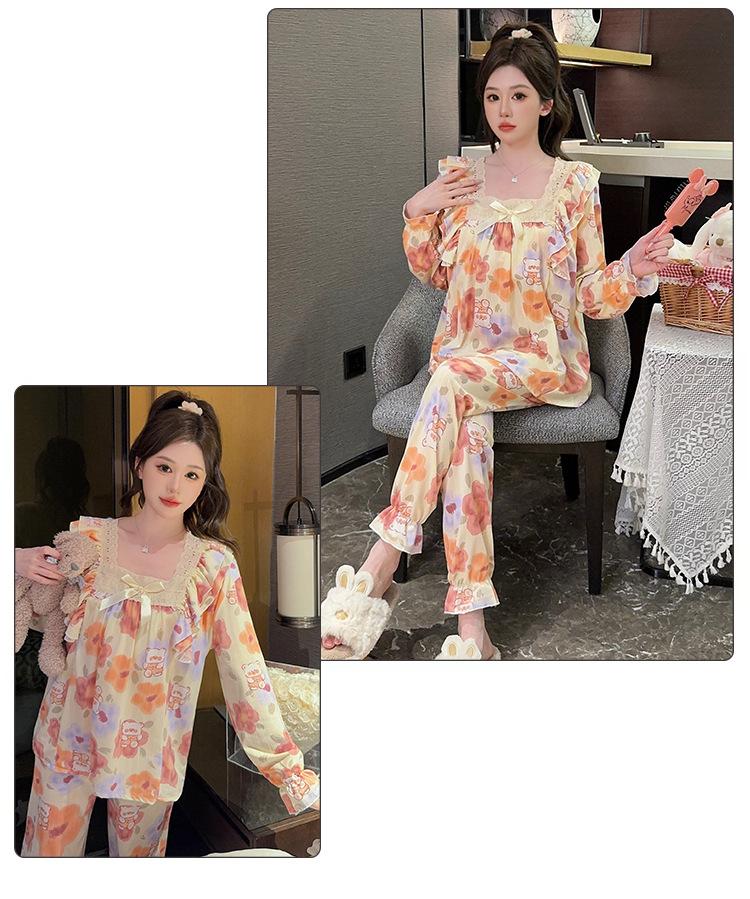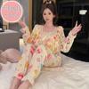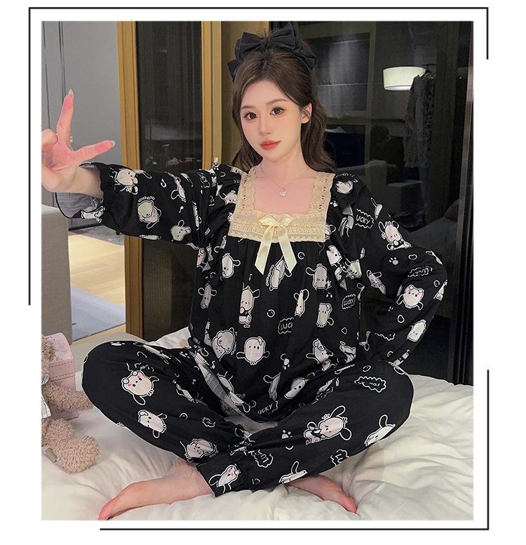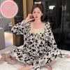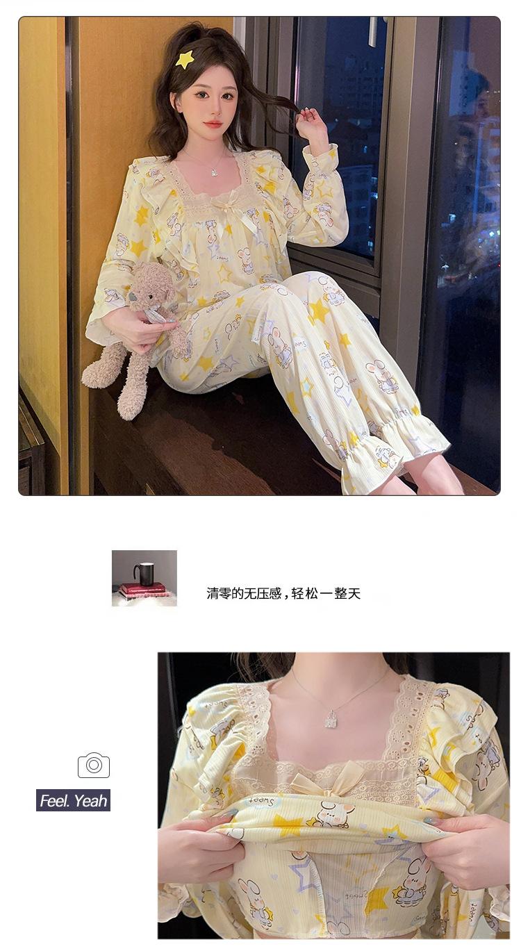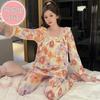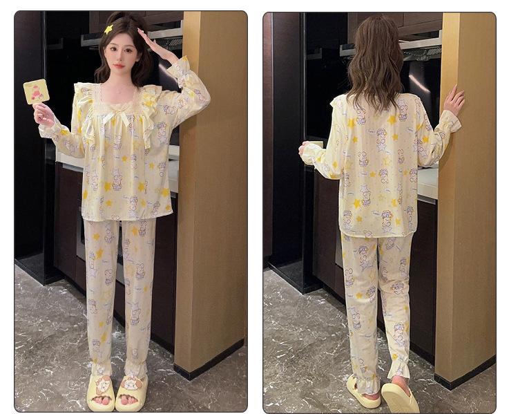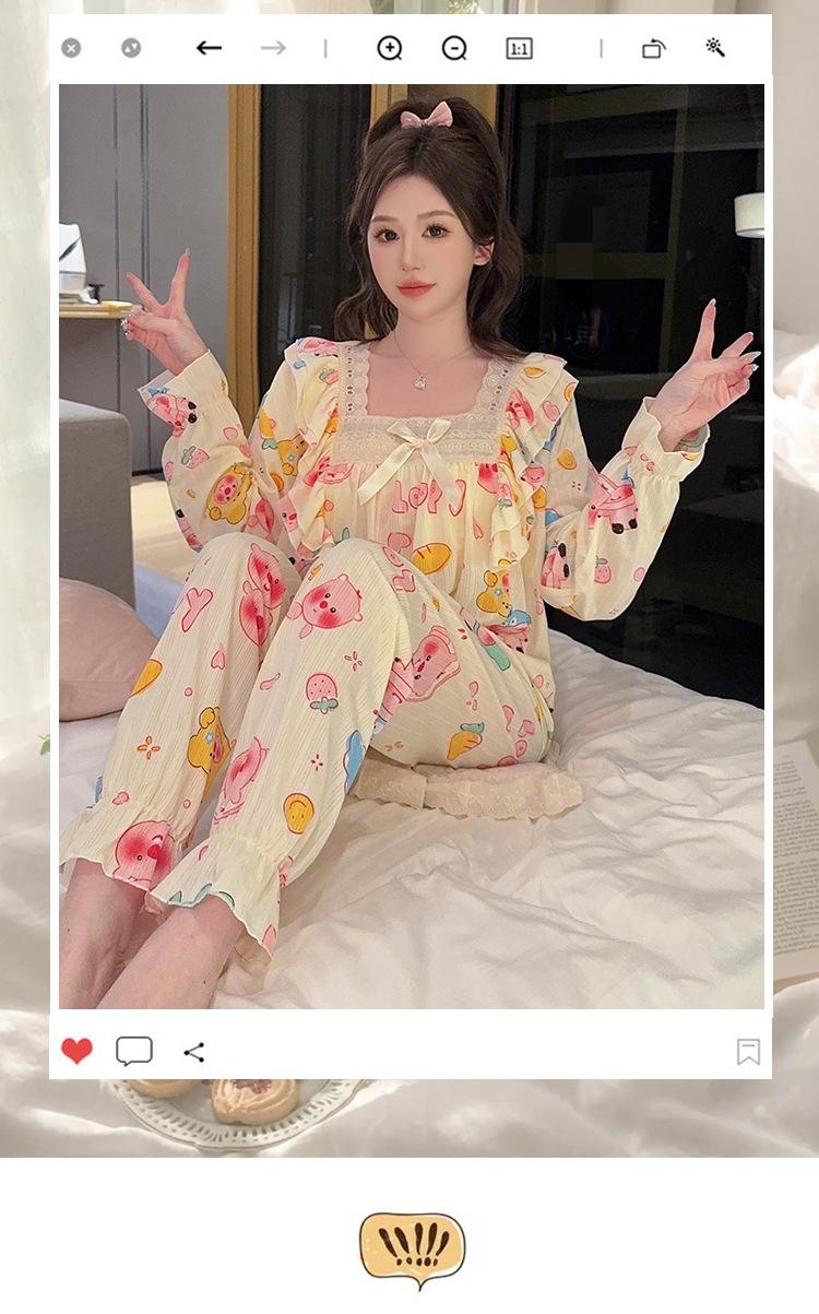 Pijama para Mujer Primavera y Otoño Lindo Dibujo Animado Manga Larga Pantalones con Almohadilla en el Pecho Talla Grande Chica Gordita Ropa Exterior Ropa para el Hogar
