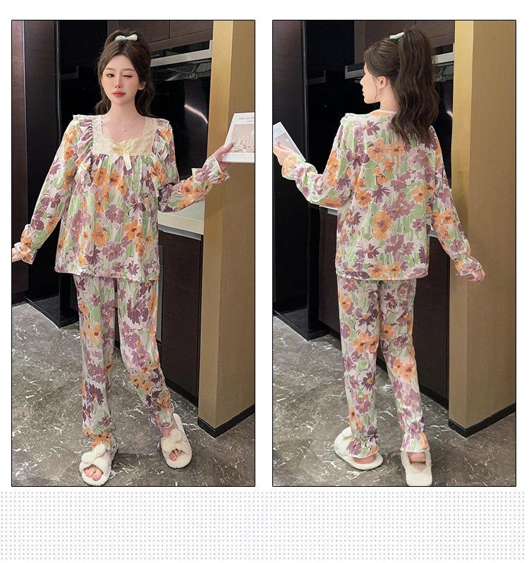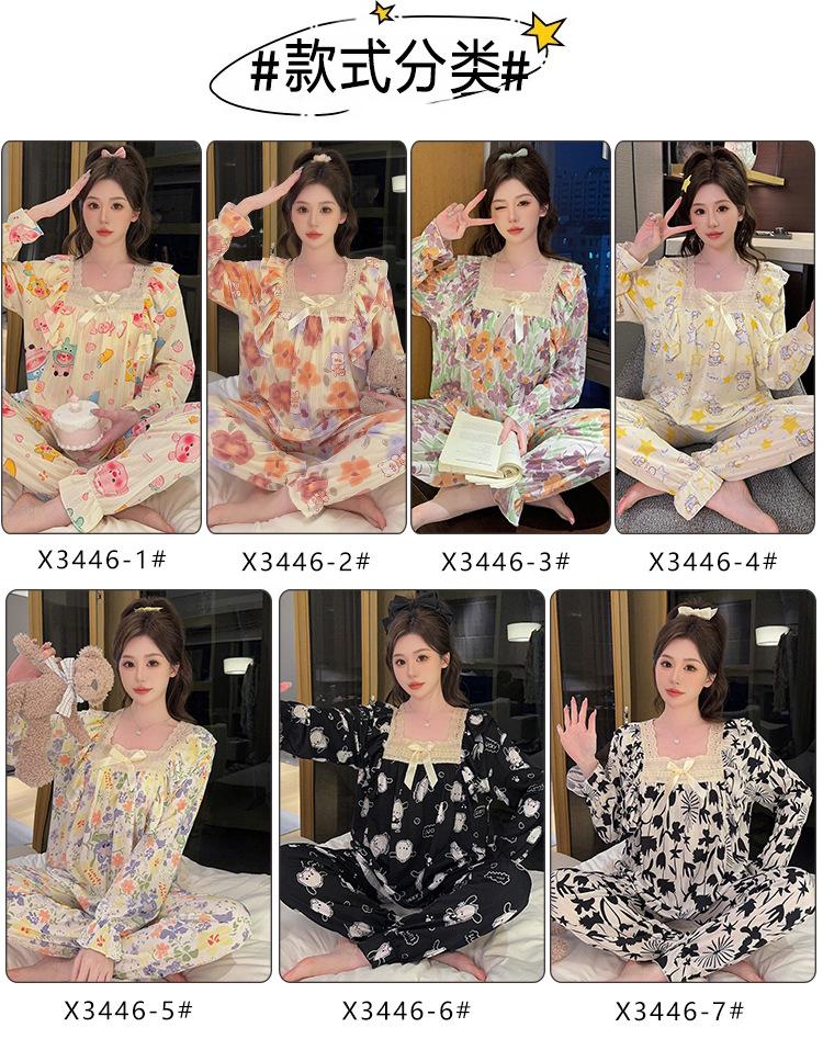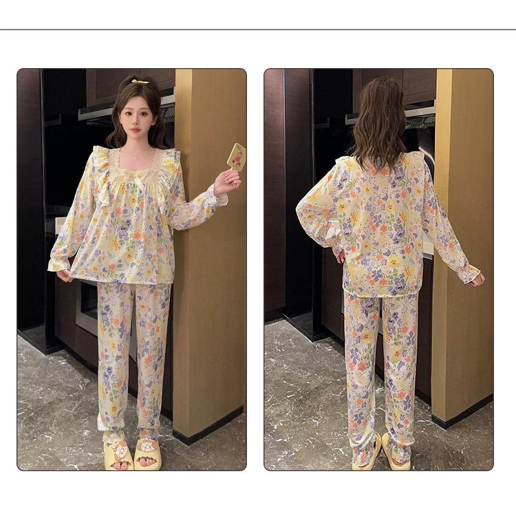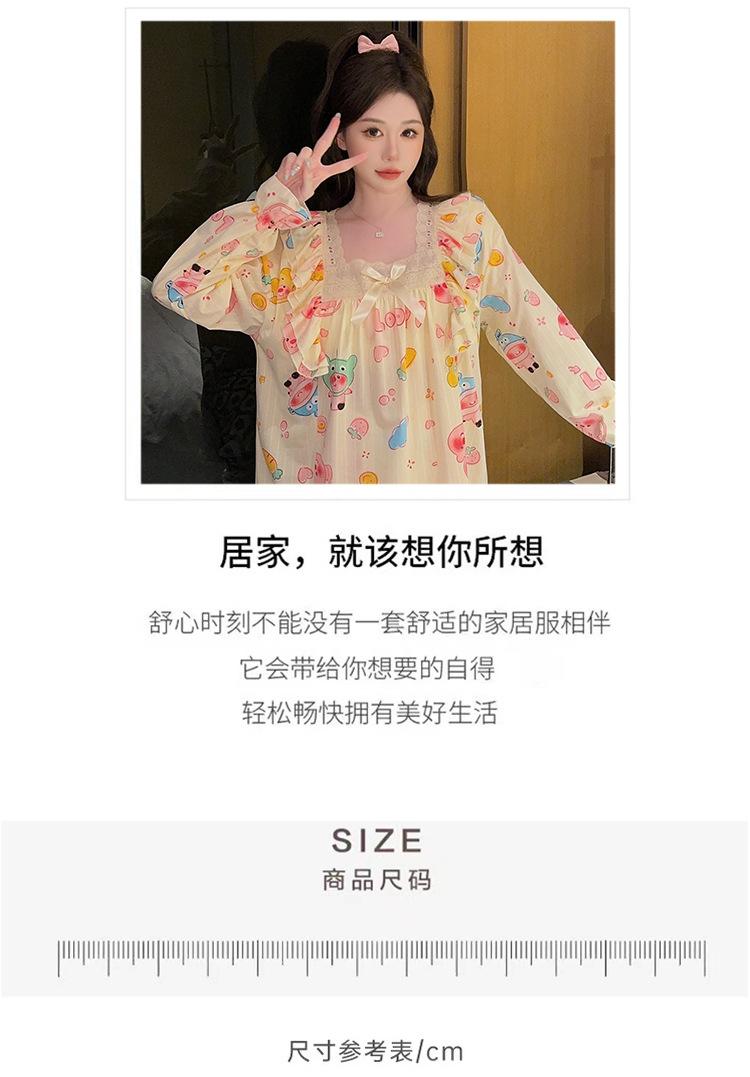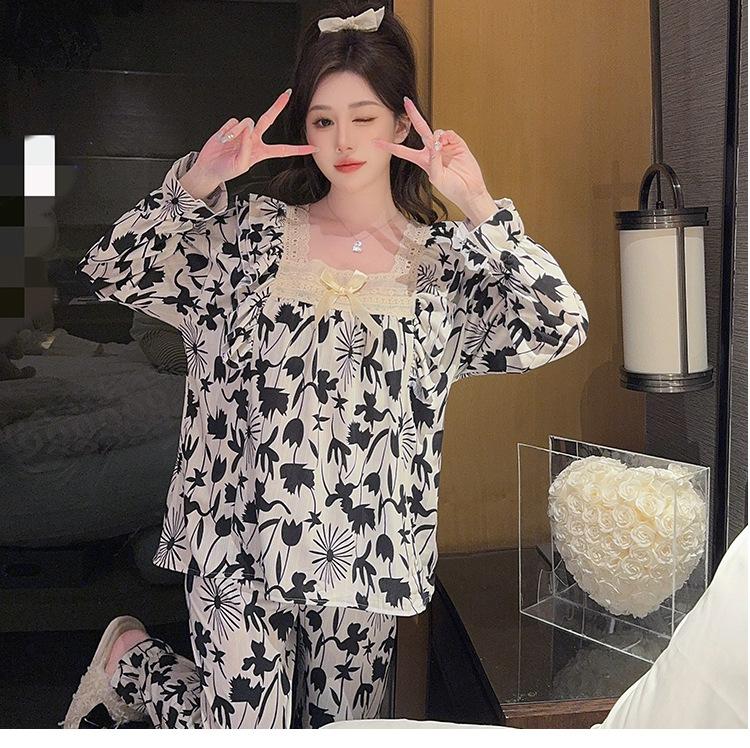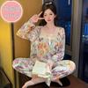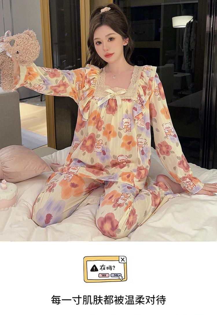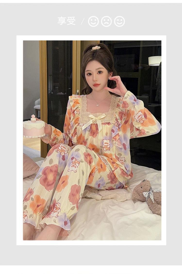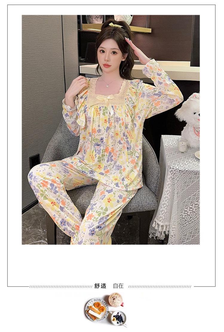 Pijama para Mujer Primavera y Otoño Lindo Dibujo Animado Manga Larga Pantalones con Almohadilla en el Pecho Talla Grande Chica Gordita Ropa Exterior Ropa para el Hogar