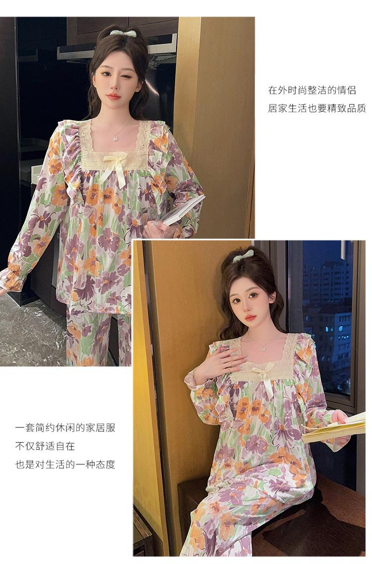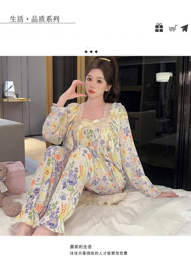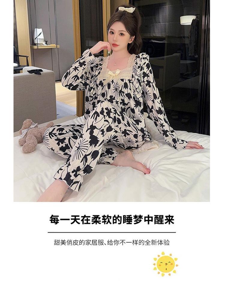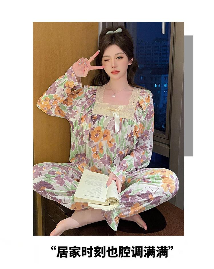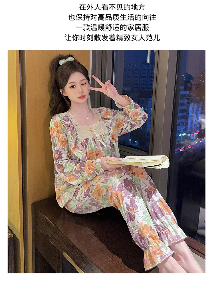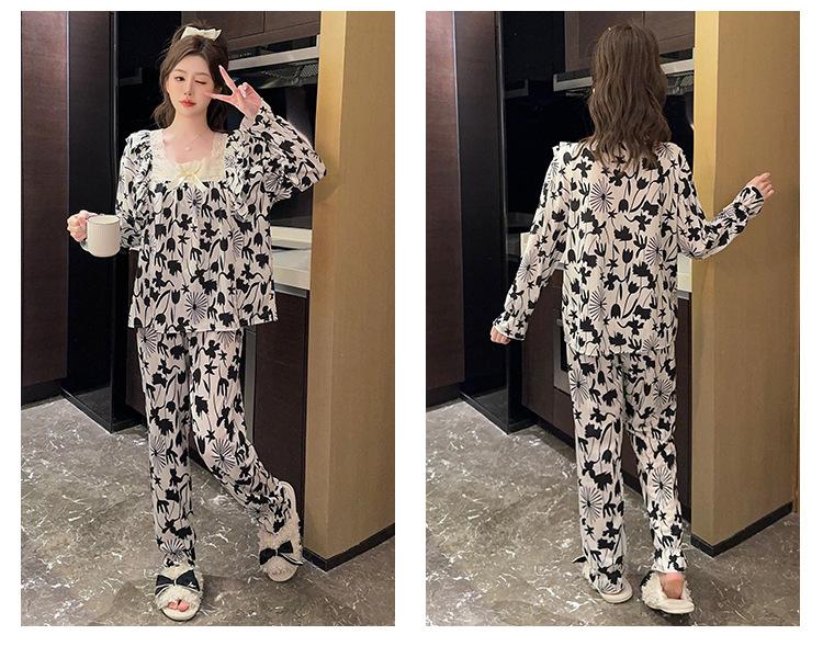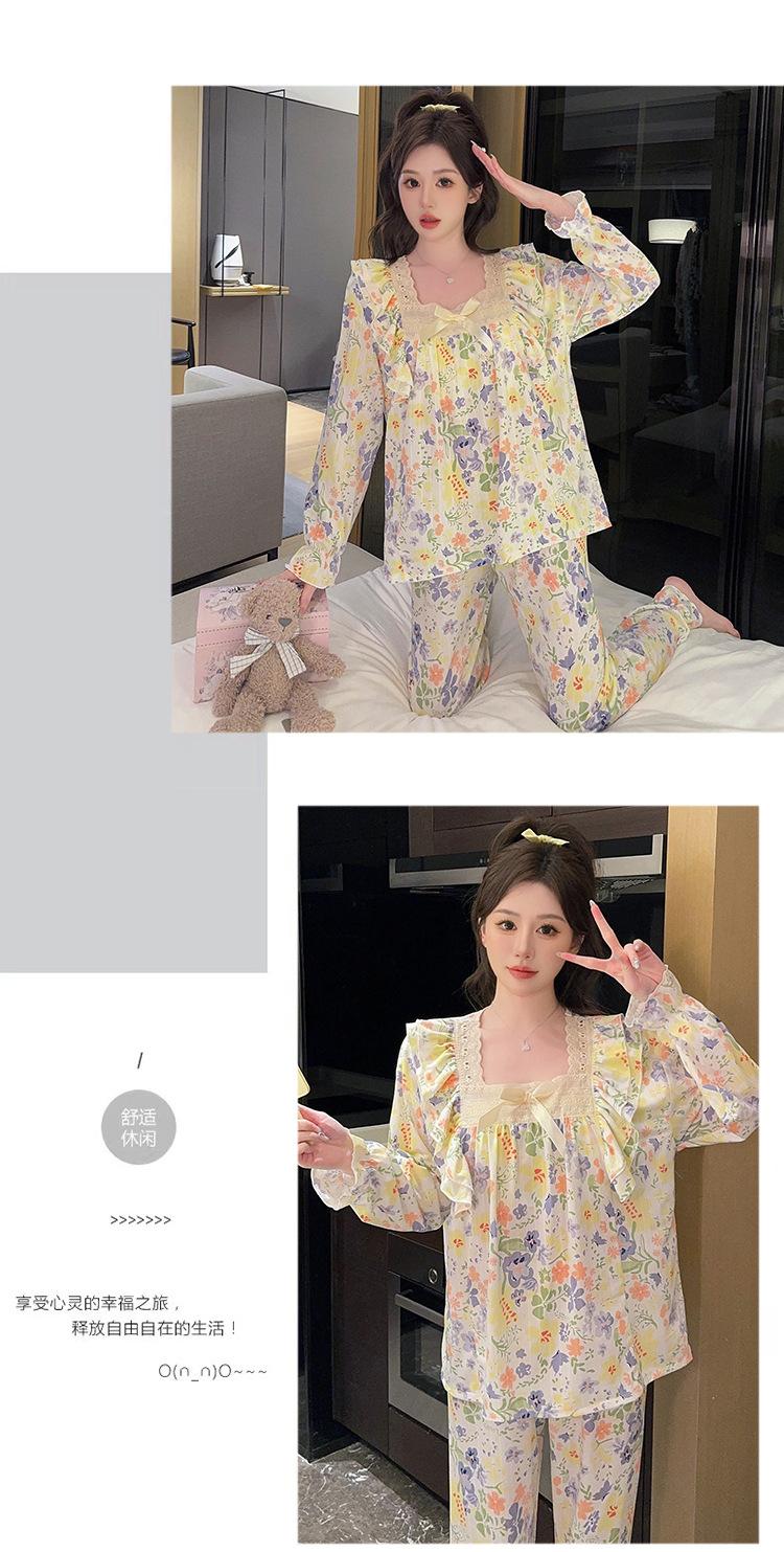 Pijama para Mujer Primavera y Otoño Lindo Dibujo Animado Manga Larga Pantalones con Almohadilla en el Pecho Talla Grande Chica Gordita Ropa Exterior Ropa para el Hogar