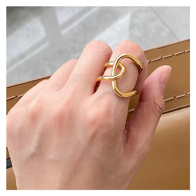 Anillo cruzado de enrollamiento de línea moda femenina simple estilo frío plata S925 anillo abierto estilo europeo y americano anillo de dedo de comida marea