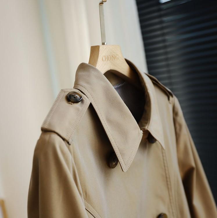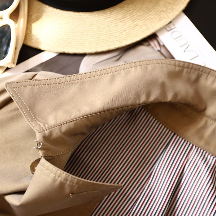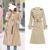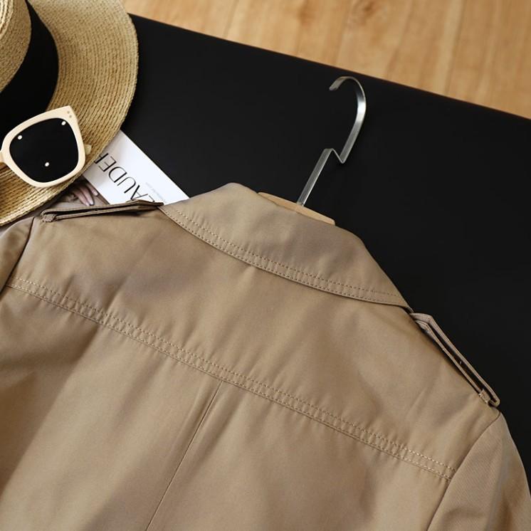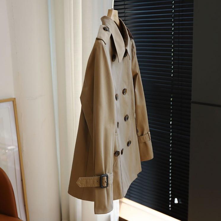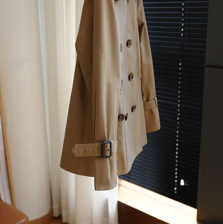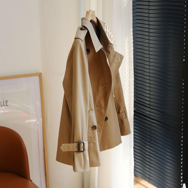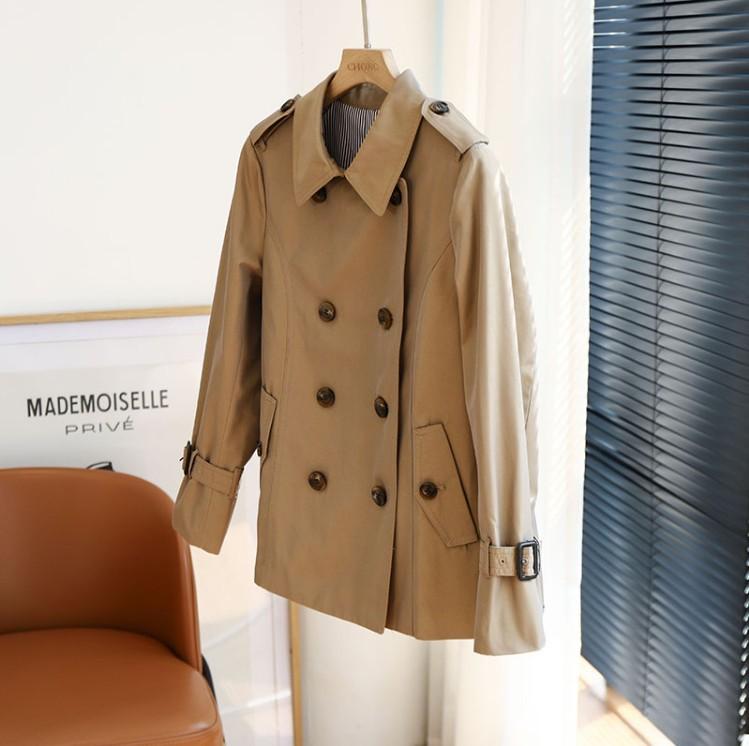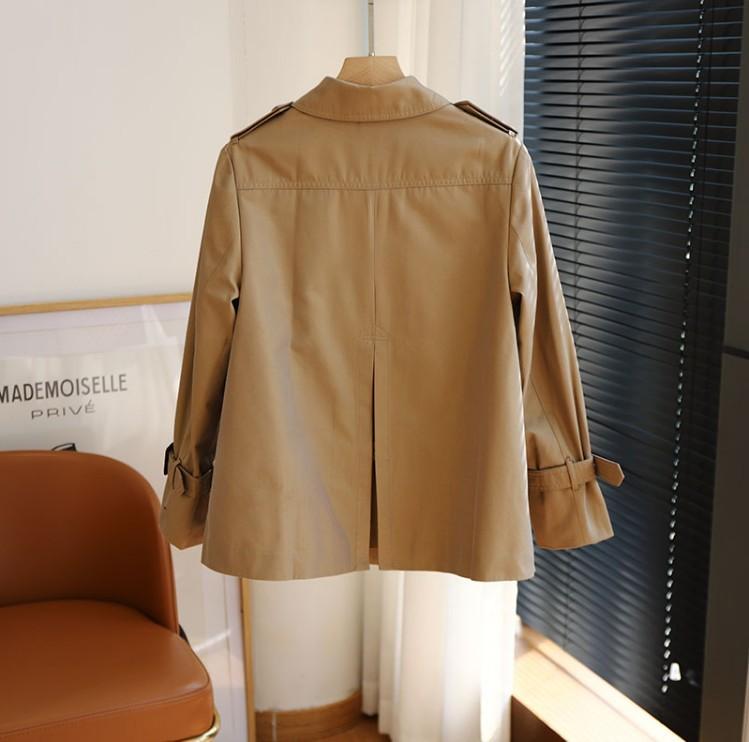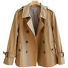 Gabardina corta caqui estilo británico con charreteras de doble botonadura para mujer otoño