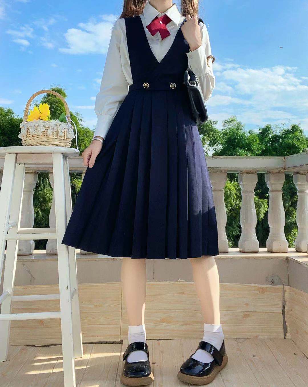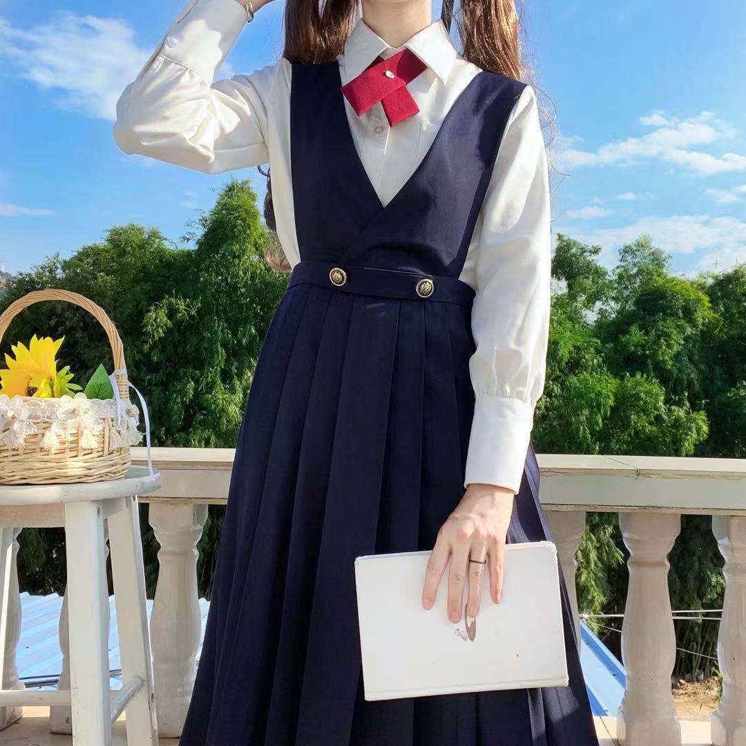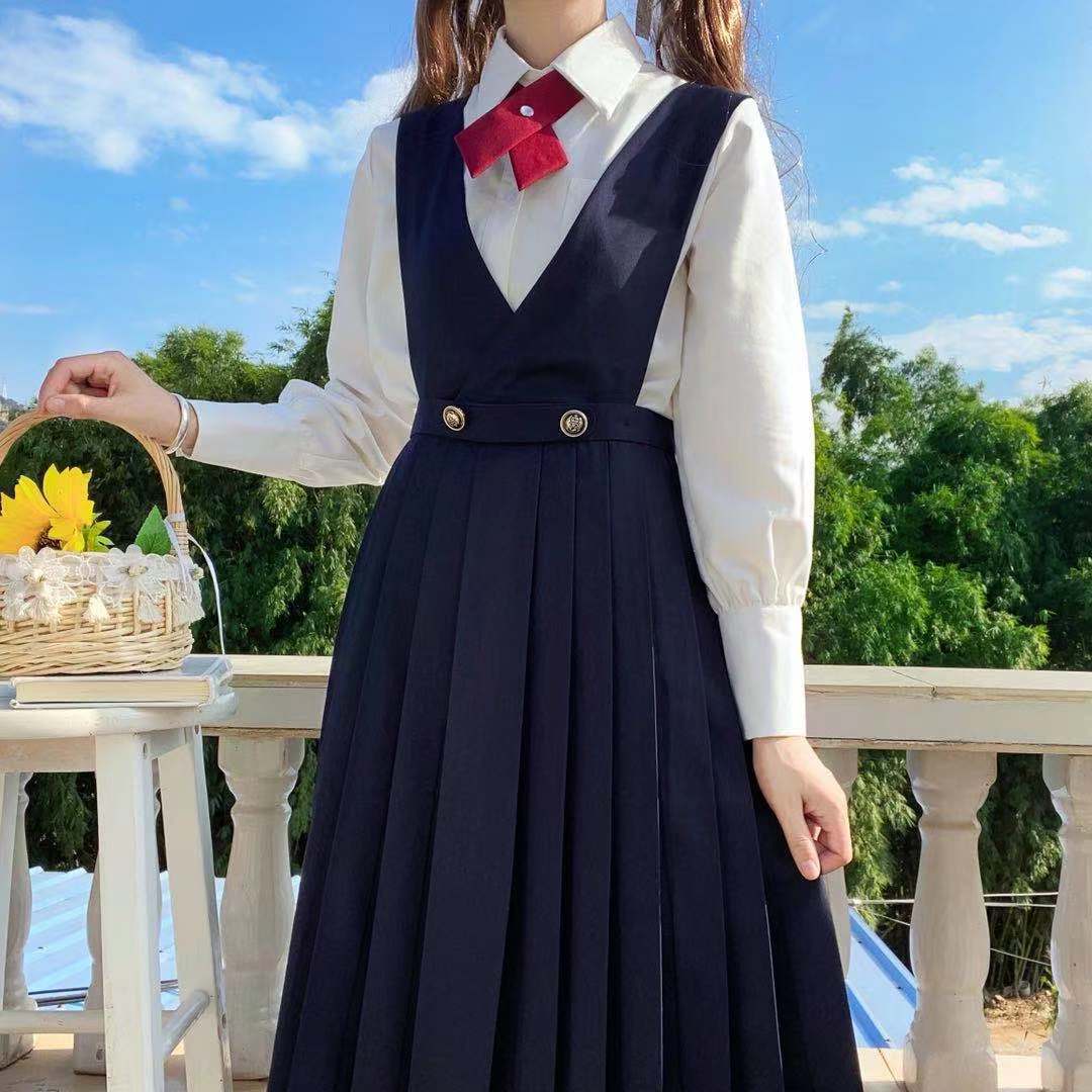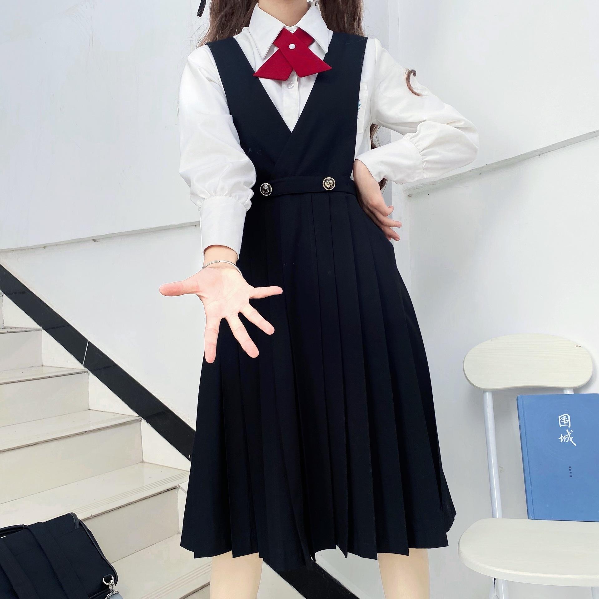 Falda básica de protección de leche falda larga estudiante falda con tirantes protección de pecho falda uniforme JK falda plisada falda de leche de tarjeta