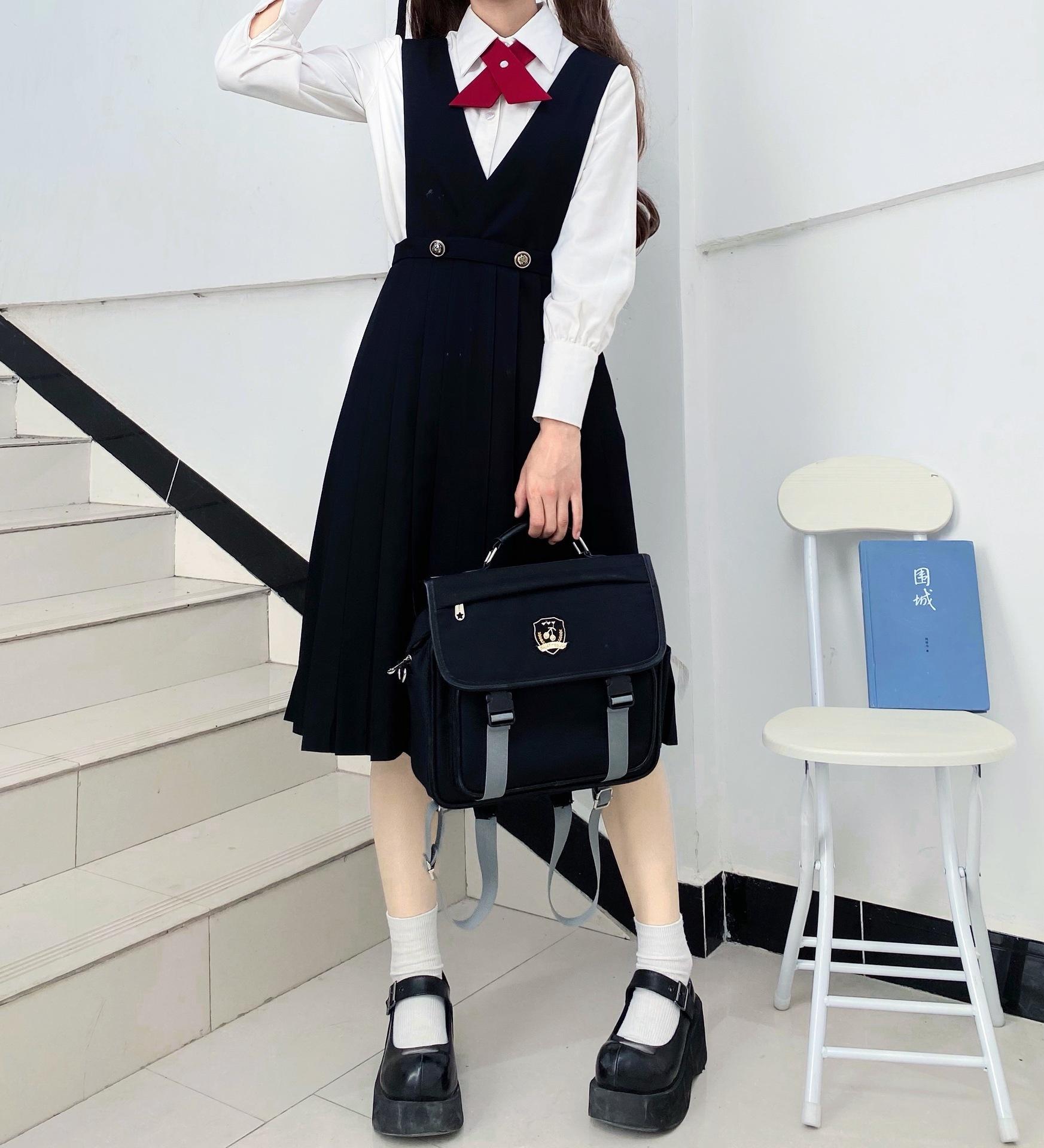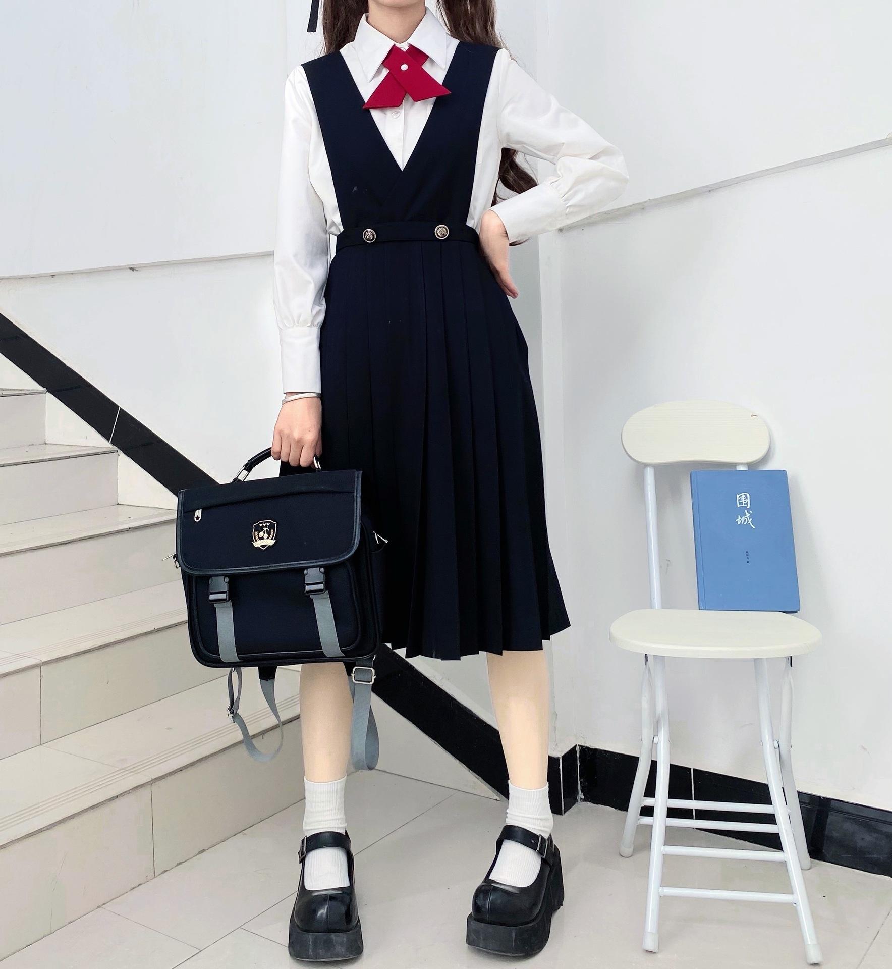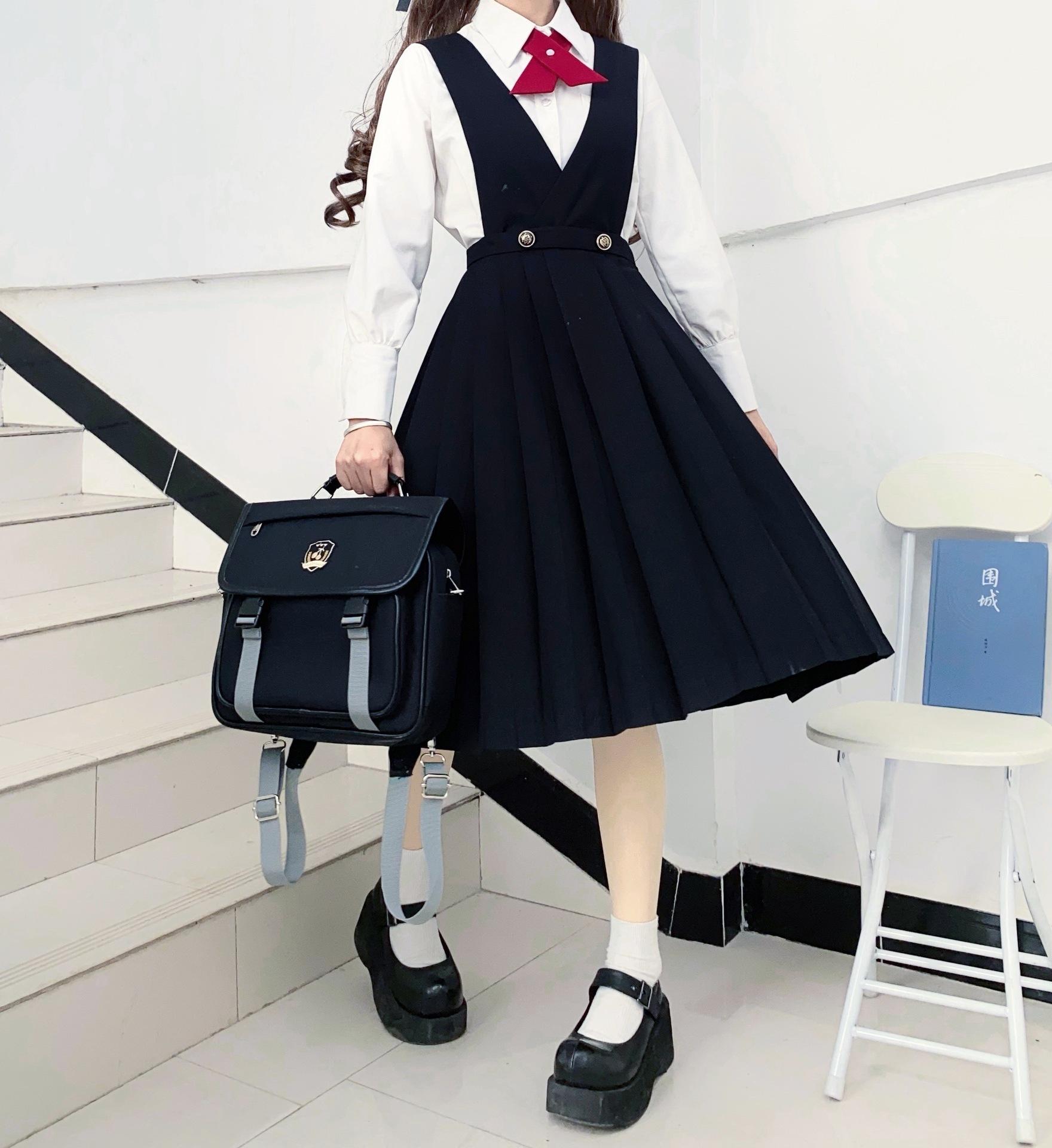 Falda básica de protección de leche falda larga estudiante falda con tirantes protección de pecho falda uniforme JK falda plisada falda de leche de tarjeta