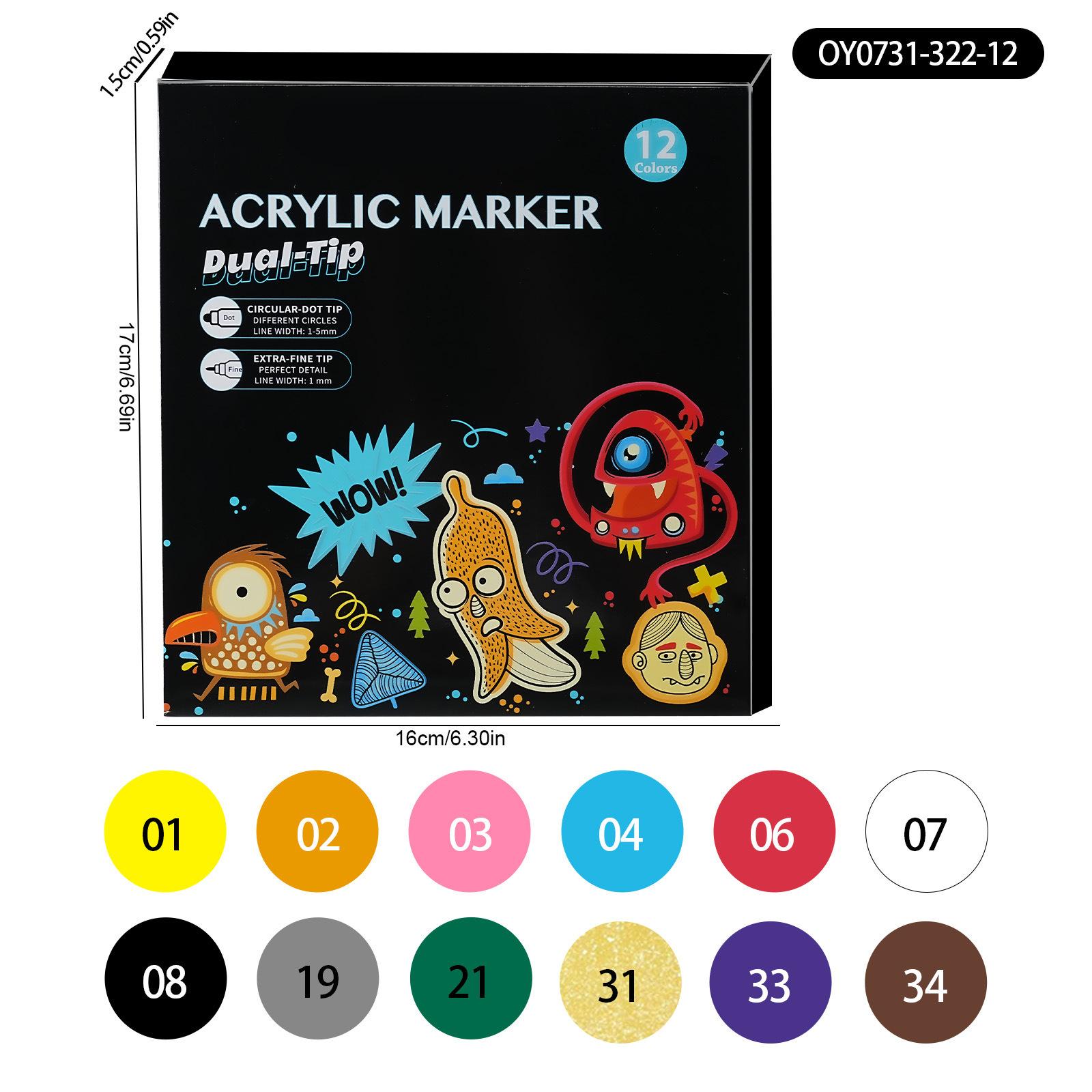 Set de Marcadores Acrílicos Dobles, Marcador de Puntos para Doodles, Marcador para Cuentas a Mano para Niños y Estudiantes, Marcador de Color para Graffiti
