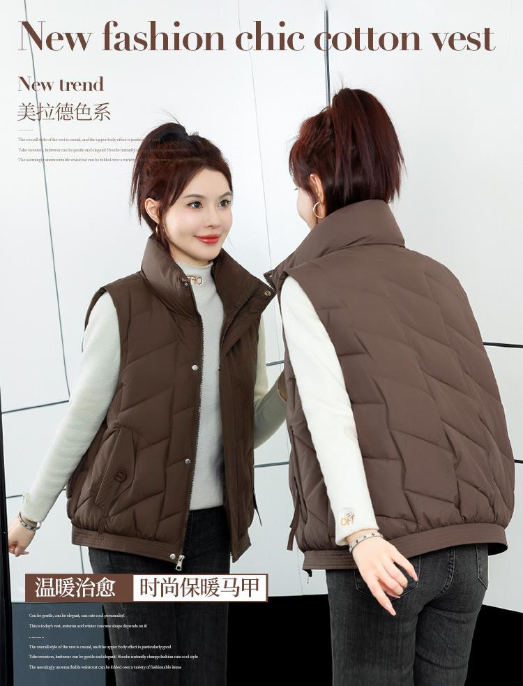 Chaqueta acolchada de algodón de plumón para otoño e invierno de 2025, chaleco de mujer con cuello alto corto, abrigo cálido a juego con todas las prendas, tendencia de tendencia