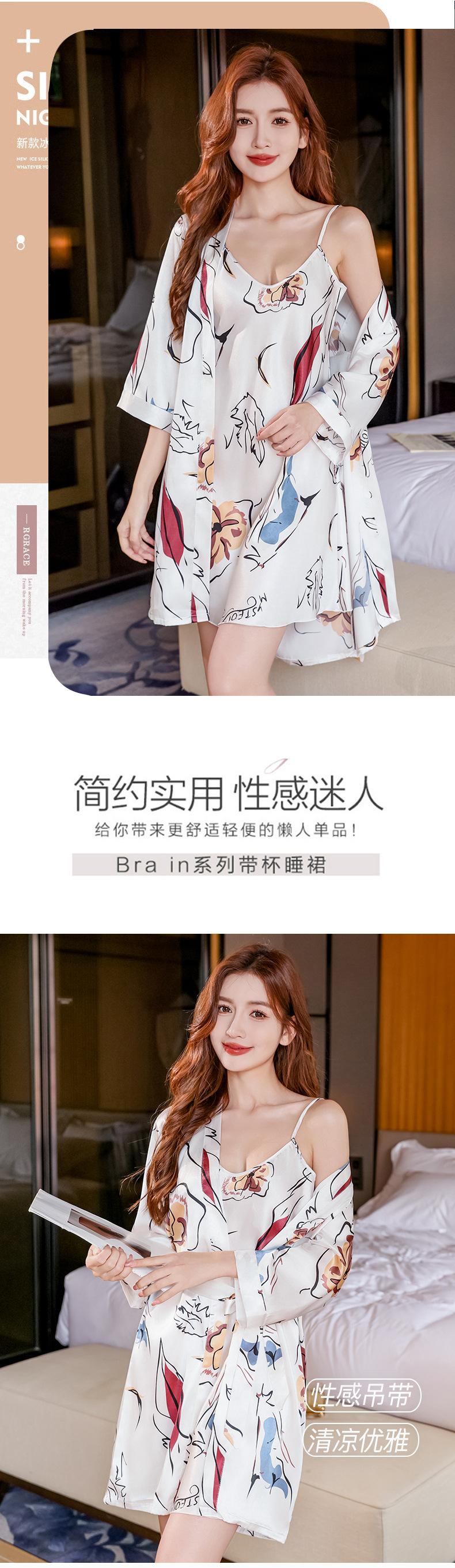 Pijama estilo coreano, camisón de seda para mujer, bata de baño de verano de seda helada, cárdigan fino y sexy, camisón de seda helada de longitud media para el hogar