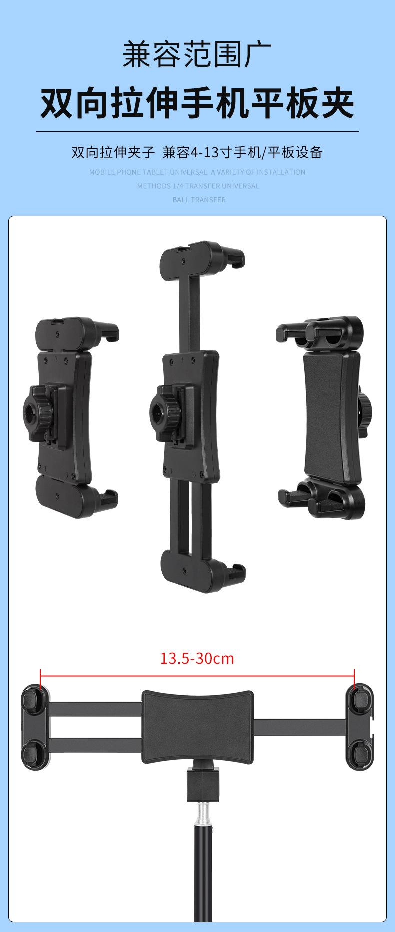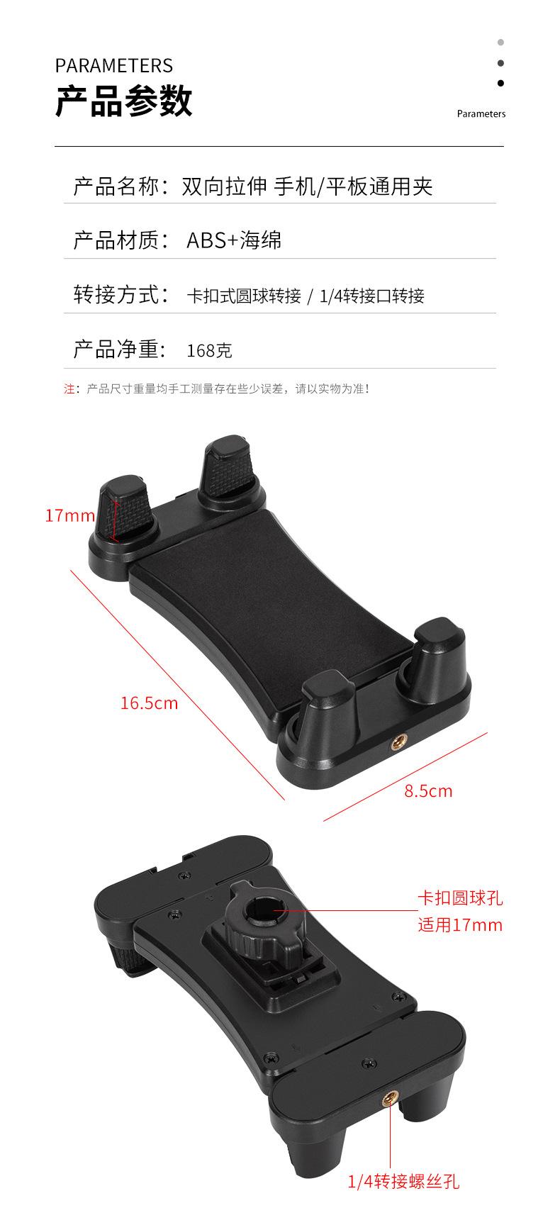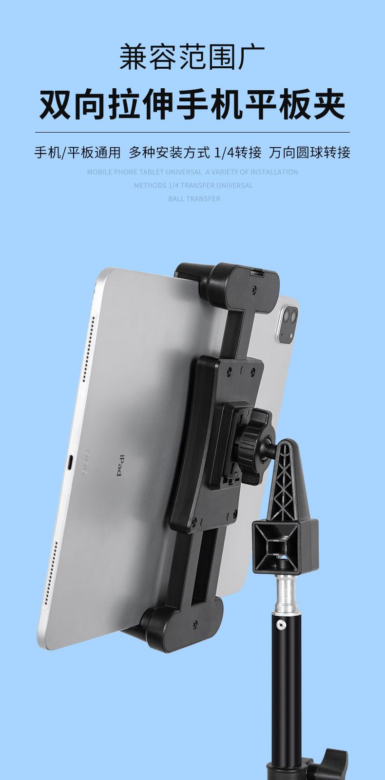 Clip universal para tableta y teléfono móvil, extragrande, bidireccional, con interfaz de 1/4, soporte para transmisión en vivo, instalación con orificio de bola universal