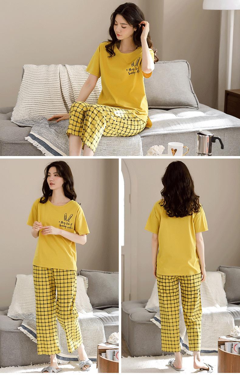 Pijama de algodón puro para mujer, pantalones de verano de manga corta, traje de dos piezas, ropa de verano fina de algodón puro para el hogar, atuendo informal