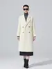 Abrigo de cachemira para mujer, elegante abrigo de lana con cuello de traje, holgado, de longitud media y con cordones de doble cara y ondas de agua