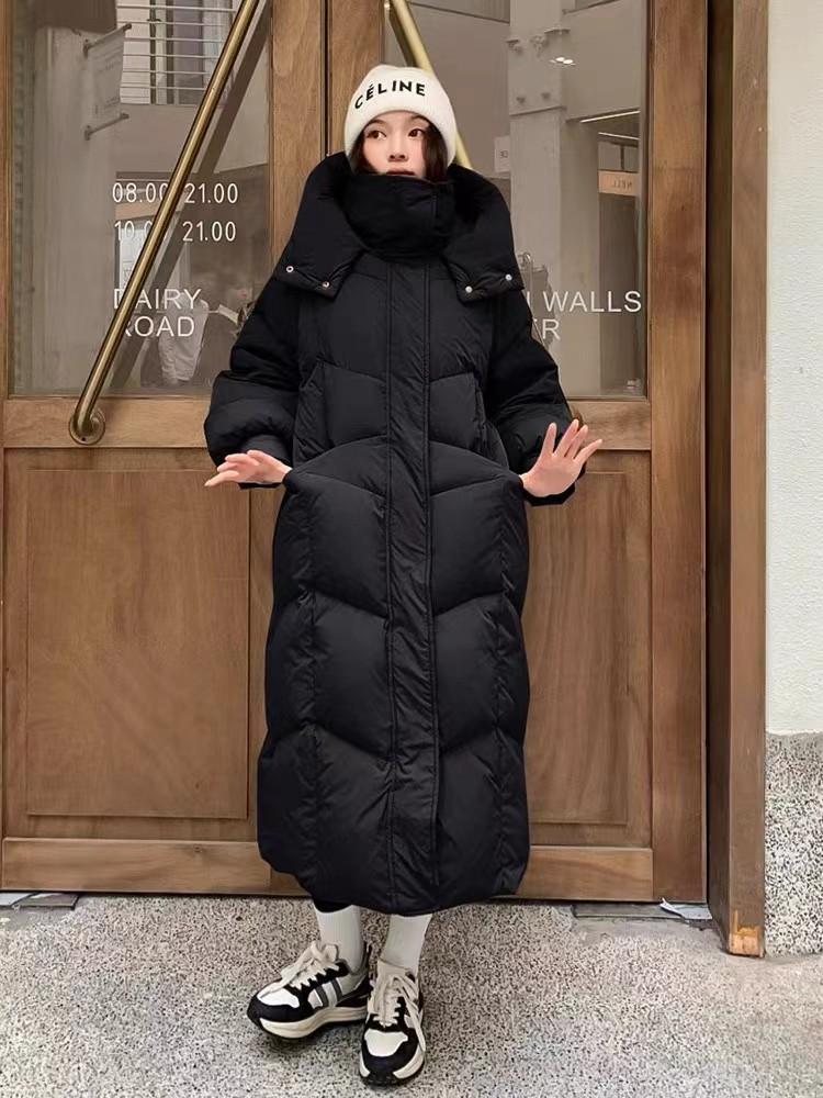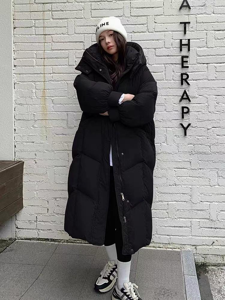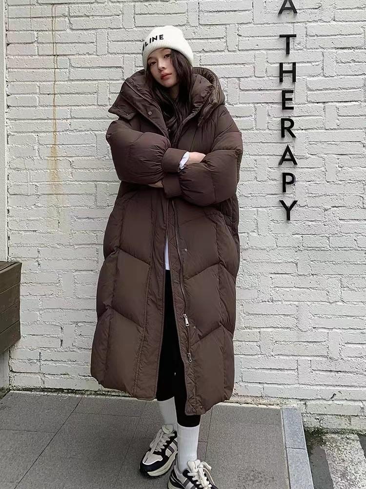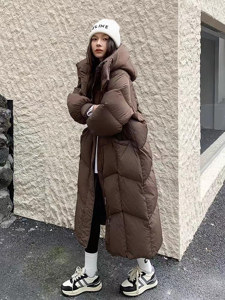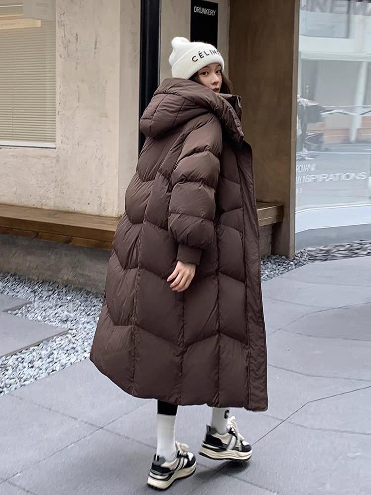 Superventas Invierno 2025 Nuevo 90 Plumón de Pato Blanco Extra Largo Sobre la Rodilla Estilo Coreano Suelto Grueso Chaqueta de Plumón para Mujer