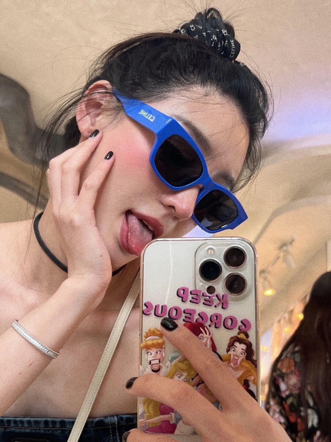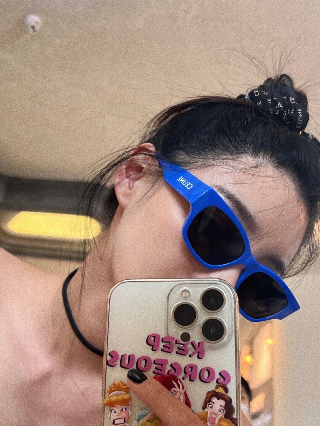 Celin estilo celebridad de Internet europeo y americano montura pequeña gafas de sol azules 40197 comercio exterior transfronterizo gafas de sol de placa a prueba de rayos UV