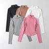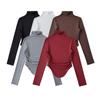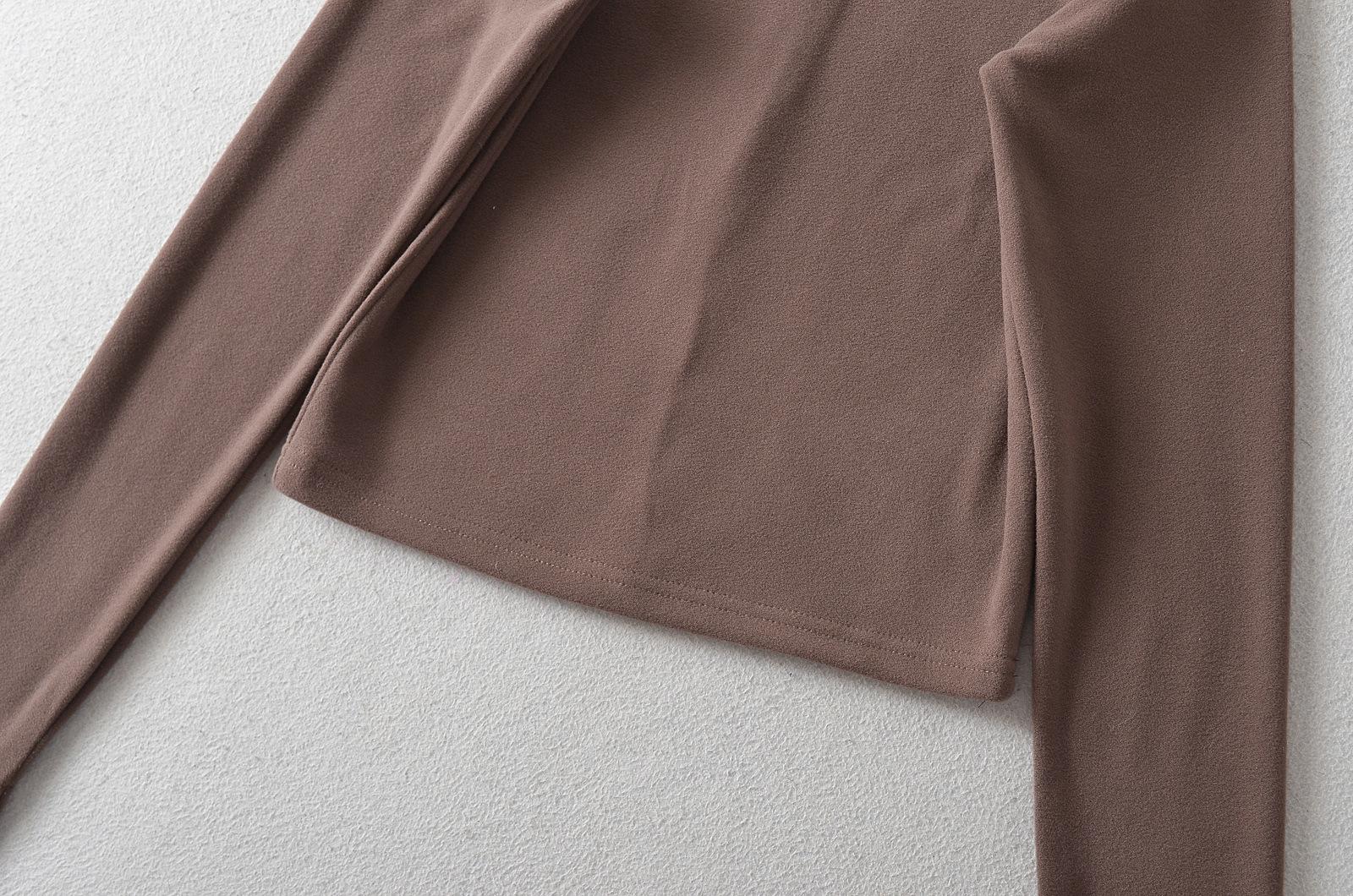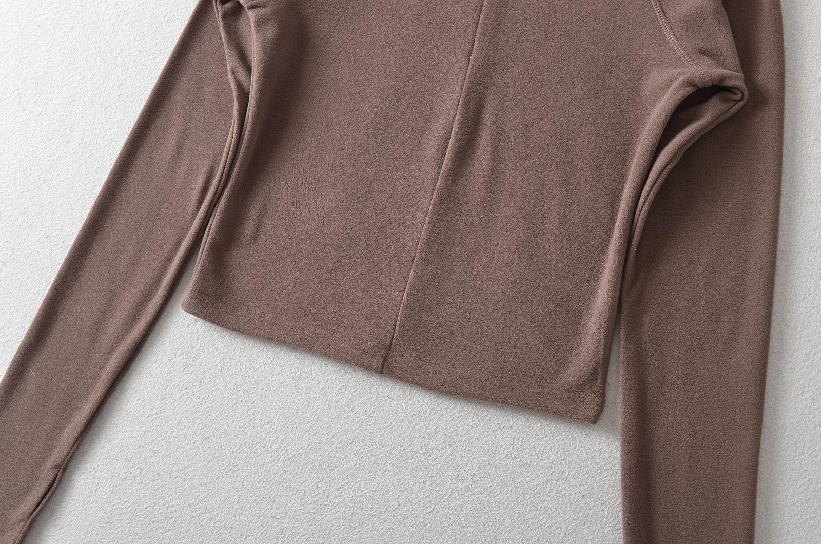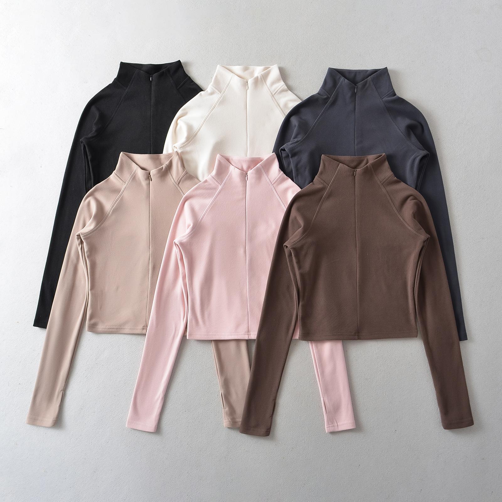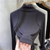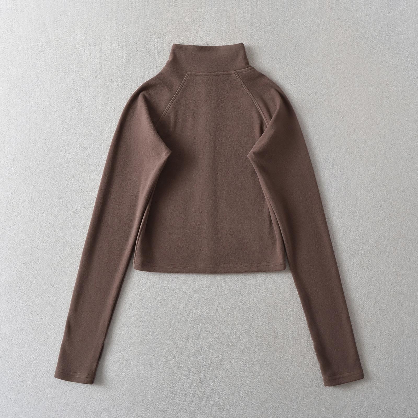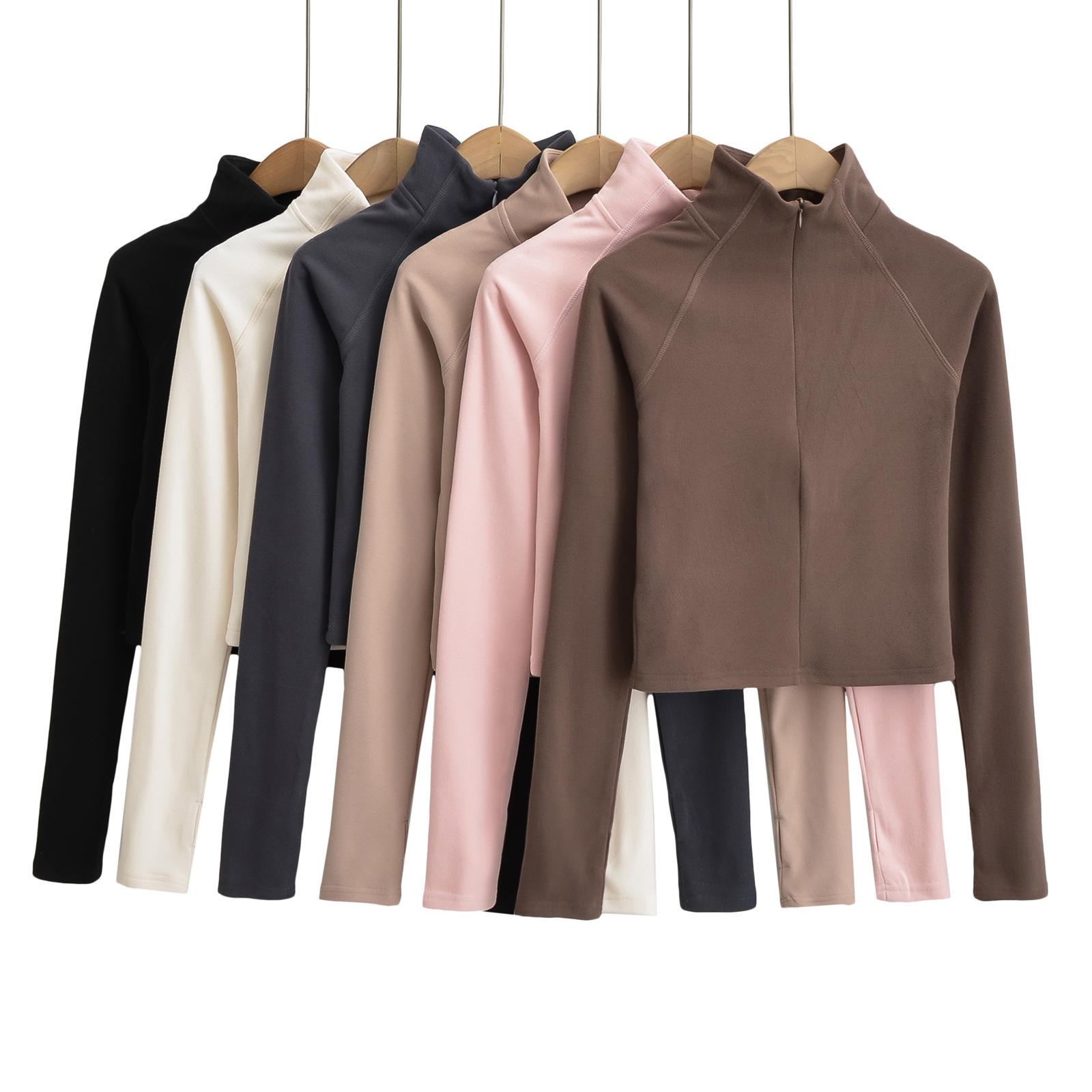 Camiseta cálida de color sólido retro americana de otoño e invierno de 2023, camisa ajustada de terciopelo de doble cara con cuello alto y media manga