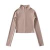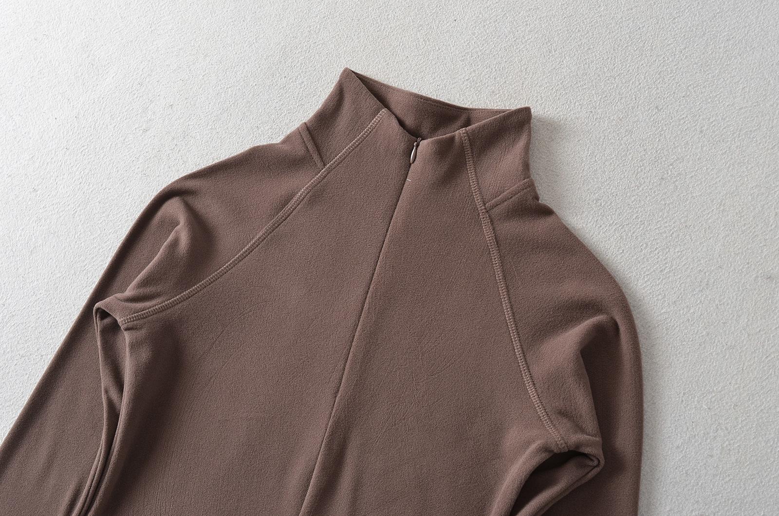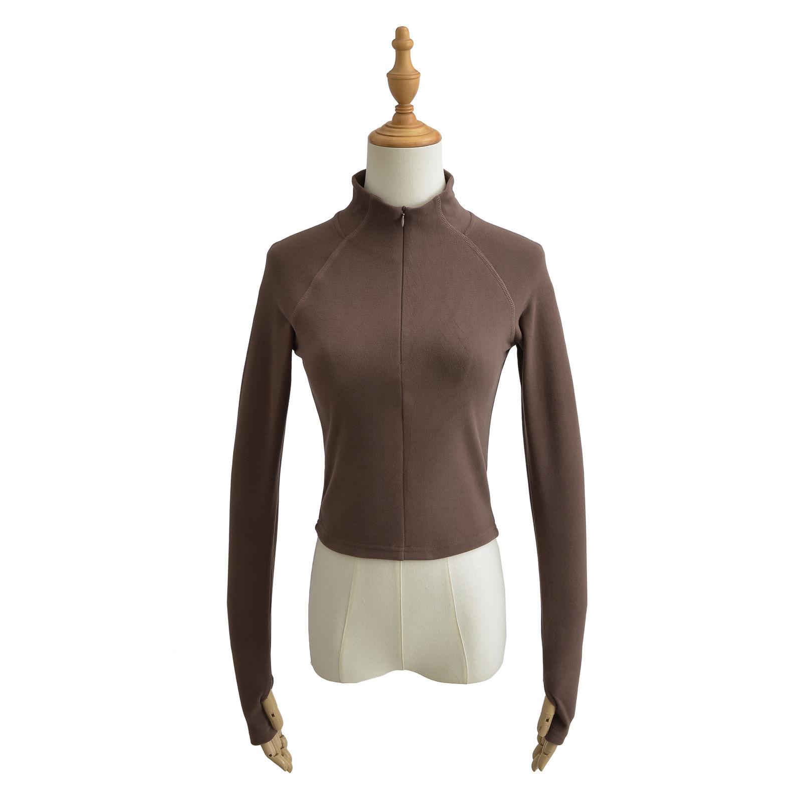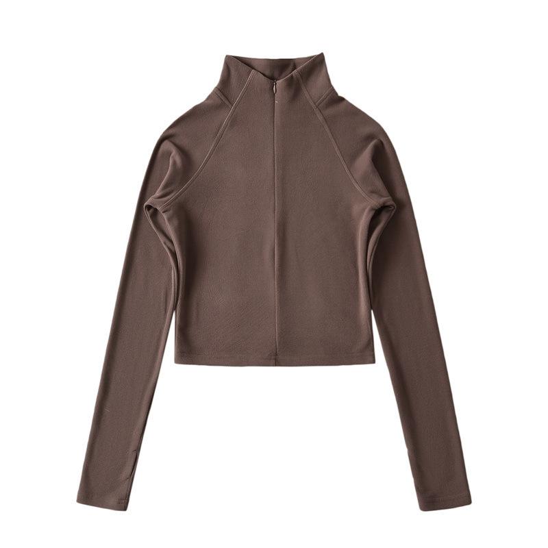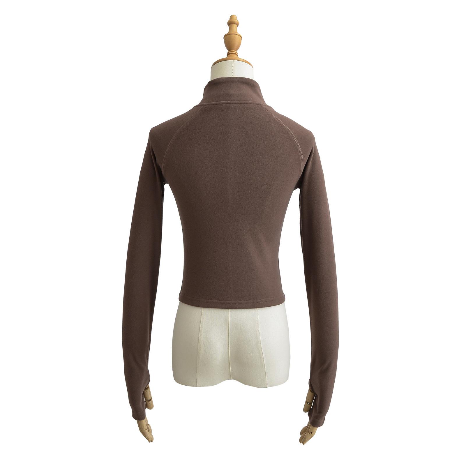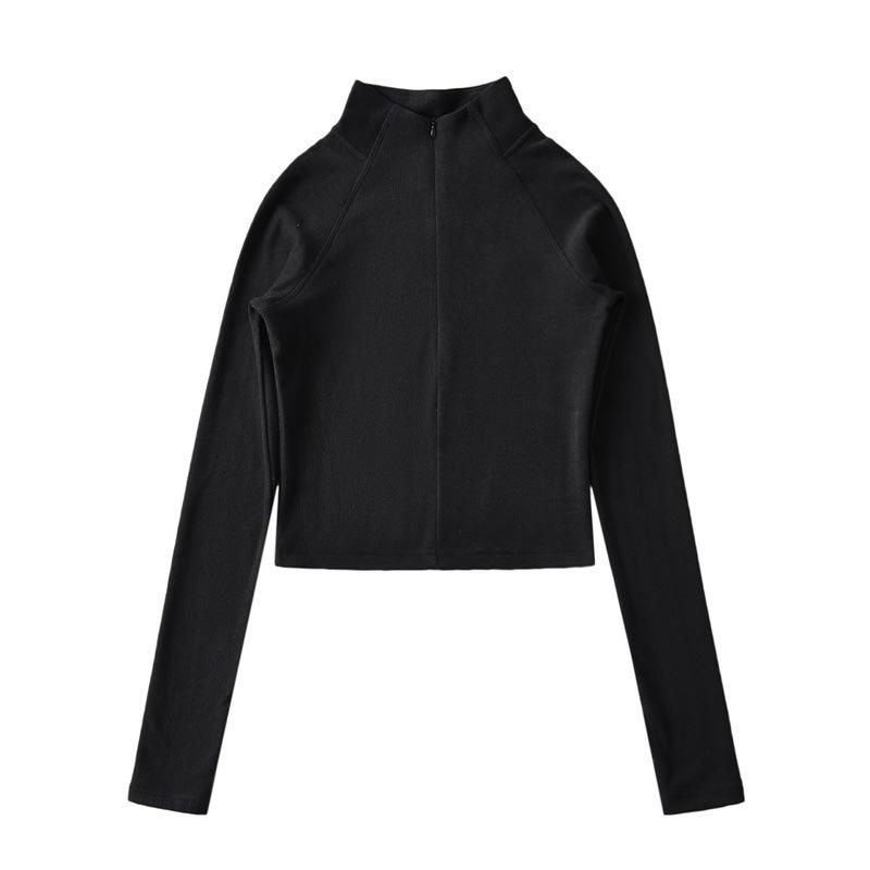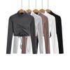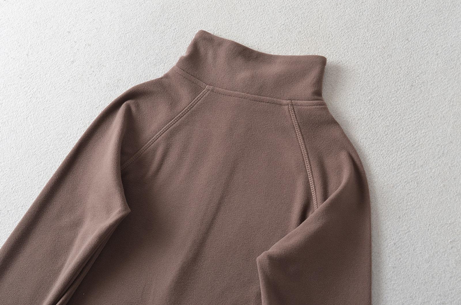 Camiseta cálida de color sólido retro americana de otoño e invierno de 2023, camisa ajustada de terciopelo de doble cara con cuello alto y media manga