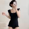 Nuevo traje de baño para mujer, de color liso, que adelgaza el cuerpo y cubre el vientre, sexy, sin espalda, ideal para vacaciones en la playa o aguas termales.