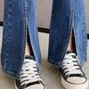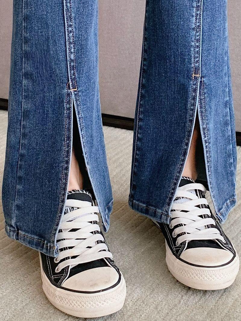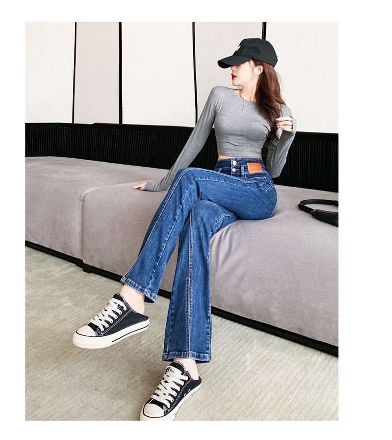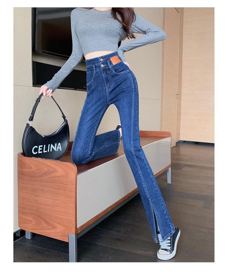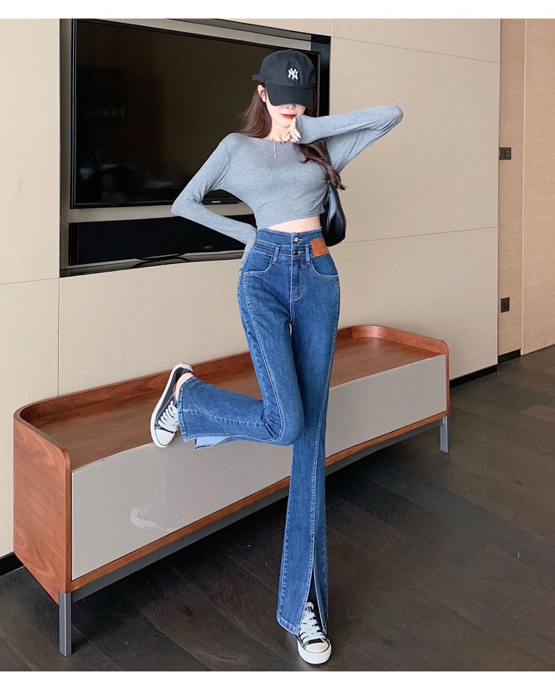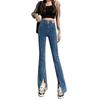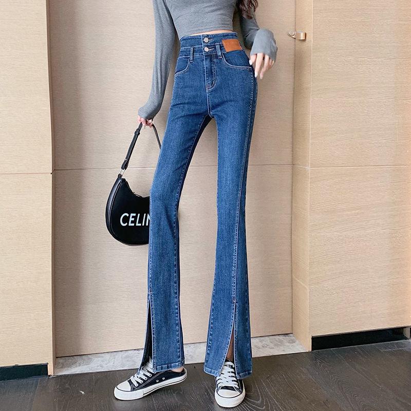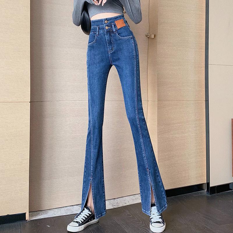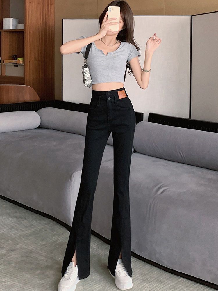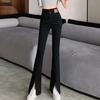 Pantalones de Mujer con Abertura Otoño e Invierno 2024 Nuevos Cintura Alta Slim Negros con Abertura Micro Acampanados de Herradura