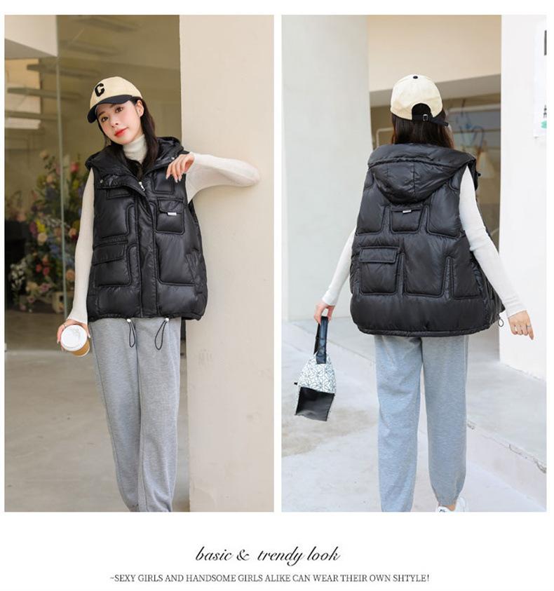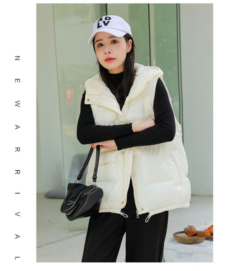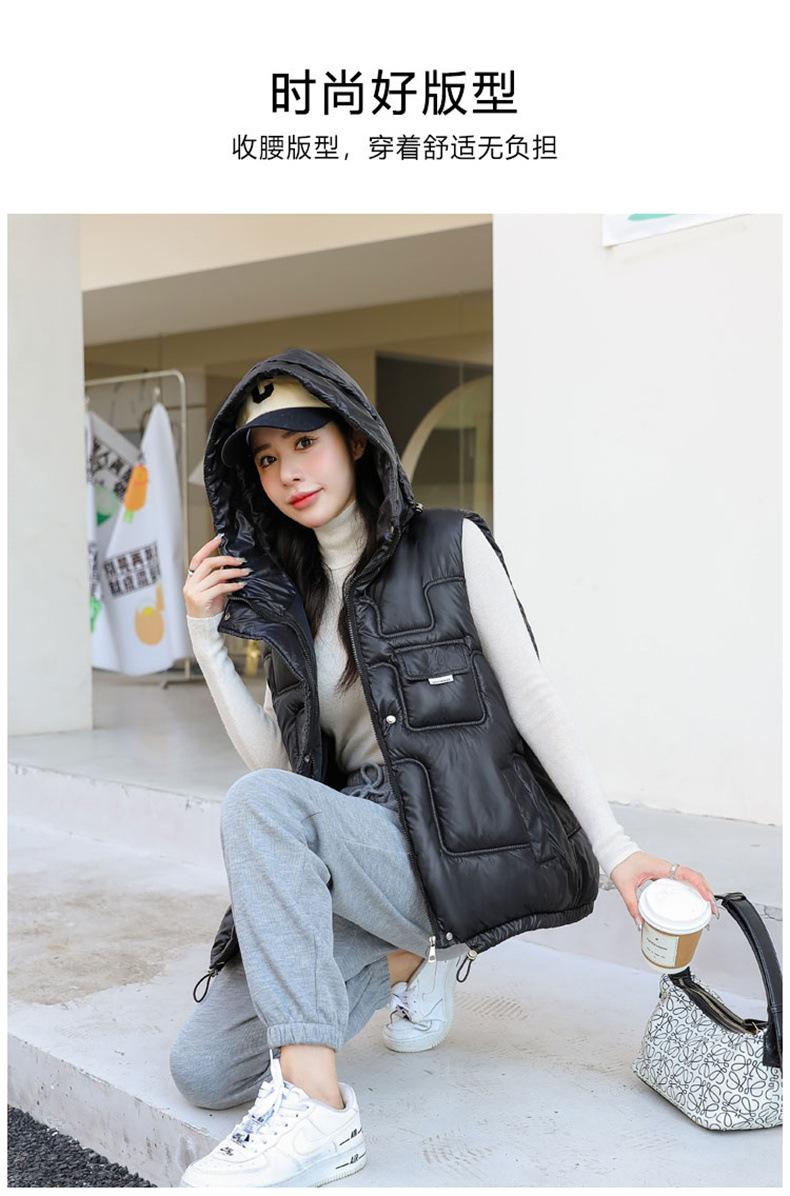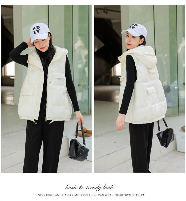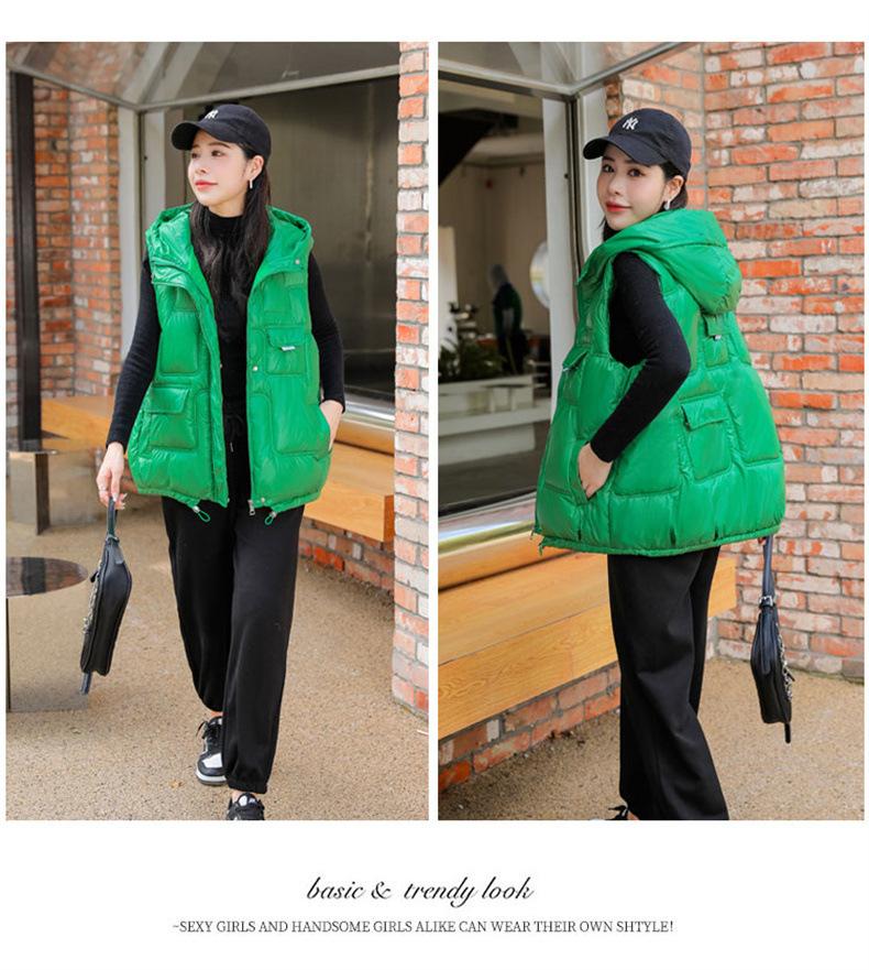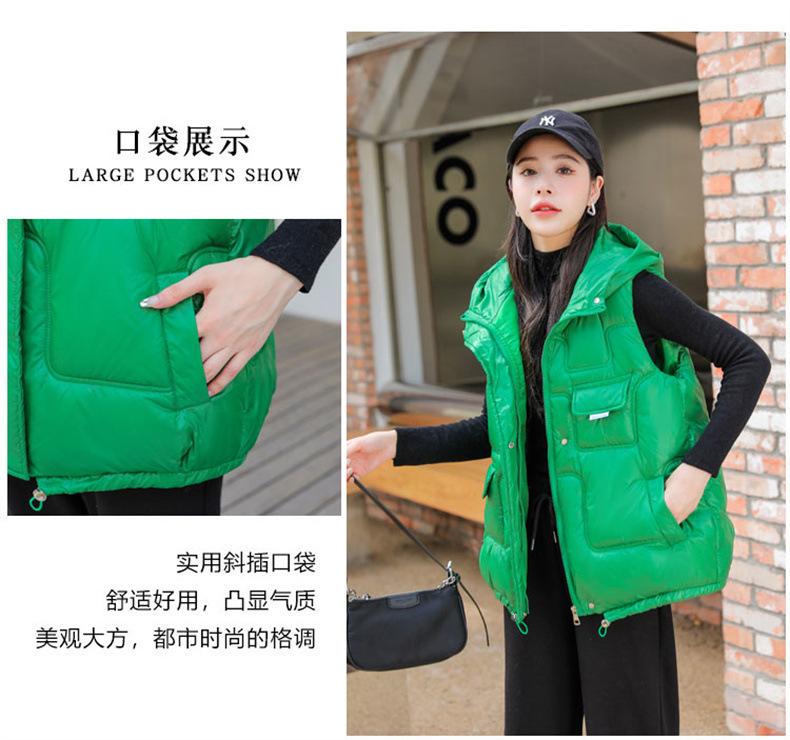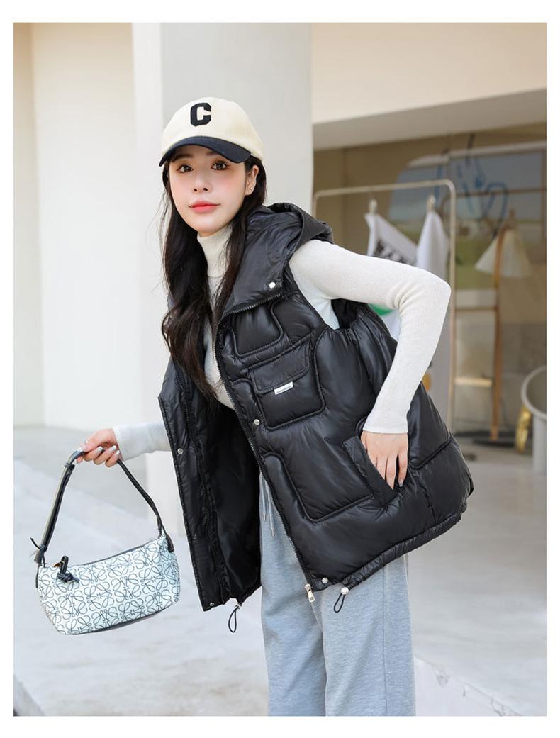 Chaqueta acolchada de algodón sin mangas para mujer, chaleco corto con capucha de otoño e invierno 2023, chaleco de cara brillante, chaleco holgado de estilo coreano, abrigo cálido