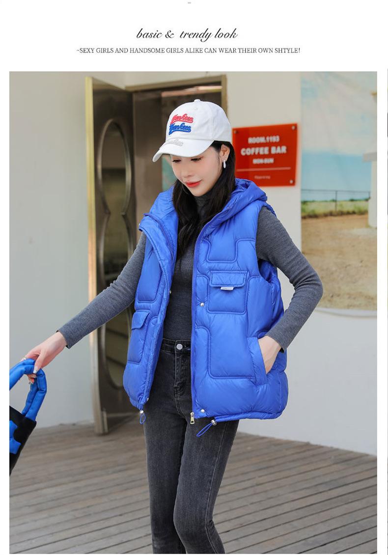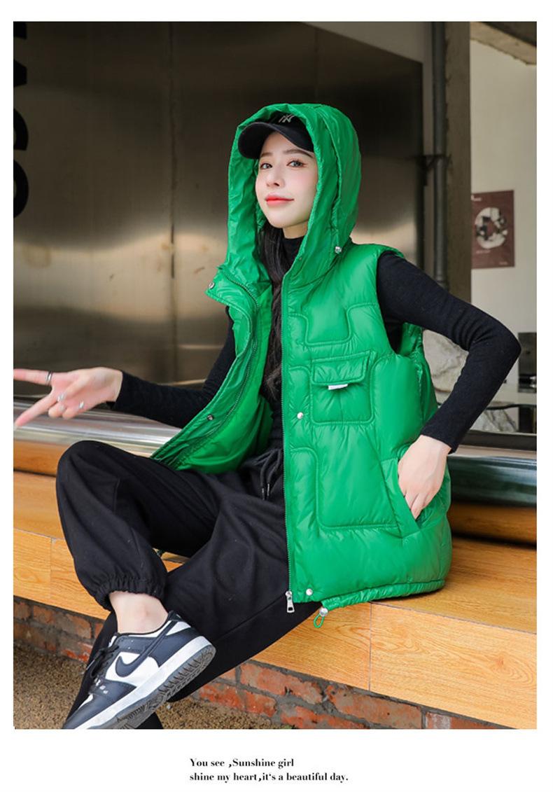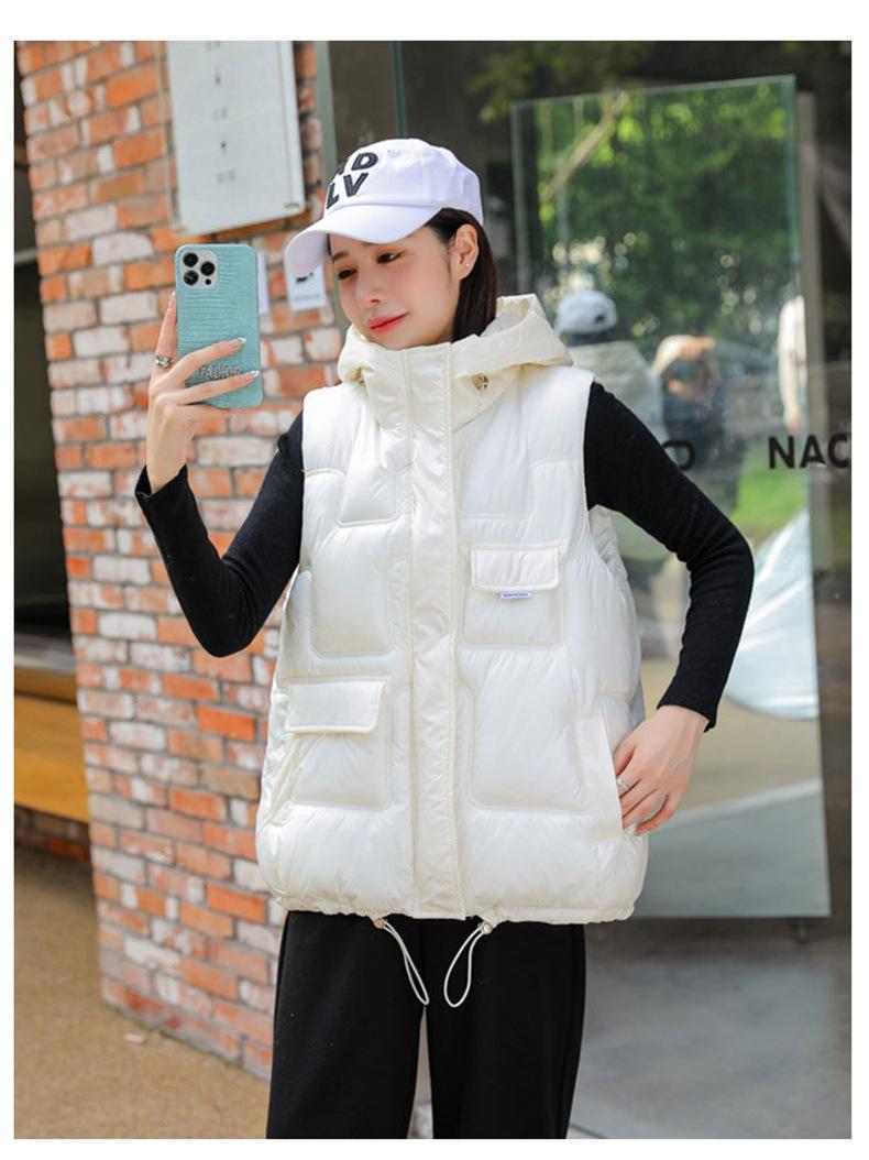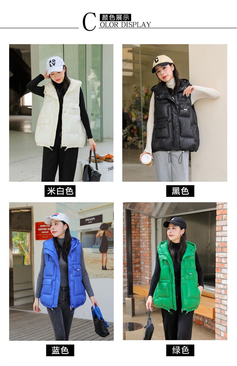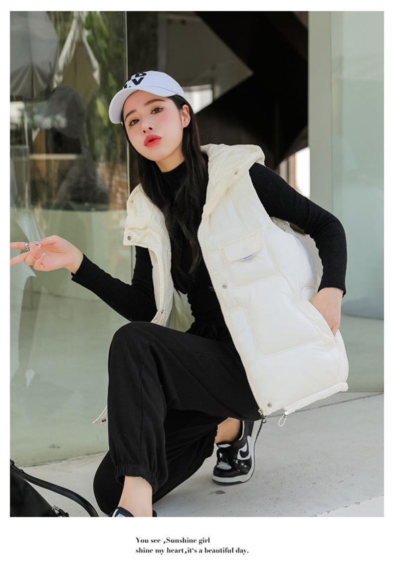 Chaqueta acolchada de algodón sin mangas para mujer, chaleco corto con capucha de otoño e invierno 2023, chaleco de cara brillante, chaleco holgado de estilo coreano, abrigo cálido