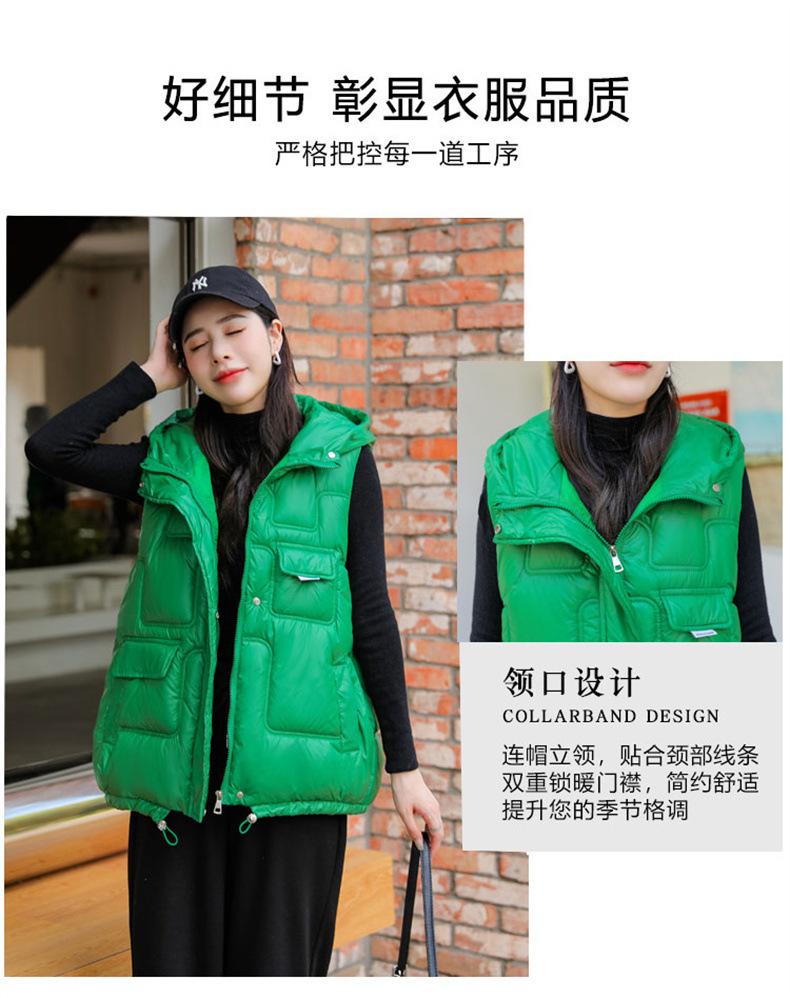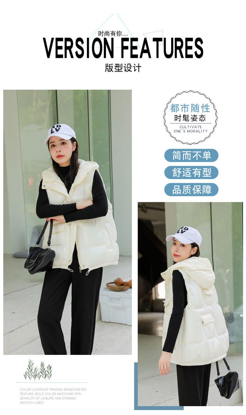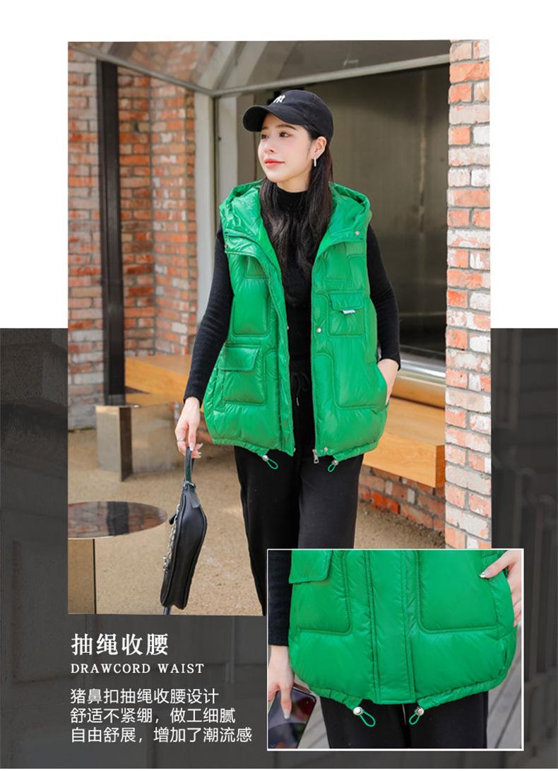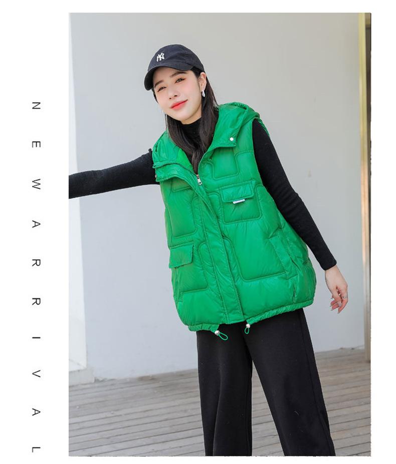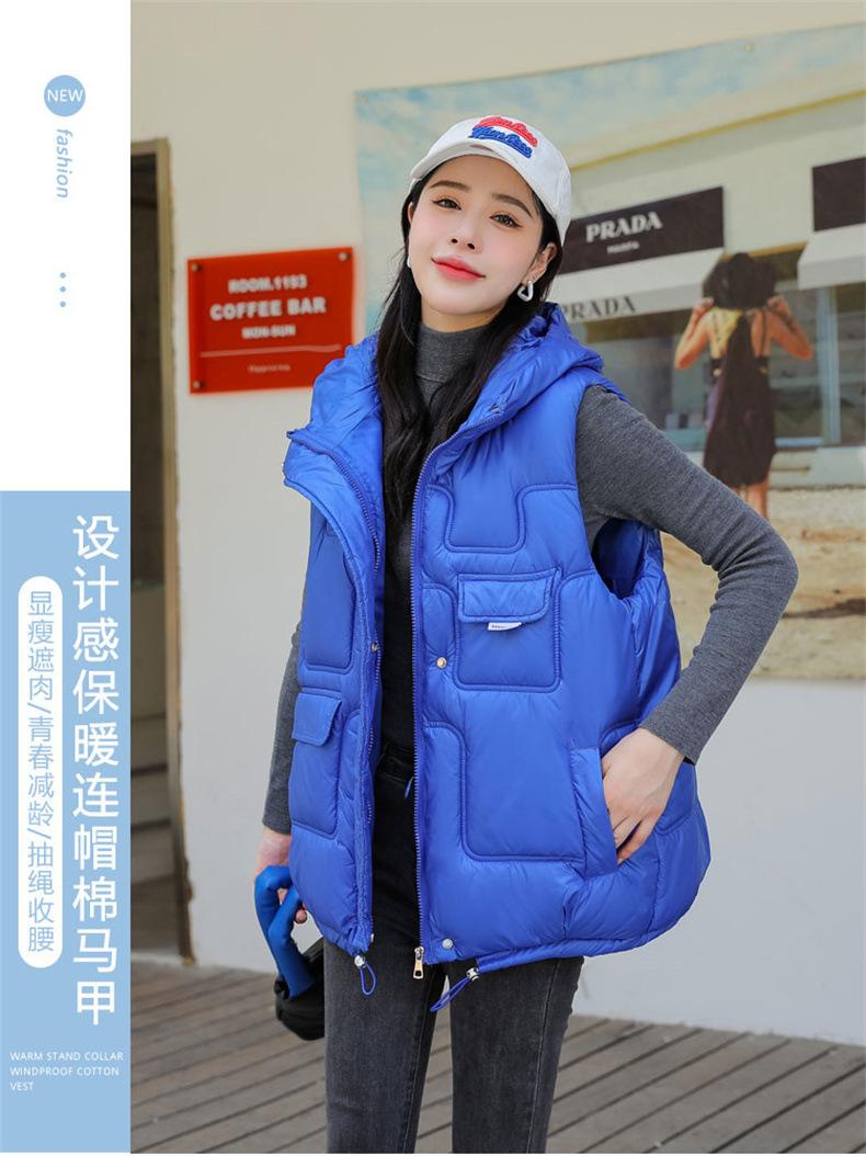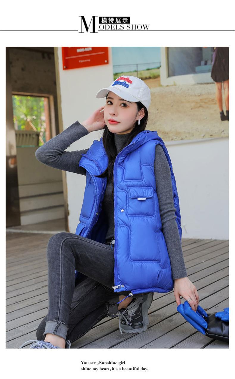 Chaqueta acolchada de algodón sin mangas para mujer, chaleco corto con capucha de otoño e invierno 2023, chaleco de cara brillante, chaleco holgado de estilo coreano, abrigo cálido
