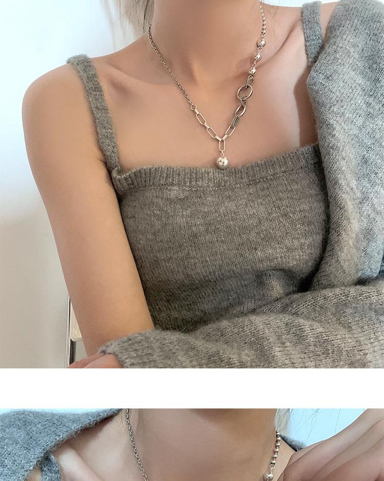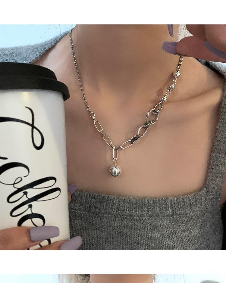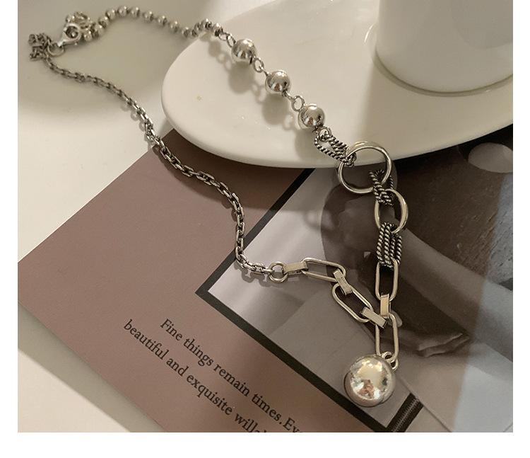 Collar de bolas de plata esterlina s925 estilo europeo y americano para mujer, anillo simple retro, elegante cadena de clavícula, cadena de lana ligera de lujo y de moda para celebridades de Internet.