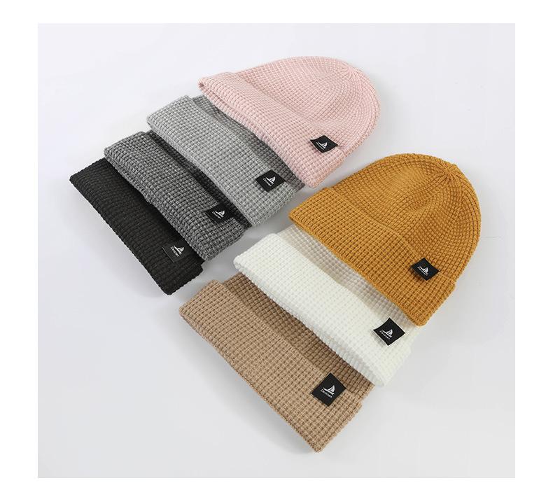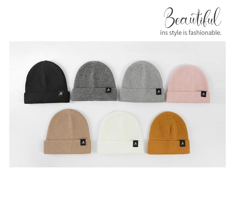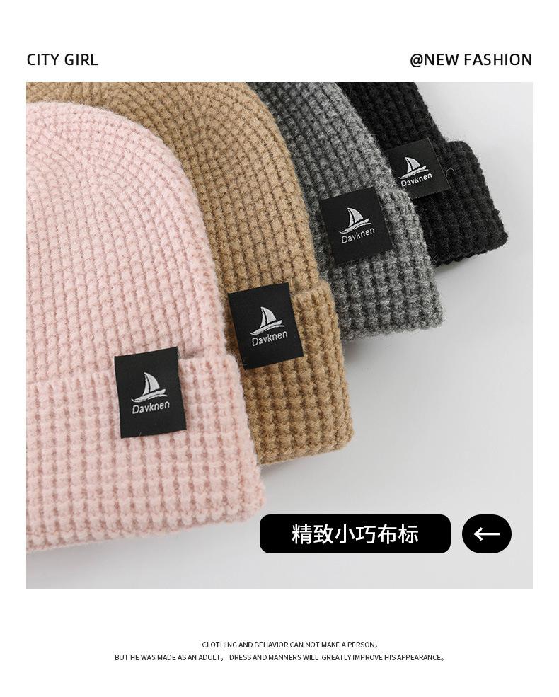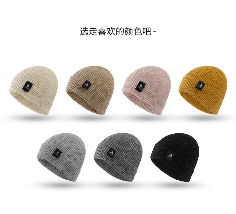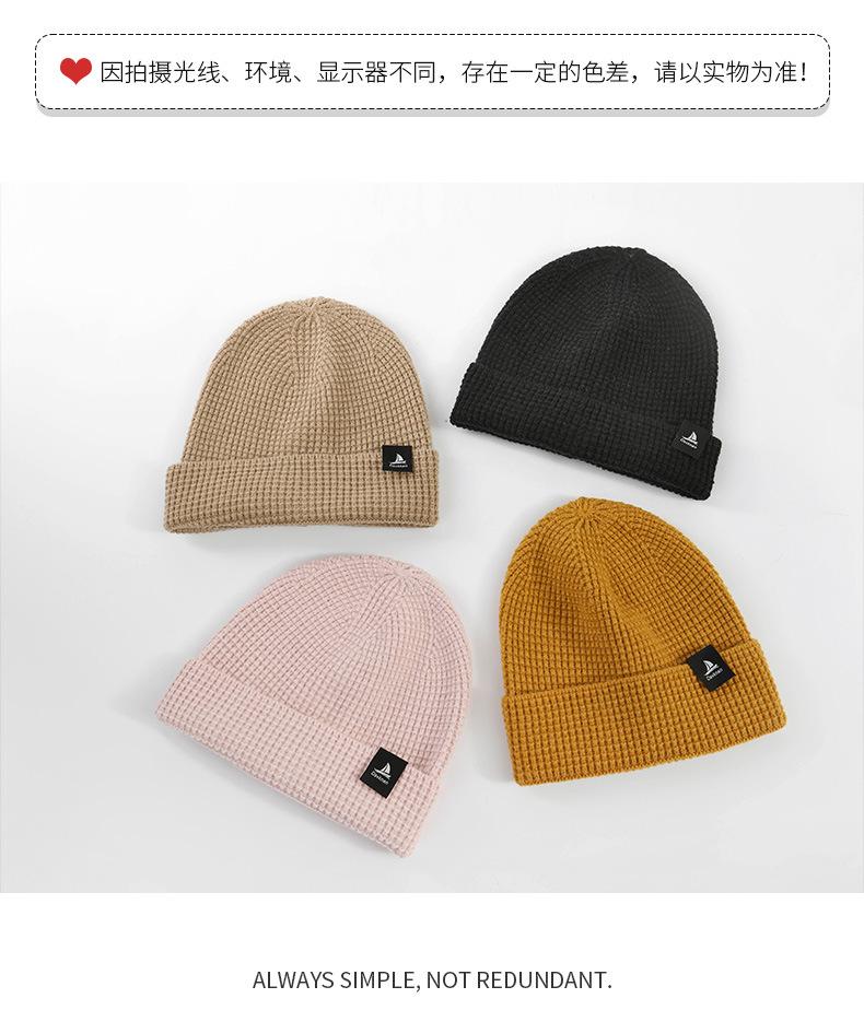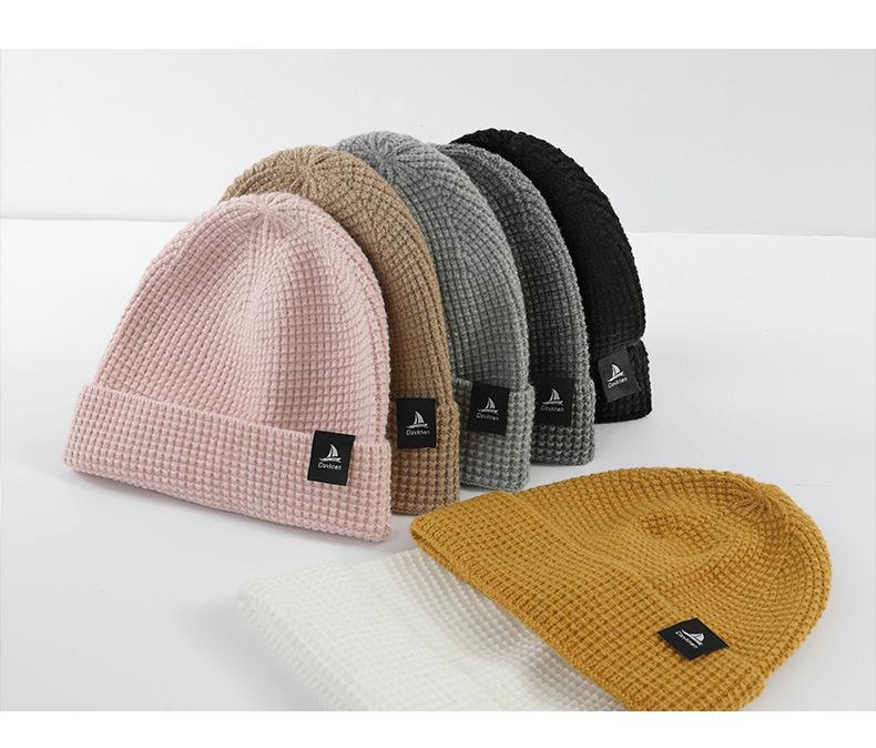 Gorro de punto grueso y cálido con estampado de gofres, de color liso y combinable para otoño e invierno, con cabeza grande y etiqueta pequeña, de lana